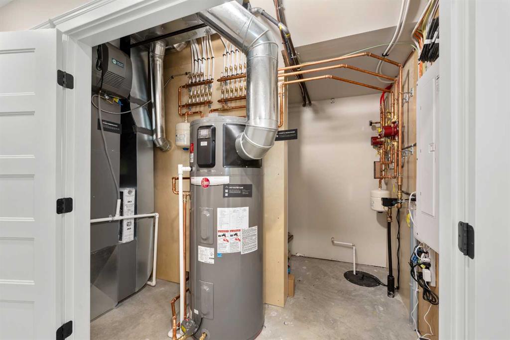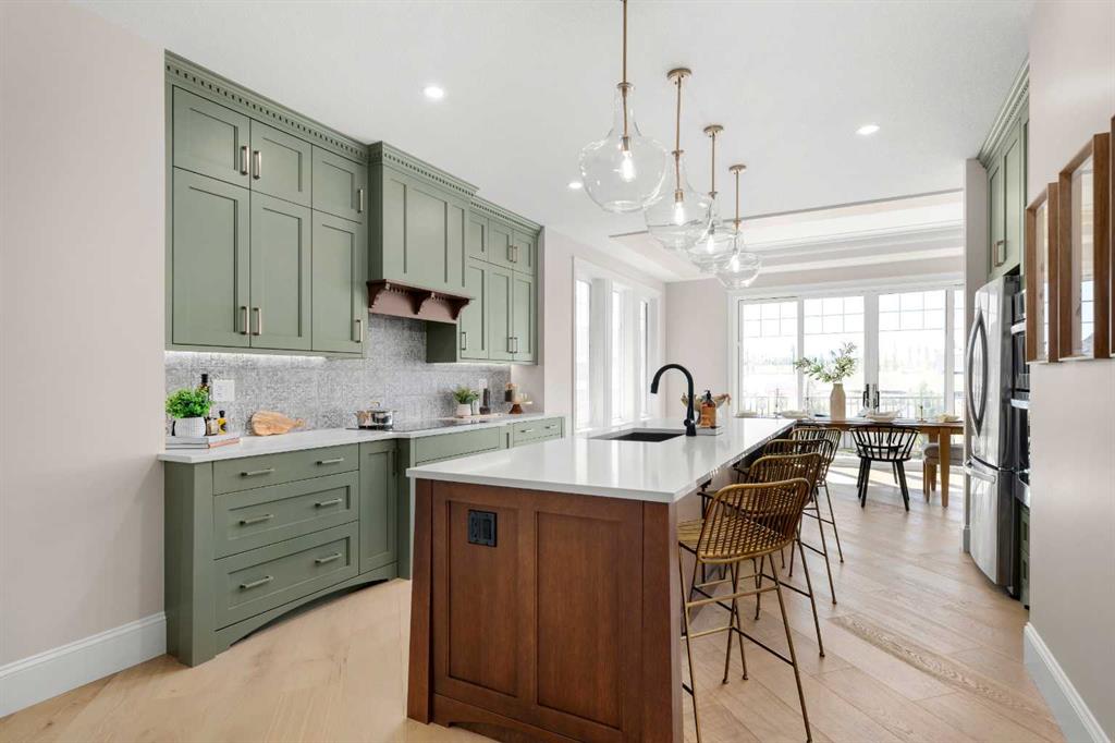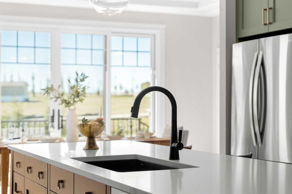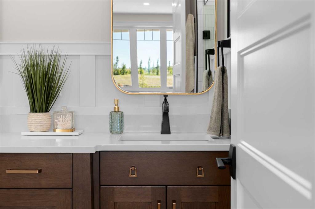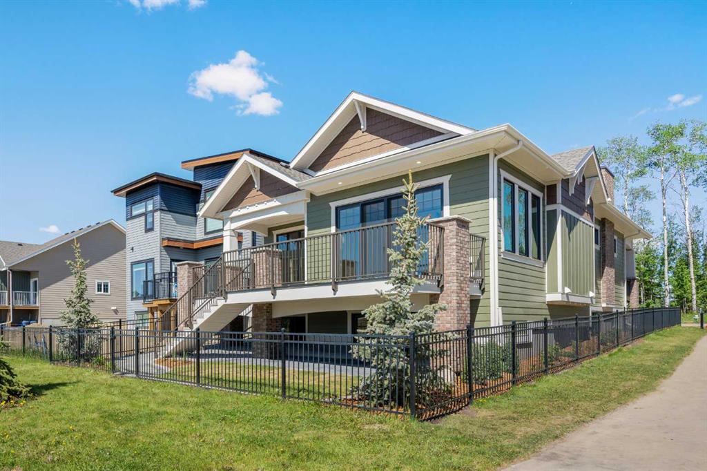 Welcome to The Hawktail, an EnergyStar® certified home designed for comfortable main floor living while offering flexibility for families and guests. Presented in show home condition and fully finished, this property is move-in ready with show home furniture negotiable, creating a seamless turnkey opportunity. Built for superior durability and efficiency, the home features an ICF foundation and graphite-infused ICE Panels above grade, delivering exceptional insulation, structural strength, and energy performance. The result is an airtight, quiet, and consistently comfortable home in every season. The thoughtfully designed main floor includes a spacious primary bedroom with convenient laundry just steps away. The ensuite is built for comfort and accessibility, complete with in-floor heating and a curbless shower. Bright open-concept living areas feature large windows and high ceilings, creating an inviting space ideal for everyday living and entertaining. The fully developed basement offers three additional bedrooms, a full bathroom, a flex room, and mechanical area, providing outstanding versatility for family living, guests, hobbies, or a home office. Additional efficiency upgrades include a heat pump laundry pair, heat pump hot water tank, and electric vehicle readiness to help reduce utility costs. The attached garage is equally impressive, featuring heated epoxy flooring, a built-in mudroom space, and no stairs for easy access into the home. Located on a quiet street with ample parking in the desirable Sixty West community of Sylvan Lake, the home faces north toward a walking trail with no future homes planned across the street. The rear of the property overlooks a community gazebo and water feature, offering a peaceful setting. Residents enjoy more than four kilometers of interconnected walking trails, nearby parks, and convenient amenities.