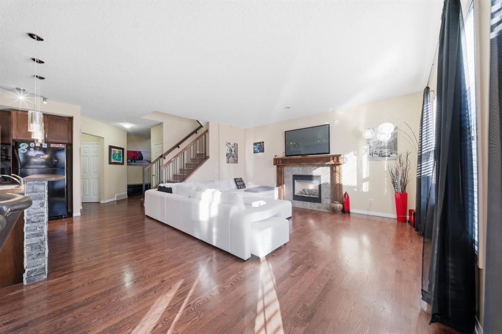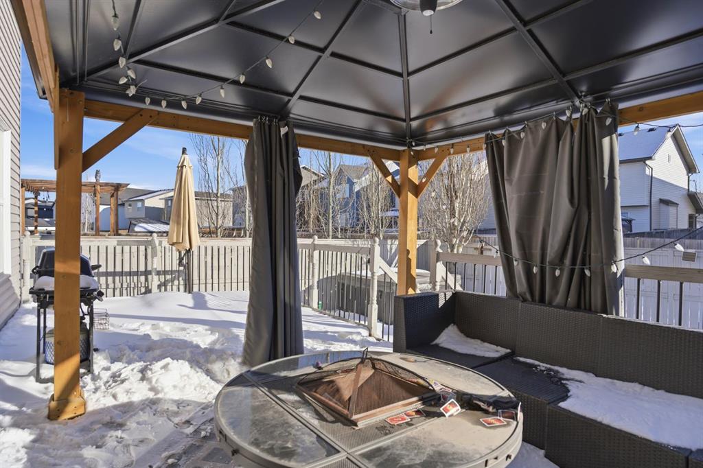 ** OPEN HOUSE SATURDAY FEB 28, 2-4PM & SUNDAY MARCH 1, 12-4PM ** Located in the desirable community of Copperfield, this fully developed two storey home offers over 2,700 sq ft of comfortable developed living space designed for growing families. With 4 bedrooms, 3.5 bathrooms, a double attached garage, and air conditioning, this property delivers space, functionality, and convenience with easy access to both Stoney Trail and Deerfoot Trail. Step inside to a bright and welcoming entry with an open to above design that creates an immediate sense of space. Hardwood flooring runs throughout the main level, leading into a spacious living room centered around a gas fireplace and large windows that bring in plenty of natural light. The kitchen is thoughtfully laid out with full height cabinetry, a statement island with stone accents, modern lighting, and a walk through pantry that connects directly to the mudroom and garage. The dining area overlooks the backyard, and a 2 piece bath completes the main floor. Upstairs, the primary bedroom serves as a private retreat with a walk in closet and a 5 piece ensuite featuring dual sinks, a soaker tub, and separate shower. Two additional bedrooms, a versatile bonus room, a full bathroom, and a dedicated upper level laundry room provide both comfort and practicality. The fully finished basement adds even more flexibility with a large recreation area, an additional flex space ideal for a home gym or media setup, a fourth bedroom, and another full bathroom. All bathrooms have been updated with new ceramic tile, and the roof and siding were replaced in 2022. Outside, enjoy a private backyard complete with a large deck, gazebo, and hot tub, perfect for relaxing or hosting family and friends. Surrounded by parks, ponds, pathways, schools, and everyday amenities, this Copperfield home presents a fantastic opportunity to settle into a well established southeast community.