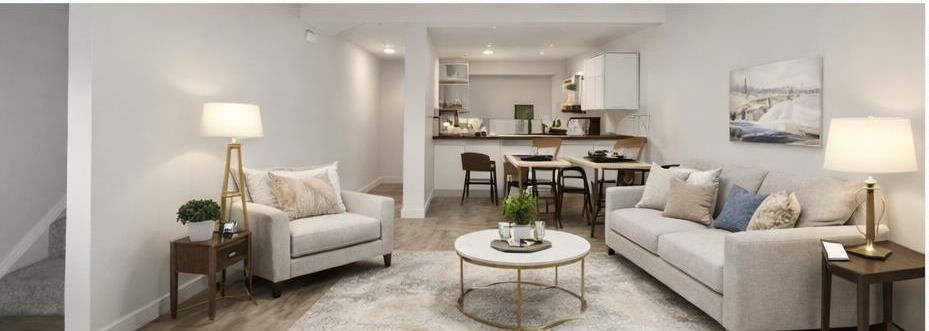 Attention Investor or first-time buyer, opportunity in Temple. Fully finished 3-BEDROOM TOWNHOME backing onto GREENSPACE in the established community of Temple — offering 1,617 SQ FT of DEVELOPED LIVING SPACE. FRESHLY PAINTED in 2026, this home presents a solid opportunity for FIRST-TIME BUYERS, INVESTORS, or buyers willing to add some TLC and build equity in a well-located neighborhood. The main floor features a functional KITCHEN complete with 2025 NEW GRANITE COUNTERTOPS, NEW KITCHEN FLOORING, WHITE CABINETRY, and TILE BACKSPLASH, plus a distinctive H-STYLE PASS-THROUGH opening connecting the kitchen to the dining and living areas, creating an OPEN FEEL while maintaining defined spaces. The spacious living and dining area provides direct access to the PRIVATE, FULLY FENCED BACKYARD featuring a GATE for immediate access to the GREENSPACE for added privacy and open views. Upstairs includes THREE WELL-SIZED BEDROOMS with 2025 NEW CARPETS throughout for comfort and warmth, NEW CLOSET DOORS, and a FULL 4-PIECE BATHROOM featuring 2026 NEW SINK WITH VANITY and NEW TOILET SEATS upstairs and downstairs. The FULLY FINISHED BASEMENT expands the living space with a LARGE FAMILY/RECREATION ROOM, a 2-PIECE BATHROOM, and a generous laundry/utility area with AMPLE STORAGE SPACE. This unit also offers PRIVATE FRONT AND REAR PATIO ENTRANCES and ONE ASSIGNED PARKING STALL with PLUG-IN, conveniently located just outside the home. Situated on a QUIET STREET with CLOSE PROXIMITY to SCHOOLS, PARKS, TRANSIT, AND SHOPPING. An excellent opportunity in a MATURE COMMUNITY with everyday amenities nearby. Some images have been virtually staged to illustrate the property's potential. Actual property is unfurnished and may differ from the images shown.