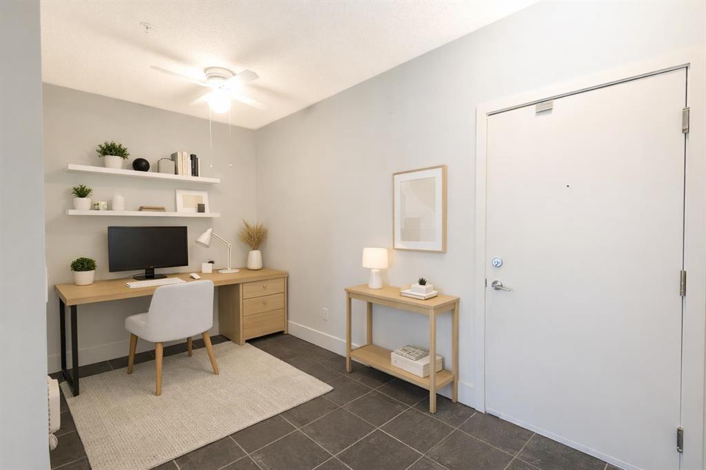 Experience the best of inner-city living in the heart of Mission, one of Calgary’s most vibrant and walkable communities. Just steps from the scenic Elbow River pathways and surrounded by cafés, restaurants, boutiques, and everyday amenities, this incredible location offers the perfect balance of urban energy and natural beauty.Inside, this thoughtfully designed home combines comfort and functionality. The open-concept layout creates an inviting flow between the kitchen, eating nook, and living room—ideal for both everyday living and entertaining. The kitchen features stainless steel appliances, ample cabinetry, and a raised breakfast bar that’s perfect for casual dining or gathering with friends. The adjoining eating nook seamlessly connects the space, allowing for effortless conversation while hosting. The living room is warm and welcoming, anchored by a cozy fireplace with a tile surround. Large windows invite in natural light, and direct access to the back deck extends your living space outdoors—ideal for enjoying a quiet morning coffee or relaxing in the evening.The spacious primary bedroom offers comfort and privacy, complete with convenient access to a well-appointed 3-piece bathroom featuring a stand-alone shower. Whether starting your day or winding down, this space feels both practical and refined. A versatile den sits just off the front entrance, making it the perfect work-from-home office, creative studio, or play space. Additional highlights include in-unit laundry for everyday convenience, a titled parking stall, and a dedicated storage unit, providing the extra space you need for seasonal items and gear. With its unbeatable Mission location near the river pathways and every amenity imaginable, paired with a functional and stylish interior, this home offers an exceptional opportunity to enjoy connected, carefree urban living.