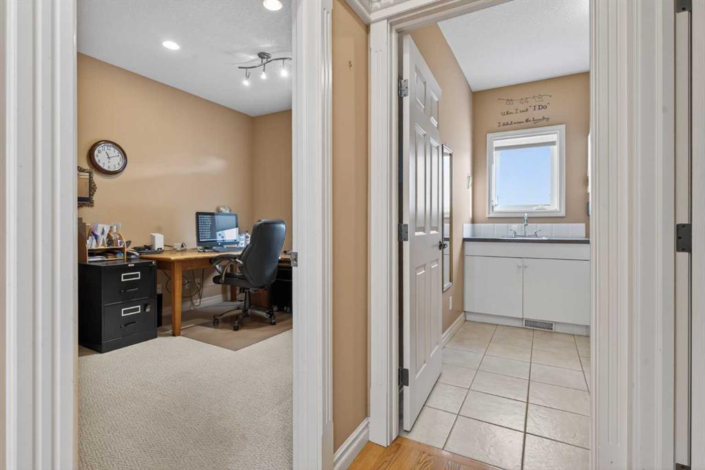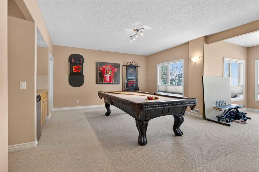 This is your chance to make your home in this beautifully appointed home in the highly-desirable community of Hamptons, backing onto the golf course & surrounded by wonderful views as far as the eye can see! Built by Chancellor Homes, this outstanding executive two storey walkout enjoys a total of 5 bedrooms + den, hardwood & tile floors, fully-loaded chef’s kitchen with alderwood cabinets, 2 decks & private backyard with hot tub. Complemented by 9ft ceilings & drenched in natural light, you’ll love the stylish design of the main floor with its formal living & dining rooms with South-facing windows & elegant rounded column, expansive family room with window seat & gas fireplace accented by built-in bookcases, spacious dining nook with access onto the covered balcony & fantastic gourmet kitchen with walk-in pantry & granite countertops, ceramic tile backsplash & upgraded stainless steel appliances including Bosch dishwasher & Samsung stove/convection oven. Total of 4 bedrooms & 2 full bathrooms on the 2nd floor…highlighted by the private owners’ retreat with sitting area with views of the golf course, big walk-in closet & jetted tub ensuite with separate shower, tile floors & double vanities. The family bathroom – with 2 sinks, is shared by the other 3 bedrooms…2 which also feature window seats. The walkout level is finished with a 5th bedroom with walk-in closet, another full bathroom & fabulous games/rec room with granite-topped wet bar & pool table (with ping pong tabletop). Main floor also has a dedicated home office which would also make a great guest bedroom, & laundry room with new (2025) Samsung washer & dryer. Additional extras in your new home include built-in ceiling speakers, 2 hot water tanks & 2 humidifiers, water softener, natural gas line for your BBQ on the upper balcony, large skylight over the 2nd floor landing, hot tub on the covered patio, loads of closet & storage space, concrete tile roof & in 2024 the walkout level furnace was replaced & the internal components of the 2nd furnace were also replaced. With over 3800sqft of living space spread over 3 levels, this truly fine home will be just perfect for your growing family, here in this prime location only minutes to the Hamptons School & golf course clubhouse, all neighbourhood amenities (playing fields, tennis courts, playgrounds), area shopping & quick access to transit (bus stops & LRT), highly-rated schools, University of Calgary, major retail centers, hospitals & downtown.