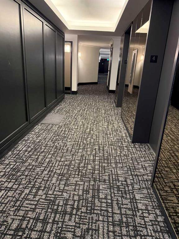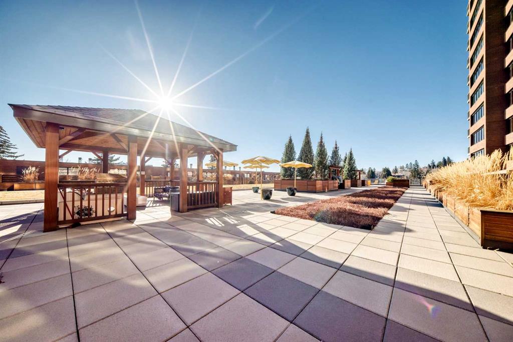 Spacious 2 bedroom, 1.5 bath unit in Mission's prestigious Roxboro House! This well maintained suite has a large, private feeling balcony which spans the width of the entire apartment. It has a view of the Calgary Tower plus an open, bright layout. Kitchen includes a desk/eating bar, a newer stainless steel oven, and recently painted cabinets. Ample closet space in the generous primary bedroom. Use the second bedroom as a private office/den or guest quarters. Features in-suite storage, plus an assigned storage locker (#63 in the basement) so you'll have room for everything. Comes with a parking stall in the heated parkade (#80 - which is on the same level as the unit for convenient access), plus all the building's luxury facilities: huge, beautifully landscaped 4th floor sundeck, pool, hot tub, sauna, party room, gym, games room, large hobby and woodshop room, main floor 2 bedroom guest suite with kitchen available to be booked for visiting friends and family (rate ranges from $100 to $150/night), visitor parking, 24-hour security staff, and bike storage! Utilities, including electricity, are part of the condo fee (except cable/phone). Roxboro House is currently undergoing hallway modernization, bringing an elegant and stylish new look to the building. Second floor hallway reno is underway so check out another finished hallway to see how great it'll look when finished. This locale is perfect for walking or biking as you're conveniently near the Elbow River pathway, groceries, and amenities in the heart of Mission and 4th Street.
