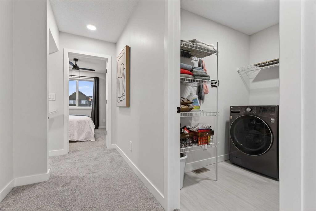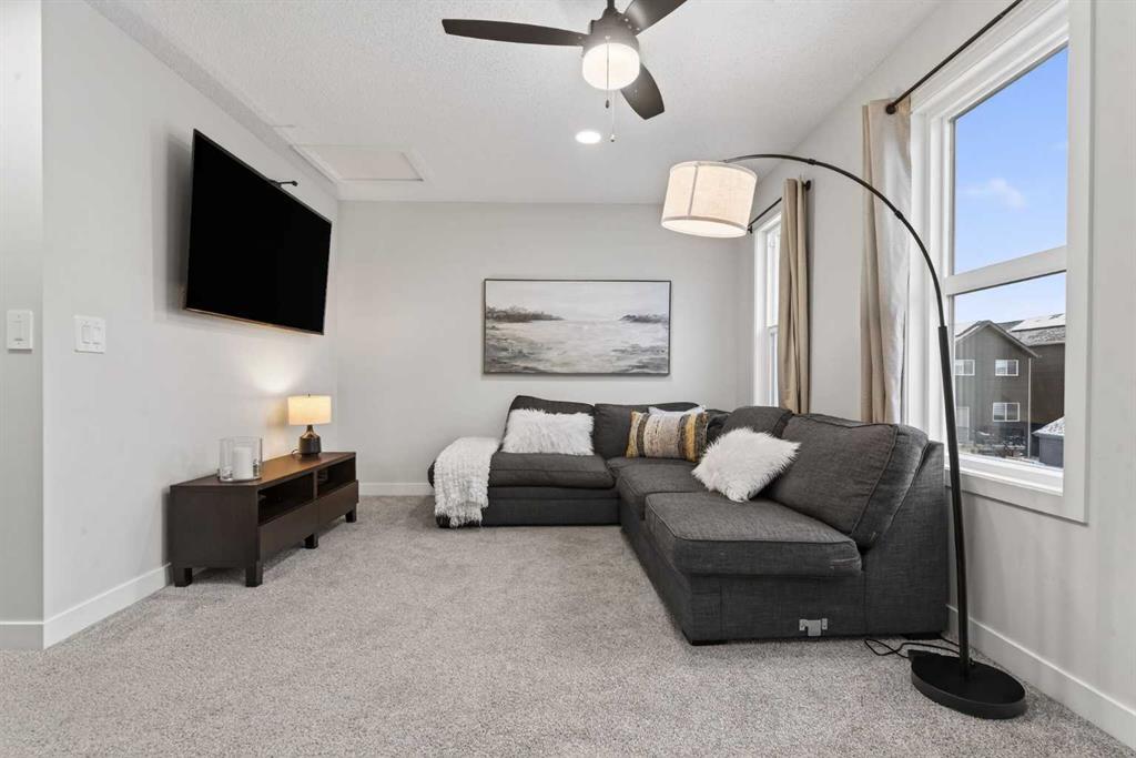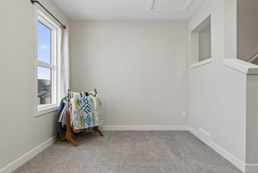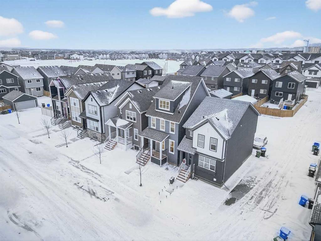 Welcome to Rangeview — Calgary’s first Garden-to-Table community where shared gardens, greenhouses and thoughtfully designed green spaces create a lifestyle unlike anywhere else — and here’s your opportunity to own a home that’s truly better than new. This stunning 3-bedroom, 2.5-bathroom home offers 1,666 sq ft of bright, modern living space on a quiet, family-friendly street and features a floorplan that is no longer being built, giving you a rare chance to own a layout that can’t be replicated in current builder inventory. Why wait 8–12 months for construction — and then pay extra for fencing, landscaping, appliances and window coverings — when you can move into a beautifully finished, barely lived-in home today? The sun-filled main floor showcases an open-concept great room, inviting dining area and sleek kitchen designed for entertaining, while upstairs offers three generous bedrooms including a private primary retreat with ensuite and ample counter space, plus convenient upper-floor laundry. Step up to the third-storey balcony to enjoy peek-a-boo mountain views — an elevated bonus that makes this home stand out even more. With a fully fenced yard already complete, builder warranties still in place, basement space ready for your future vision, and a location away from heavy construction traffic and noise, this home delivers immediate enjoyment without the delays, mud or surprise upgrade costs of new construction. Move in now, skip the timeline, and secure a completed, warranty-protected home in one of Calgary’s most exciting growing communities.
