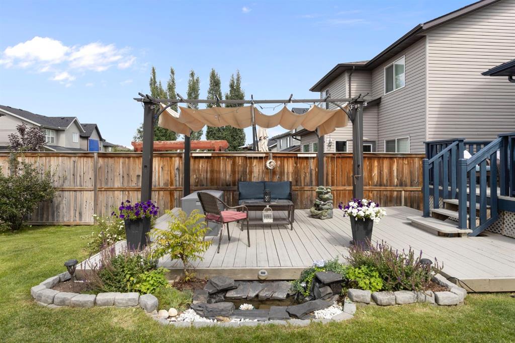 Welcome to 99 Sage Valley Park NW - a beautifully appointed residence where comfort, style, and community come together in one of Calgary’s most desirable neighbourhoods. With over 2,250 sq. ft. of thoughtfully developed living space, this family home offers an inviting first impression. Gleaming hardwood floors lead you through the open-concept main level, seamlessly connecting the living, dining, and kitchen areas. The bright kitchen features a spacious pantry, a breakfast bar accented with custom wainscotting, and an expansive dining space perfect for gathering with family and friends. The living room is warm and welcoming, centred around a cozy gas fireplace. A convenient powder room and main-floor laundry complete this level. Step outside and experience one of the home’s standout features: a generous 4,477 sq. ft. landscaped backyard. Enjoy summer evenings on the two-tiered deck complete with a BBQ gas line, relax under the pergola, and admire the established perennials, beautiful all season long with no annual planting required. Added trees provide both charm and privacy. Back inside, ascend the elegant staircase to your serene primary retreat, showcasing vaulted ceilings, large windows, a walk-in closet, and a luxurious 5-piece ensuite. Down the hall are two well-sized bedrooms and a 4-piece bathroom. A bright, open flex space at the top of the landing offers the perfect setting for a home office, craft area, or reading nook. The fully developed lower level features a fourth bedroom and an inviting entertainment space complete with a 65” TV and Bose sound system, also wired to the garage, ideal for movie nights or hosting guests at the built-in bar. A dedicated storage room and a rough-in for a future bathroom offer added convenience and value. Sage Valley is a community celebrated for its picturesque pathways, abundant green spaces, and family-friendly parks, perfect for evening walks, morning runs, or weekend adventures. You’ll appreciate being just minutes from Sage Hill Crossing and Creekside Shopping Centre, where cafés, restaurants, groceries, and everyday amenities are all within easy reach. Top-rated schools, nearby fitness facilities, and quick access to major routes ensure a lifestyle of ease and convenience. At 99 Sage Valley Park NW, you’re not just purchasing a home, you’re embracing a vibrant community you’ll be proud to be part of for years to come.
