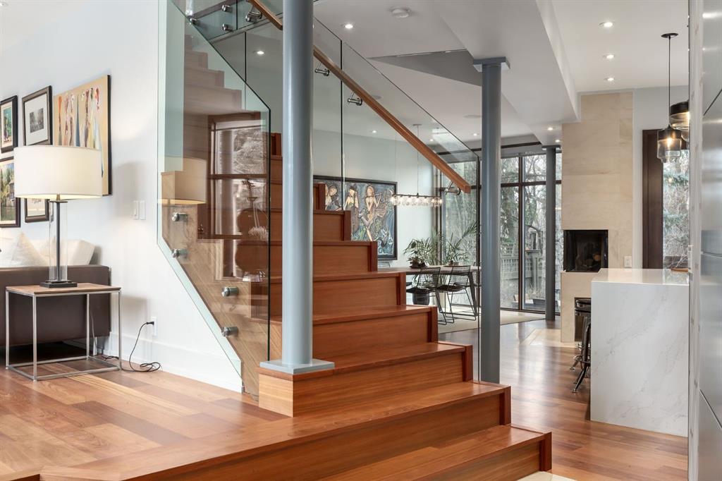 *OH Sat March 14th 1-3pm* A rare offering nestled along Rideau Road - combining history, nature, and modern luxury— a prized river & park adjacent location. Opportunities like this in Rideau Park are few and far between, making this home a truly one-of-a-kind find. Inside, Brazilian cherry hardwood floors set the tone for timeless elegance. The main floor is designed for both connection and privacy, with a central glass staircase anchoring the layout. Enjoy the front library/den, an elegant living room, or dining with a view of the trees. The Porcelanosa kitchen is a showpiece—flooded with natural light and overlooking the park and river. Outfitted with a full Miele appliance package, induction cooktop with hidden hood, beverage center, walk-in pantry, and Porcelanosa finishes, it’s both functional and striking. A floor-to-ceiling window and wood-burning fireplace create a warm dining atmosphere. Upstairs, the southwest-facing primary retreat offers vaulted ceilings, a private balcony with river views, spa-like ensuite with natural stone, walnut cabinetry, heated floors, soaker tub, walk-in shower, and custom wardrobe system. Two additional bedrooms complete this level—one with cheater ensuite and steam shower, the other with rare river views. The finished basement includes a gym, rec room, 4th bedroom, full bath, laundry with sink, storage, and access to the front attached garage. The backyard flows seamlessly into one of Calgary’s most scenic parks, with the Elbow River Pathway just outside your door. Whether for morning jogs or evening strolls, this location is unmatched for lifestyle and connection to nature. Rooted in legacy, Rideau Park is one of Calgary’s most prestigious communities, once home to CHCT-TV’s first studios. Rarely do homes of this caliber on Rideau Road come to market—this is more than a home, it’s a once-in-a-generation opportunity to own a piece of Calgary’s history in an irreplaceable location.