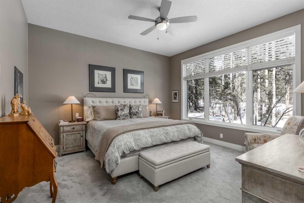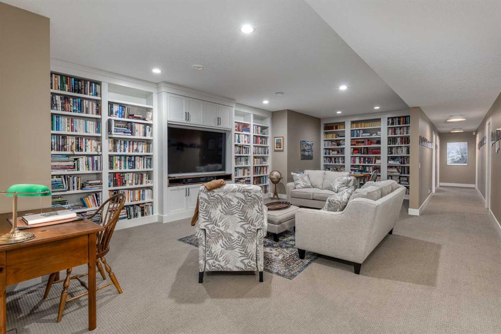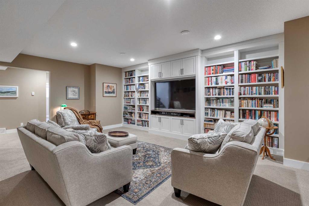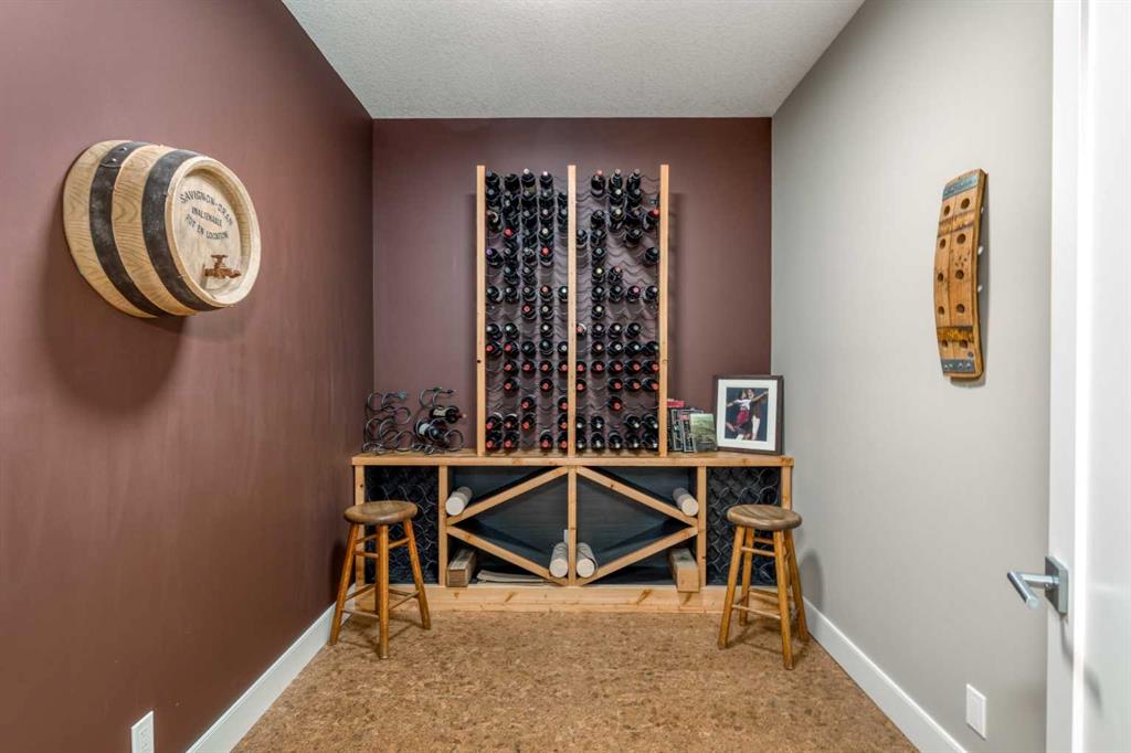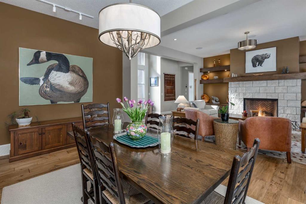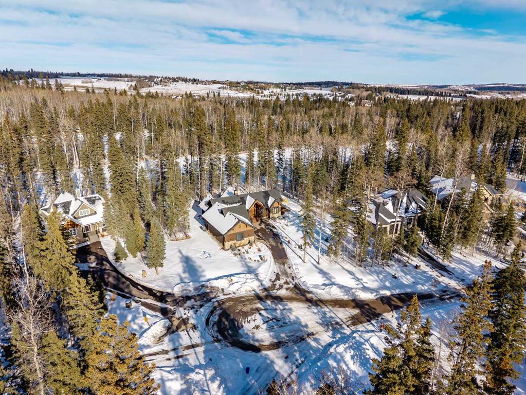 Nestled on a quiet cul-de-sac within the prestigious Hawk's Nest enclave of Priddis Greens, this exceptional 2020-built estate is beautifully landscaped and backs directly onto the 8th Fairway of the Hawk Course. Positioned within a designated Dark Sky Preserve, this stunning home offers remarkable privacy and uninterrupted night sky views. In 2023, this home was enhanced with over $200,000 of thoughtful renovations. The lower level was finished beautifully, offering custom built-in bookshelves, 3 additional bedrooms, in-floor heating, Wine Cellar, and too many other upgrades to list. The main level features 10’ ceilings, oversized windows, engineered hickory hardwood flooring, extensive custom built-ins, and a spacious great room anchored by a 44” gas fireplace with integrated 5.1 surround sound and custom cabinetry. The sun-filled chef’s kitchen includes a 6-burner gas range, 48” built-in refrigerator, built-in warming drawer, pot filler, water filter, granite island w/ seating and under-cabinet lighting. The upgraded cabinets offer ample storage, custom wooden drawer organizers, lazy-Susan corner units, pull-out pot drawers, a spice pull and a pull-out waste basket system. The dining area opens to a fully-fenced, covered composite rear deck, complete with gas BBQ line, overhead gas patio heater, and views of the well-treed, landscaped yard. The primary retreat offers a spacious walk-in closet with custom built-ins, and a bright, spa-inspired ensuite featuring heated floors, a large steam shower with seating, a deep soaker tub, dual vanities, seating area with built in cabinets, a private water closet. The main floor office/den provides flexibility and could easily function as a 5th bedroom, if desired. The fully developed lower level (completed in 2023) includes in-floor heat throughout, 3 additional bedrooms, an expansive recreation room with custom bookshelves and cabinetry, a wine room, massive storage space, and both a 3-piece and 5-piece bathroom — each featuring heated tile floors and glass-enclosed tiled showers. The utility room is arguably the best you'll ever find in a home, with 2023 upgrades including A/C, a sump pump with battery backup, an upgraded WiFi system and high-end (and compact) water softener. The HRV system, 200 amp electrical service, and central vac with floor sweeps in both the Kitchen and Mudroom, finish the space. The 1153 sq ft, triple-car garage offers 12’ ceilings, 9’ doors, in-floor heat, epoxy-coated floors, hot/cold water service, built-in shelving and an entrance to both the side yard and the Mudroom. Exterior finishes include real Montana Ledge stone, stucco, and timber accents with a cedar vaulted entry. The fully landscaped yard features extensive trees, shrubs and perennials. Don't miss this rare opportunity to own a 2020-built, golf course estate home with significant enhancements in 2023, and positioned on one of the community’s most desirable lots in Priddis Greens. Reach out for the full list of upgrades.