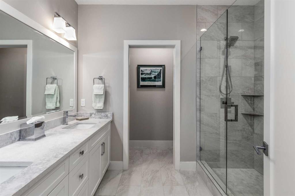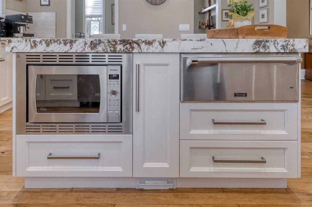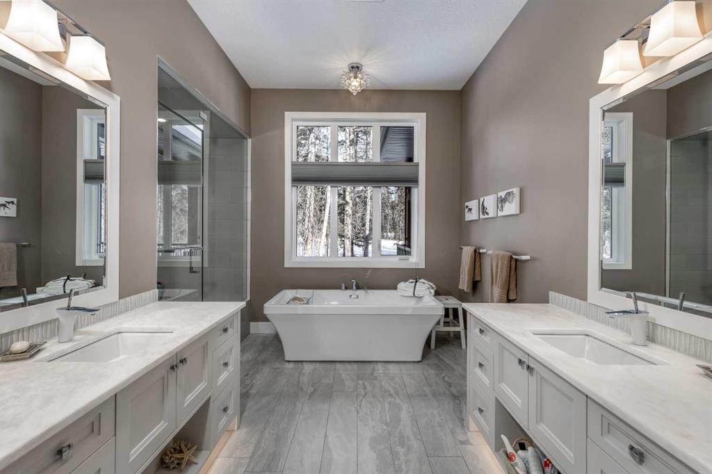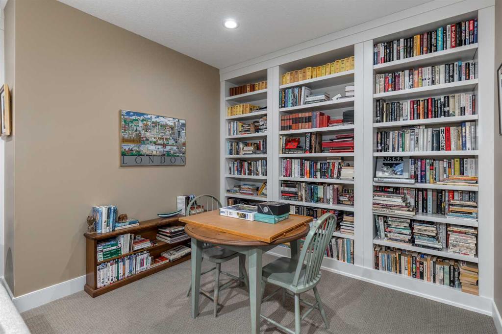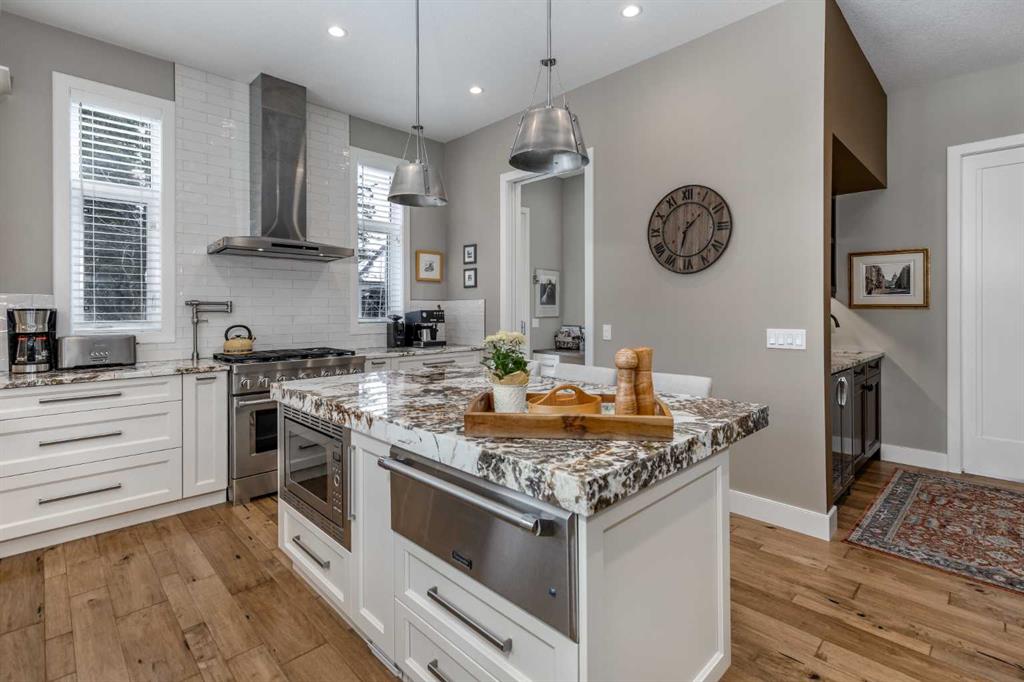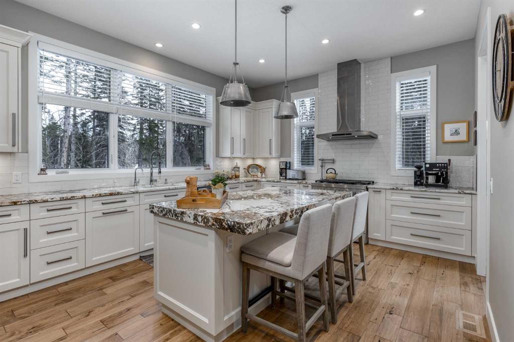 Nestled on a quiet cul-de-sac within the prestigious Hawk's Nest enclave of Priddis Greens, this exceptional 2020-built estate is beautifully landscaped and backs directly onto the 8th Fairway of the Hawk Course. Positioned within a designated Dark Sky Preserve, this stunning home offers remarkable privacy and uninterrupted night sky views. In 2023, this home was enhanced with over $200,000 of thoughtful renovations. The lower level was finished beautifully, offering custom built-in bookshelves, 3 additional bedrooms, in-floor heating, Wine Cellar, and too many other upgrades to list. The main level features 10’ ceilings, oversized windows, engineered hickory hardwood flooring, extensive custom built-ins, and a spacious great room anchored by a 44” gas fireplace with integrated 5.1 surround sound and custom cabinetry. The sun-filled chef’s kitchen includes a 6-burner gas range, 48” built-in refrigerator, built-in warming drawer, pot filler, water filter, granite island w/ seating and under-cabinet lighting. The upgraded cabinets offer ample storage, custom wooden drawer organizers, lazy-Susan corner units, pull-out pot drawers, a spice pull and a pull-out waste basket system. The dining area opens to a fully-fenced, covered composite rear deck, complete with gas BBQ line, overhead gas patio heater, and views of the well-treed, landscaped yard. The primary retreat offers a spacious walk-in closet with custom built-ins, and a bright, spa-inspired ensuite featuring heated floors, a large steam shower with seating, a deep soaker tub, dual vanities, seating area with built in cabinets, a private water closet. The main floor office/den provides flexibility and could easily function as a 5th bedroom, if desired. The fully developed lower level (completed in 2023) includes in-floor heat throughout, 3 additional bedrooms, an expansive recreation room with custom bookshelves and cabinetry, a wine room, massive storage space, and both a 3-piece and 5-piece bathroom — each featuring heated tile floors and glass-enclosed tiled showers. The utility room is arguably the best you'll ever find in a home, with 2023 upgrades including A/C, a sump pump with battery backup, an upgraded WiFi system and high-end (and compact) water softener. The HRV system, 200 amp electrical service, and central vac with floor sweeps in both the Kitchen and Mudroom, finish the space. The 1153 sq ft, triple-car garage offers 12’ ceilings, 9’ doors, in-floor heat, epoxy-coated floors, hot/cold water service, built-in shelving and an entrance to both the side yard and the Mudroom. Exterior finishes include real Montana Ledge stone, stucco, and timber accents with a cedar vaulted entry. The fully landscaped yard features extensive trees, shrubs and perennials. Don't miss this rare opportunity to own a 2020-built, golf course estate home with significant enhancements in 2023, and positioned on one of the community’s most desirable lots in Priddis Greens. Reach out for the full list of upgrades.