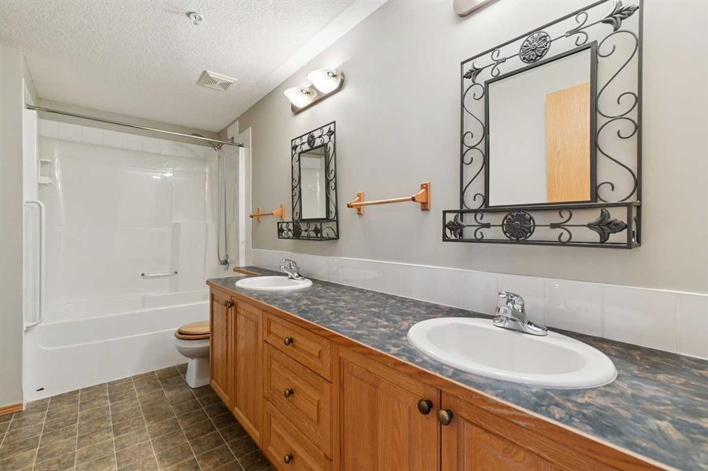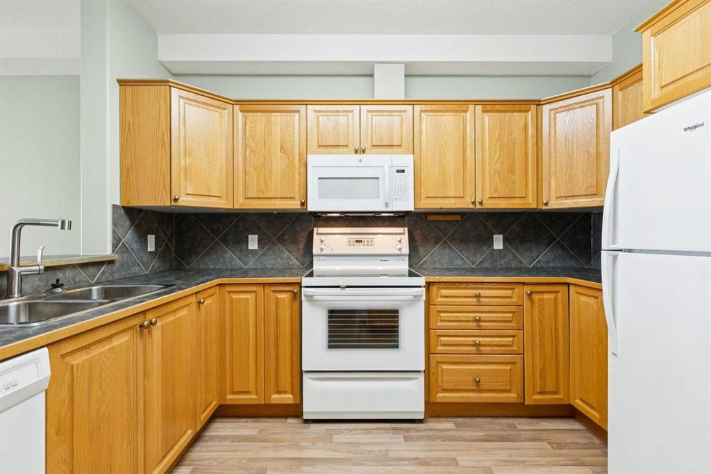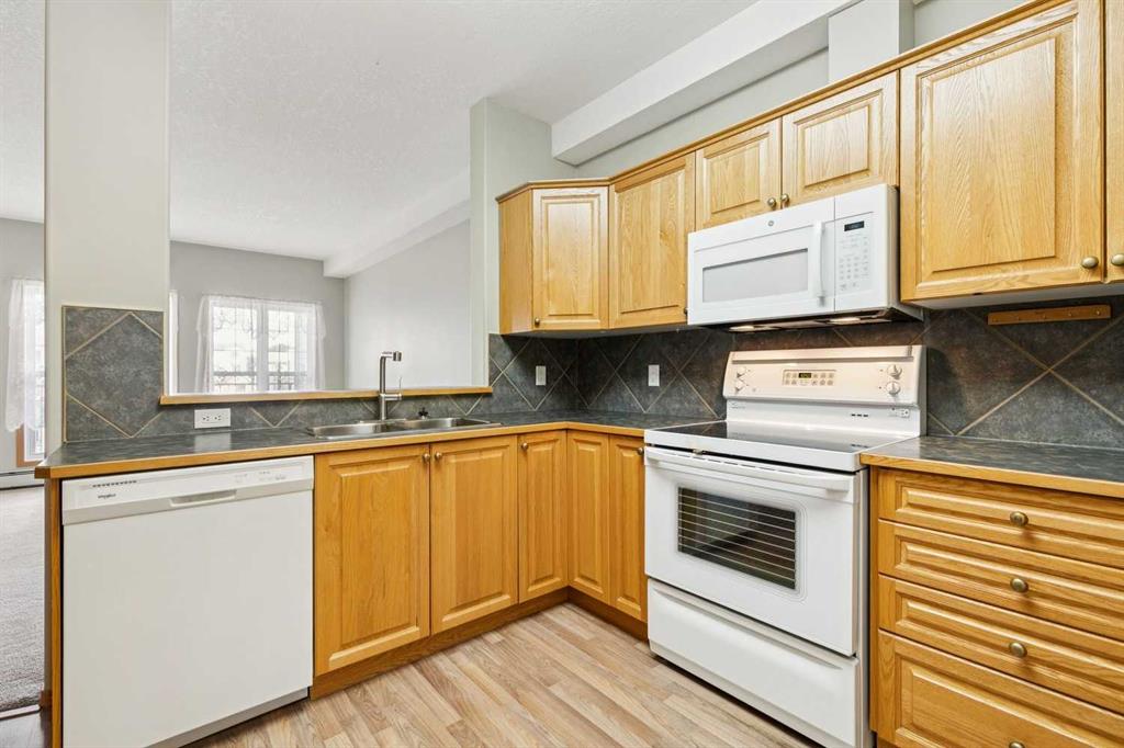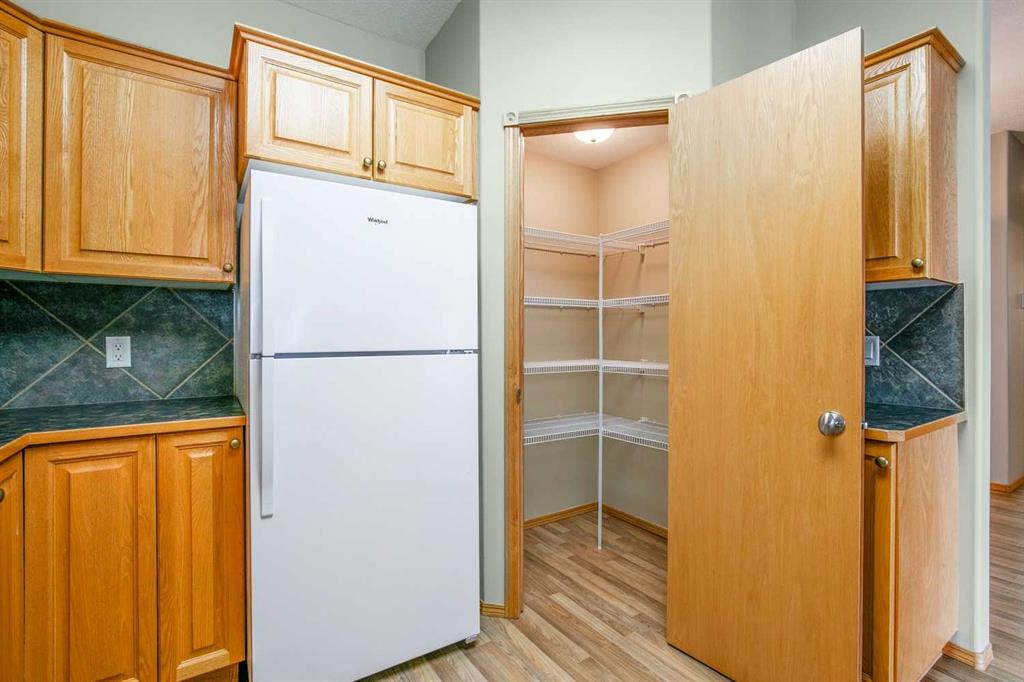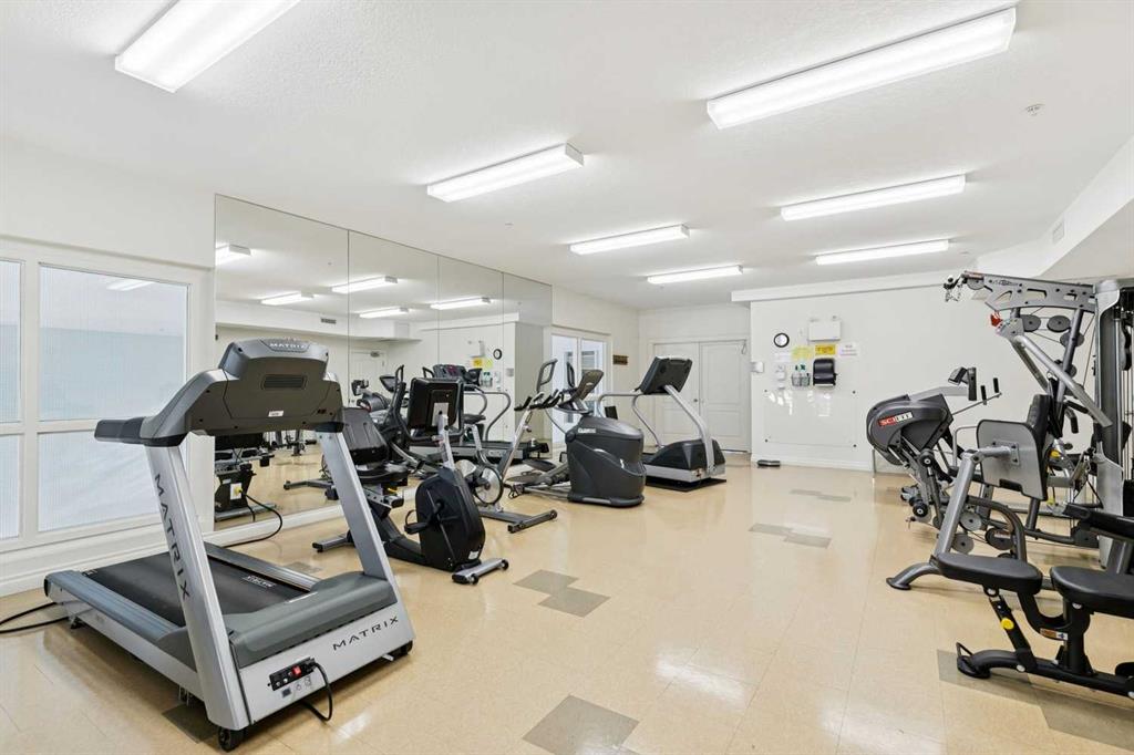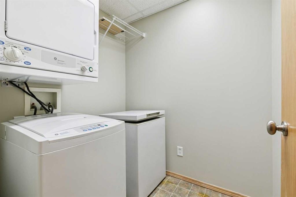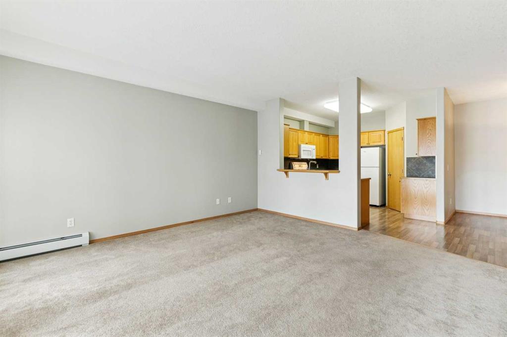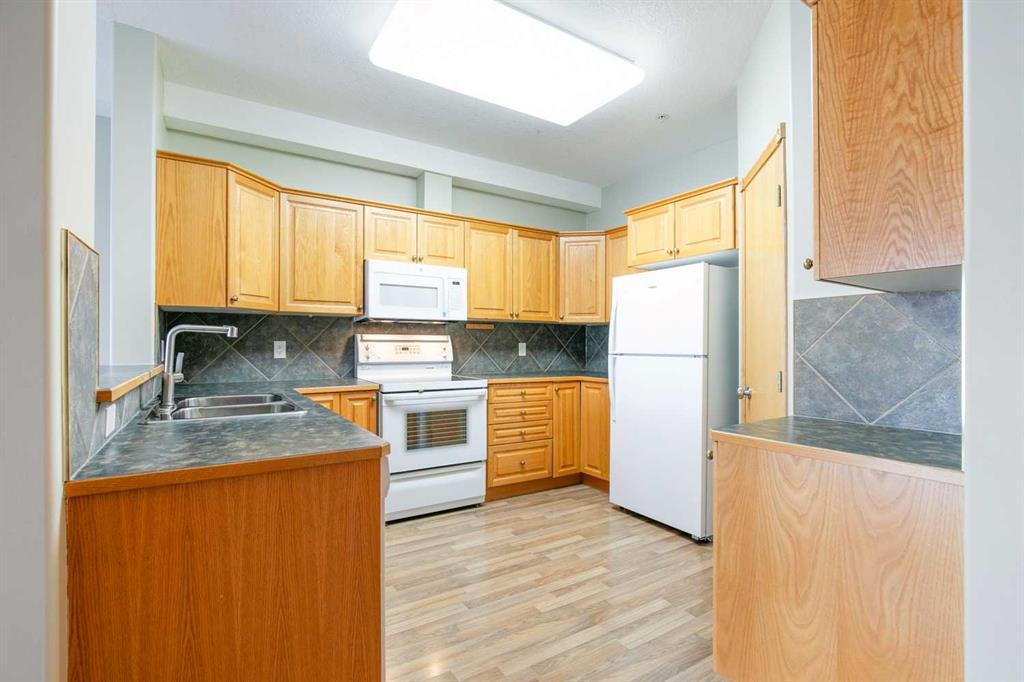 Exceptional 40+ complex in a prime location with outstanding amenities! This highly sought-after, well-managed community features an active Board and a true pride of ownership throughout. Almost 1,000 sq ft, this spacious 1 Bedroom + Den unit is ideally situated in a quiet corner of the complex. The functional open-concept layout includes a large kitchen with eating bar overlooking the living room, ample counter space, pantry, and a separate dining area. The bright living room features a cozy fireplace and large windows with access to the generous deck. The oversized primary bedroom includes a walk-in closet and a 5-piece ensuite with double sinks, abundant cabinetry, and excellent counter space. Additional highlights include 10 ft ceilings, quality carpet underlay, in-suite storage, plus a storage locker conveniently located at the front of the titled underground heated parking stall. Resort-style amenities include an indoor swimming pool, hot tubs, fully equipped fitness room, theatre, billiards/games room open to a dance floor and party space, library, car wash bay, and workshop area in the heated parkade. Beautiful walking paths surround the pond to the south with sitting areas throughout the grounds. Ideally located close to shopping, dining, recreation, VIVO Centre, cinema, and more, with quick access to Deerfoot Trail and Stoney Trail. A fantastic opportunity to enjoy maintenance-free living in a vibrant, amenity-rich community. Get into this desired Community while you can!