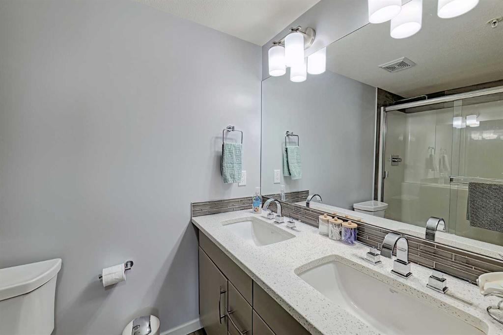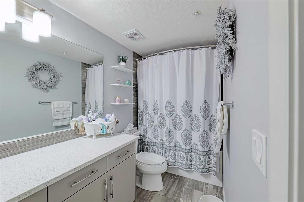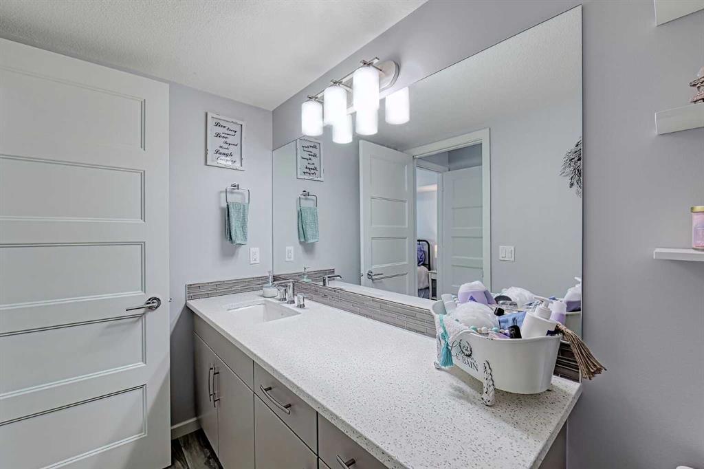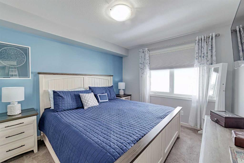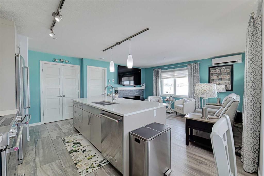 Beautifully kept - this spacious 2 bedroom, 2 bathroom unit in the sought after complex "The Pinnacle at Kincora" is sure to impress! Lovely curb appeal and perfectly situated within the community of Kincora within walking distance to parks, pathways, and everyday shopping conveniences. Offering 941 SF of functional design welcoming you into a large foyer where you will love the choice flooring and color pallet throughout that is visually captivating. The Chef's kitchen showcases high-end stainless-steel appliances, mosaic tile backsplash, Quartz countertops and an over-sized island with eating bar. The dining area has French door access to the balcony and opens to the living room with cozy gas fireplace. The primary bedroom features a walk-in closet with custom built-ins and a 4 piece ensuite with dual sink vanity. A second guest room with dual closets, 4 piece bathroom and insuite laundry complete this unit. Don't overlook the central AC for those hot summer days, titled underground parking stall, assigned storage locker and bike storage. Enjoy the maintenance free, 18+ adult living in a pet friendly building (upon board approval) today!