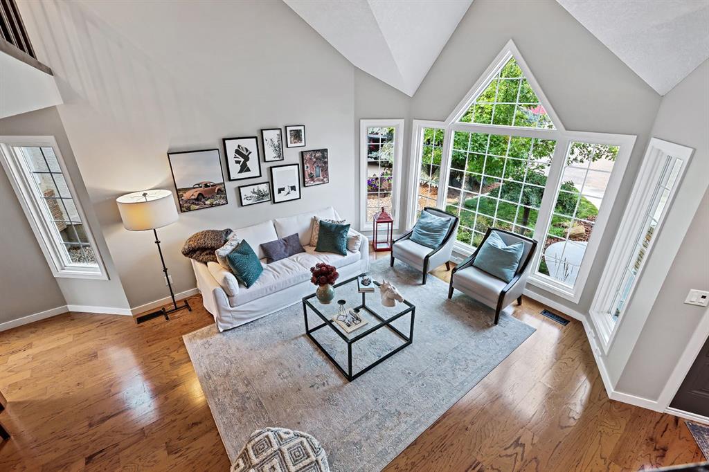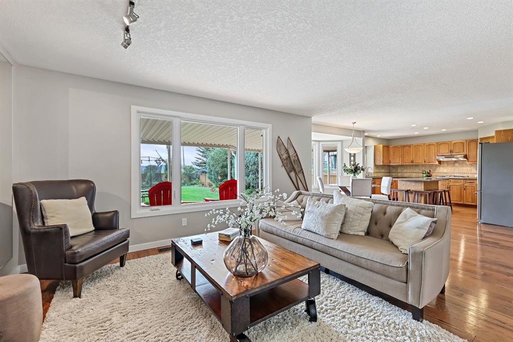 This upgraded and fully developed, 4-bedroom, 4-bathroom home offers over 3,300 sq ft of living space with rare, unobstructed Rocky Mountain views — a vantage point unmatched in the neighbourhood. The main floor features vaulted ceilings, large windows, a gas fireplace, and a kitchen with granite countertops, island seating, and new KitchenAid stainless steel appliances. Upstairs offers a loft, a second bedroom, and a spacious primary suite positioned to capture the views, complete with a dedicated workout area, custom built-in closet cabinetry, and an ensuite with jetted soaker tub and tiled walk-in shower. The fully developed basement adds two additional bedrooms, a large recreation room, and full bath. Major upgrades include new air conditioning, two furnaces, two hot water tanks, triple-pane windows and exterior doors, professional interior paint, irrigation system, new driveway, and garage doors and openers. Situated in one of the largest lots in the community and backing onto green space and a dog park, the covered deck, mature trees, and perennial gardens create a private setting designed to capture exceptional sunset views — exclusive to this property within the neighbourhood. Located in highly desirable Suntree, minutes from shopping, schools, recreation, downtown Okotoks, and quick access to Calgary.