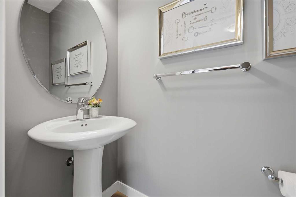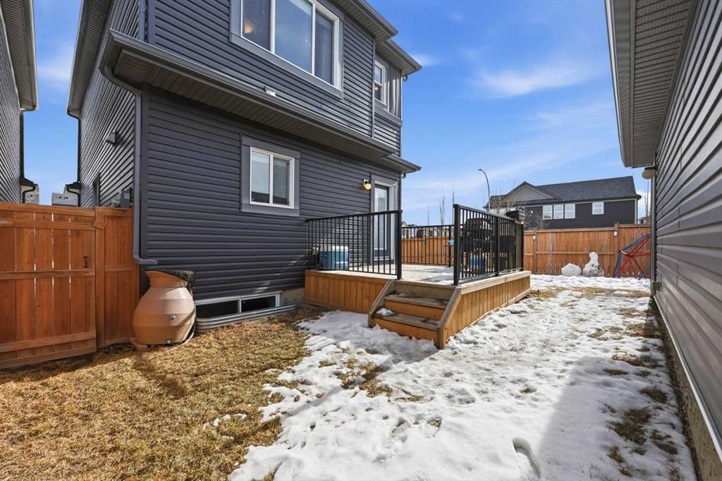 Evanston - 8 Evanscrest Way NW: Welcome to this former Pacesetter Homes showhome, ideally situated on a corner lot in the desirable community of Evanston. A charming front porch greets you, enhancing the home’s curb appeal Offering 1,493 sq ft of thoughtfully designed living space, this home features 3 bedrooms, 2.5 bathrooms, and central A/C. The bright and open main floor showcases a spacious living room with a tiled gas fireplace, built-in speakers, and large windows that flood the space with natural light. The U-shaped kitchen is both stylish and functional, featuring quartz countertops, a tile backsplash, stainless steel appliances, a corner pantry, and peninsula seating for three. The adjacent dining area offers space for entertaining, while a convenient 2-piece powder room and mudroom complete the main level. Upstairs, the spacious primary bedroom offers a walk-in closet, built-in speakers, and a 4-piece ensuite with dual sinks and a glass shower. You will find two additional bedrooms, a 4-piece main bathroom, and a laundry closet providing comfort and convenience for the whole family. The unspoiled basement offers excellent potential for a future fourth bedroom, recreation room, and additional bathroom. The lot is beautifully landscaped, featuring a fully fenced west-facing backyard with a sunny, south-facing extra-wide side yard, a grassy play area, a spacious deck for entertaining, and an oversized detached double garage with paved back lane access. Additional upgrades include a reverse osmosis water filter and new shingles in 2024. Ideally located with quick access to the airport and major roadways, including Stoney Trail and Deerfoot Trail, this quiet, family-friendly community offers an abundance of amenities such as shops, schools, parks, playgrounds, restaurants, and more.