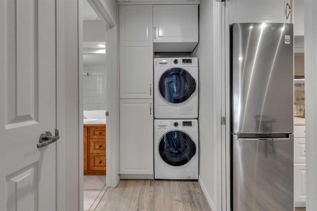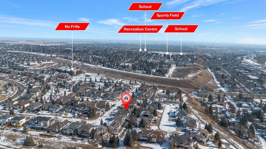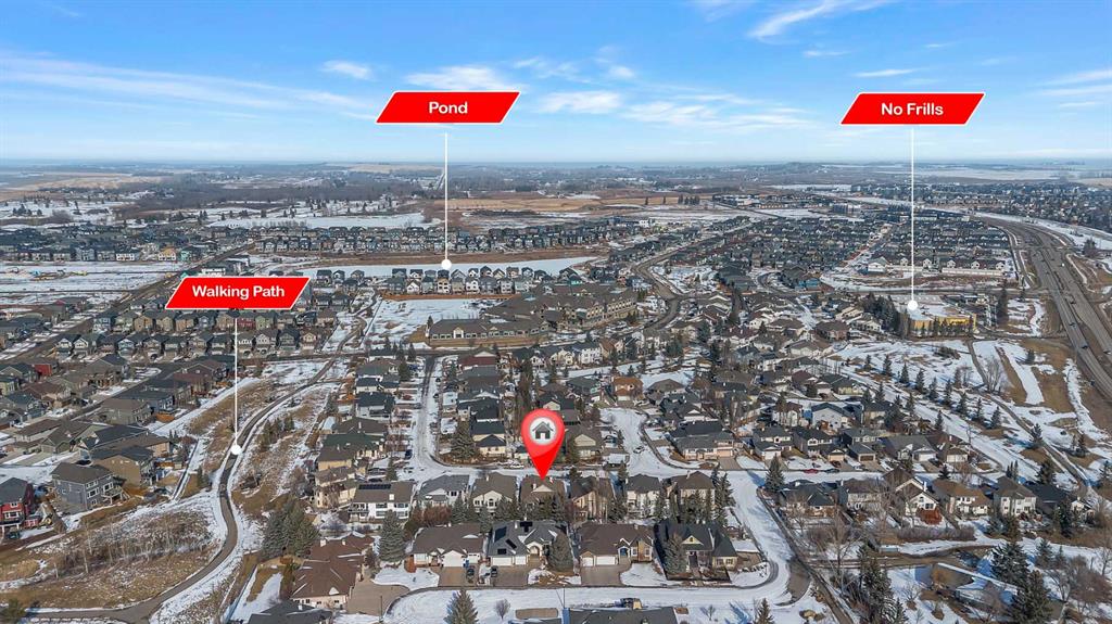 Welcome to this beautifully renovated 1,605 sq. ft. fully finished walkout bungalow in the highly desirable Sandstone community of Okotoks. Offering exceptional craftsmanship, thoughtful design, and pride of ownership throughout, this home truly stands out. From the moment you arrive, you’ll notice the attention to detail. The spacious front entry welcomes you into an impressive open-concept main floor featuring gleaming hardwood floors, 9-foot ceilings, and a dramatic tiered cathedral ceiling in the great room. Large windows flood the space with natural light, while a striking three-sided fireplace creates warmth and elegance between the living , kitchen and dining areas. The custom kitchen is a true showpiece, complete with a massive island, porcelain countertops, solid wood cabinetry, high-end built-in appliances, a butler’s pantry with sink, and a convenient walk-through pantry. The bright nook area leads to a full-sized deck — perfect for entertaining or relaxing outdoors. In addition to the primary retreat, the main floor also features a private den — ideal for a home office, library, or flex space. The spacious primary bedroom offers a walk-in closet with custom built-ins and a luxurious ensuite. Main floor laundry adds everyday convenience. The fully developed walkout basement is equally impressive, featuring in-floor heating, a beautiful built-in fireplace with custom cabinetry, and a spacious family/games room complete with a wet bar — perfect for entertaining. Two generous bedrooms (both with walk-in closets) and a full bathroom complete the lower level. Large windows provide abundant natural light, creating a warm and inviting space. A truly special feature of this property is the separate, private guest accommodation (illegal suite), complete with its own entrance, kitchen, stacked washer and dryer, bedroom, and full bathroom — ideal for extended family, guests, or potential Airbnb use. Additional highlights include a heated garage, mature trees, a private yard, and direct access to walking and biking paths. Located close to schools, amenities, transportation, and serene green spaces. This exceptional home offers luxury, flexibility, and an unbeatable location — a rare opportunity!