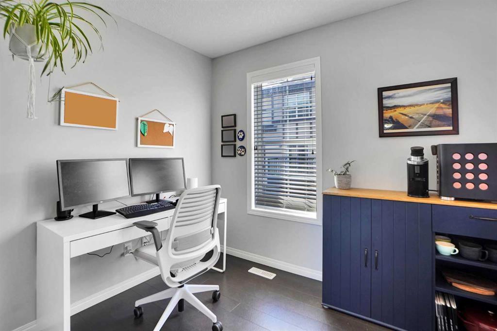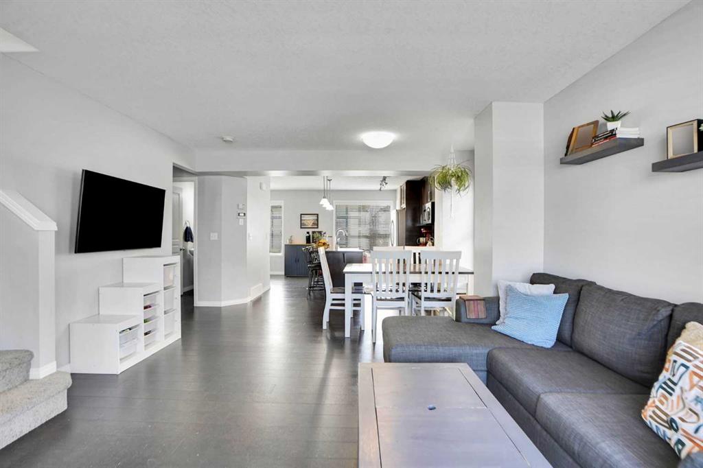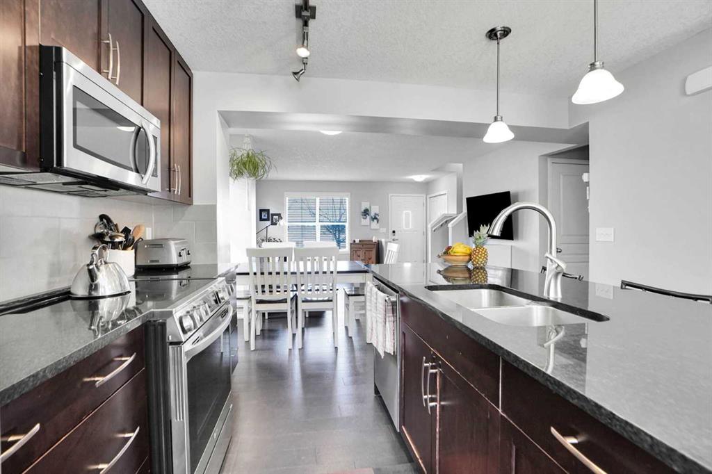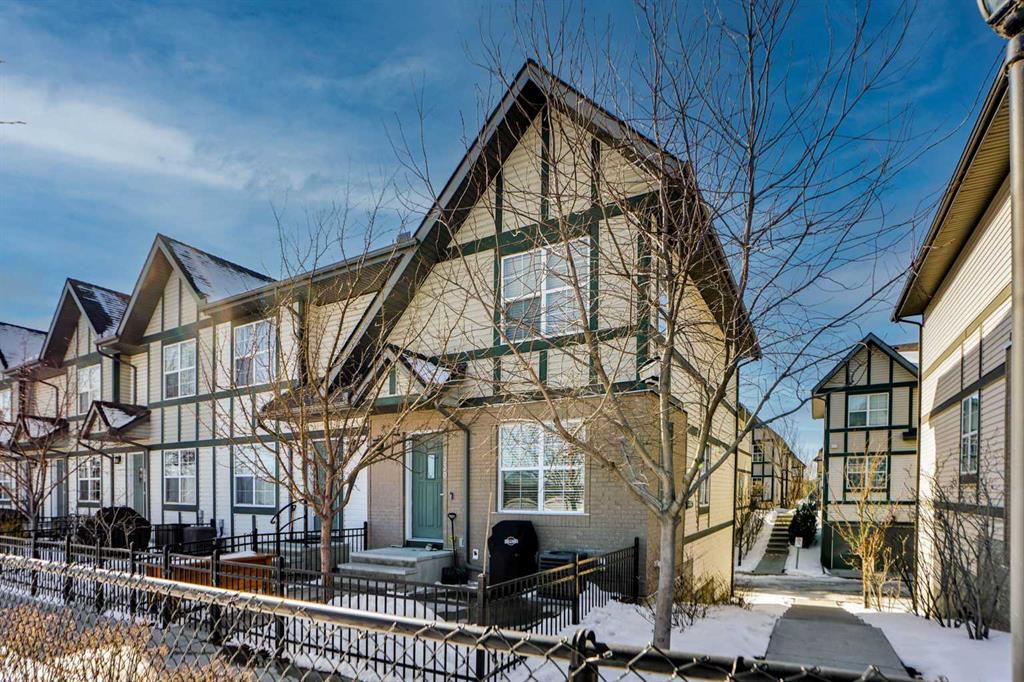 Welcome to one of the most desirable locations in Mosaic of Cranston — an end-unit townhome perfectly positioned facing the park, with no neighbours in front and a fabulous, private yard space to enjoy it all. Opportunities like this rarely come up, especially an end unit on the park. This beautifully maintained 2-storey home offers extra windows, added natural light, and enhanced privacy thanks to its end-unit placement. The cozy front yard creates the perfect setting for morning coffee or evening unwinding while overlooking peaceful green space. Inside, you’ll immediately notice the upgraded cork flooring that brings warmth and character throughout the main living areas, paired with granite countertops throughout the home. The open-concept layout is functional and inviting, ideal for both everyday living and entertaining. Upstairs features two spacious bedrooms — each with its own private ensuite — an incredibly desirable layout for professionals, roommates, small families, or guests. Both bedrooms offer generous space and comfort, creating a true dual-primary setup. The recently developed lower level adds impressive versatility, complete with an elongated, hardwired electric fireplace that creates a modern and cozy focal point. There’s even a cleverly designed hidden play area for the kids — a fun bonus space that makes this home truly unique. A full double car garage provides secure parking and extra storage — a major advantage in townhome living. And the location? Exceptional. Just a quick walk to Century Hall featuring a gym, skating rink, splash park, hockey rink and community events. Sobeys, restaurants, cafés, and everyday retail shops are all steps away. Plus, enjoy access to Cranston’s extensive ridge pathways with stunning Bow River valley views, along with endless bike and walking paths connecting to Fish Creek Park. Its so close to Seton you could walk to work at South Health Campus! Mosaic townhomes rarely come available — and an end unit backing onto the park is even more uncommon. If you’ve been waiting for something special in Cranston, this is your chance. Private. Bright. Rare. And perfectly located.
