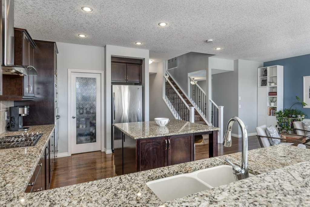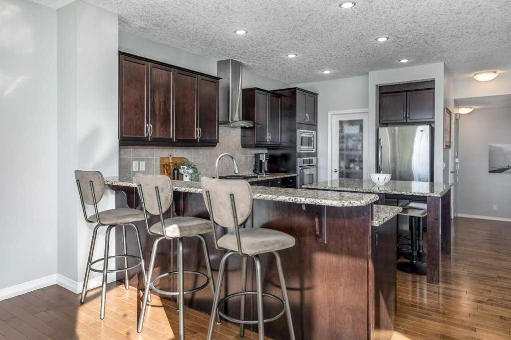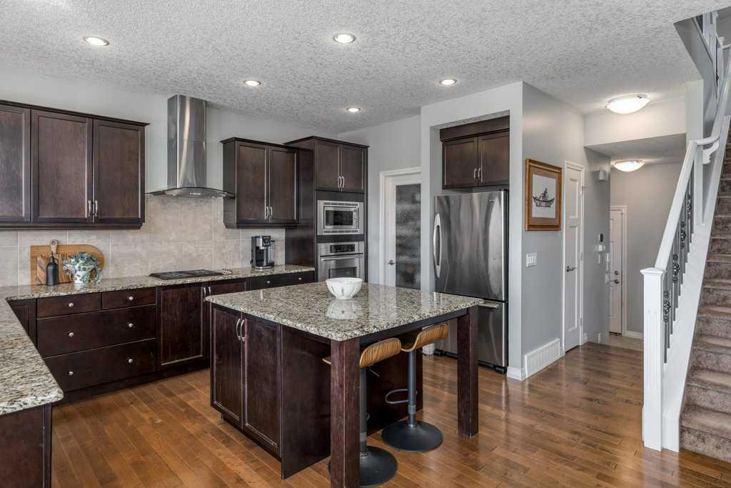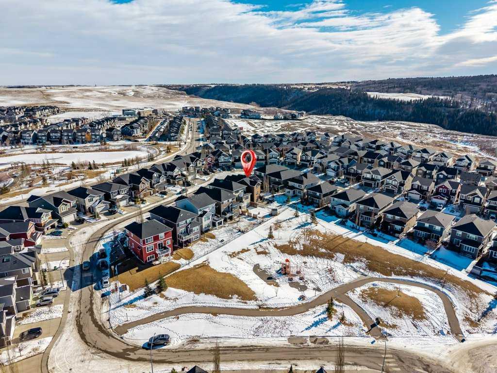 BEAUTY BACKED BY EFFICIENCY || MOUNTAIN VIEWS + SOLAR POWERED LIVING. Welcome to this exceptional walkout home in the highly sought-after community of Sunset Ridge in Cochrane, offering breathtaking mountain views from all three levels and backing directly onto a park—an ideal setting for families who value space, serenity, and community. From the moment you arrive, the expansive views set the tone for this special property. Inside, a large foyer with ceramic tile welcomes you and leads into a bright open-concept main floor featuring warm hardwood flooring throughout the kitchen, dining, and living areas. Designed for both everyday living and entertaining, the spacious kitchen offers abundant cabinetry, a large island, and raised breakfast bar seating. The dining area opens onto the back deck where you can soak in the panoramic mountain vistas, watch the kids play in the park behind, or enjoy grilling with friends using the natural gas BBQ hookup. The inviting living room features a gas fireplace, creating a warm and comfortable gathering space while taking in the spectacular views. Upstairs, the home continues to impress with a thoughtfully designed layout. The upper level includes three bedrooms, a huge bonus room with soaring 10-foot ceilings, a convenient laundry room, and a dedicated tech desk with two workspaces—perfect for homework, remote work, or family organization. The primary suite is a true retreat, featuring breathtaking mountain views, ample space for a king-sized bed, and a practical five-piece ensuite bathroom that leads to your walk-in closet. The fully developed walkout basement provides additional living space and flexibility with vinyl plank flooring throughout. This level includes a fourth bedroom, a full bathroom, office or flex space (a rough-in behind the wall allows for easy future installation of a bar or craft sink), and a bright recreation room with endless possibilities. Step outside to the beautifully finished lower patio with paver stones and rough-in wiring for a future hot tub. The yard is generously sized and opens directly toward the park, enhancing the sense of space and enjoyment of your outdoor living area. This home also offers thoughtful upgrades for comfort and efficiency, including a Zeno solar panel system to help reduce energy costs and environmental impact. The system includes a microgeneration permit, allowing the homeowner to sell excess electricity back to the utility grid. A radon mitigation system is also installed to help reduce indoor radon levels. A double attached garage and extra-deep driveway provide ample parking and convenient space for larger vehicles or loading up before a weekend of camping. Sunset Ridge is one of Cochrane’s most desirable family communities, known for its scenic pathways, parks, and mountain views. The home is ideally located near RancheView School (K–8) and St. Timothy Junior/Senior High School (Grades 7–12), making it an excellent choice for growing families.