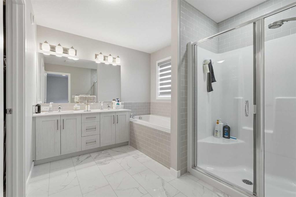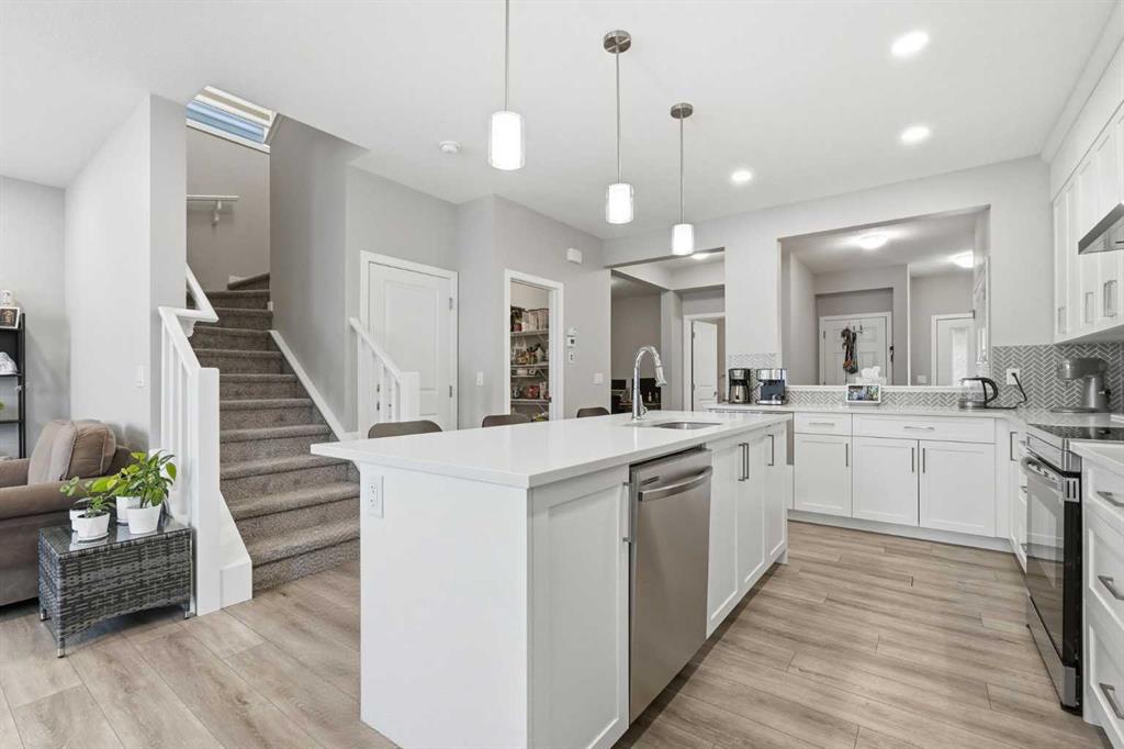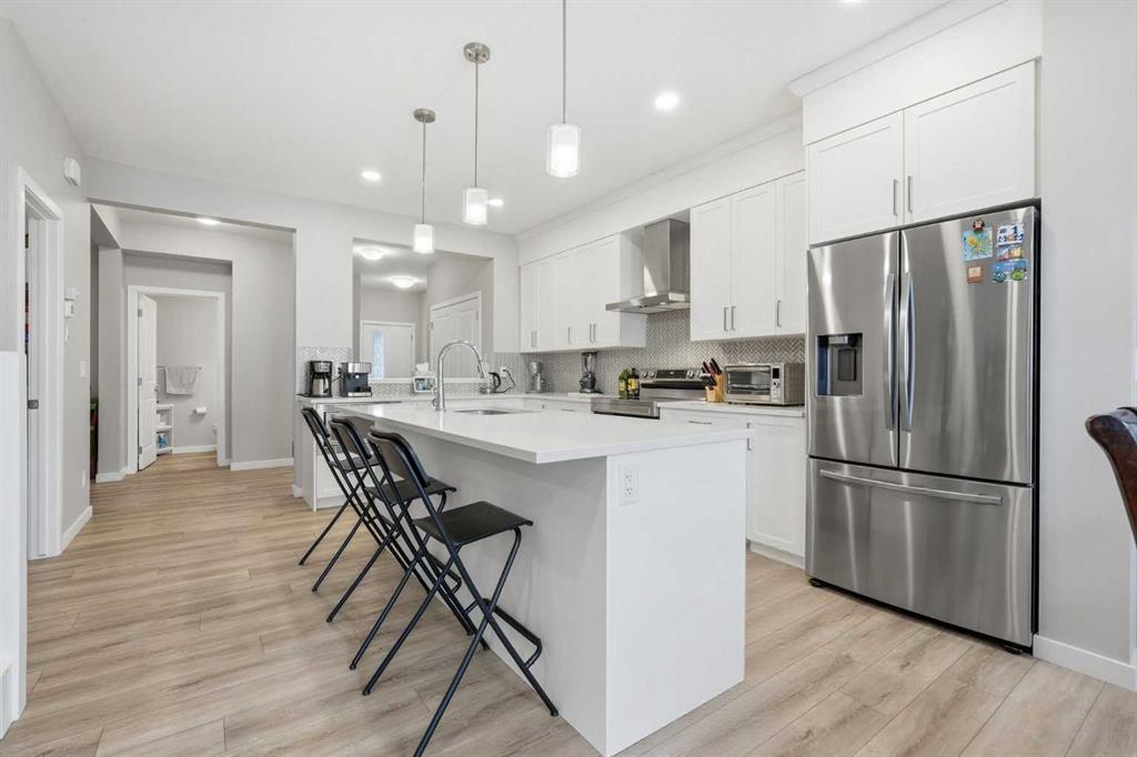 Rare opportunity in Pine Creek featuring a 4 bedrooms up and a fully legal 2-bedroom basement legal suite (6 bedrooms total) with completely separate gas, electric, and water meters, an incredibly uncommon setup that allows each legal suite to operate independently. Even better, this home is fully landscaped, fenced, and complete with window coverings, offering a major advantage over nearby new construction where these costs still need to be added. Inside, the home shows in true showhome condition with a bright open-concept main floor designed for modern living. The upgraded kitchen features quartz countertops, a large island, herringbone tile backsplash, and a spacious walk-in pantry. The main floor also includes a private office/den, powder room, electric fireplace, and a welcoming front entry with generous storage. Upstairs is thoughtfully designed for families with 4 bedrooms, a large vaulted bonus room, two full bathrooms, and a dedicated upstairs laundry room. The primary retreat includes a 5-piece ensuite with soaker tub, separate glass shower, and walk-in closet. The legal 2-bedroom basement legal suite is beautifully finished with its own kitchen, full appliance package including dishwasher, in-suite laundry, spacious living area, private entrance, and access to storage, ideal for rental income, multi-generational living, or guests. Complete with a double attached garage, private yard, deck, and quality finishes throughout, this property delivers the rare combination of six total bedrooms, income potential, and true turnkey living in one of SW Calgary’s fastest-growing communities.