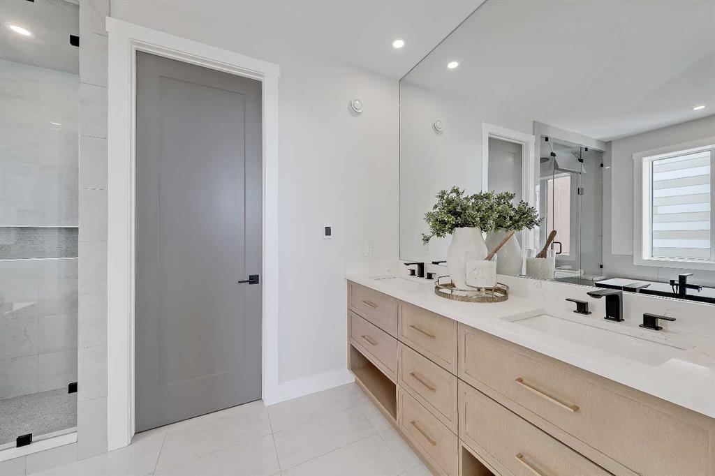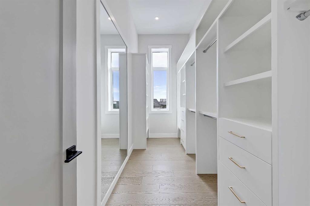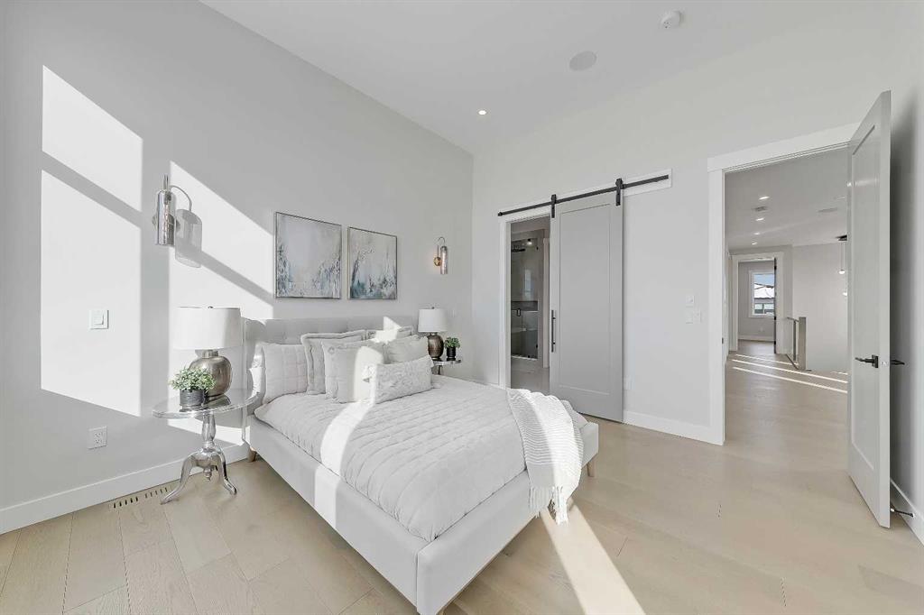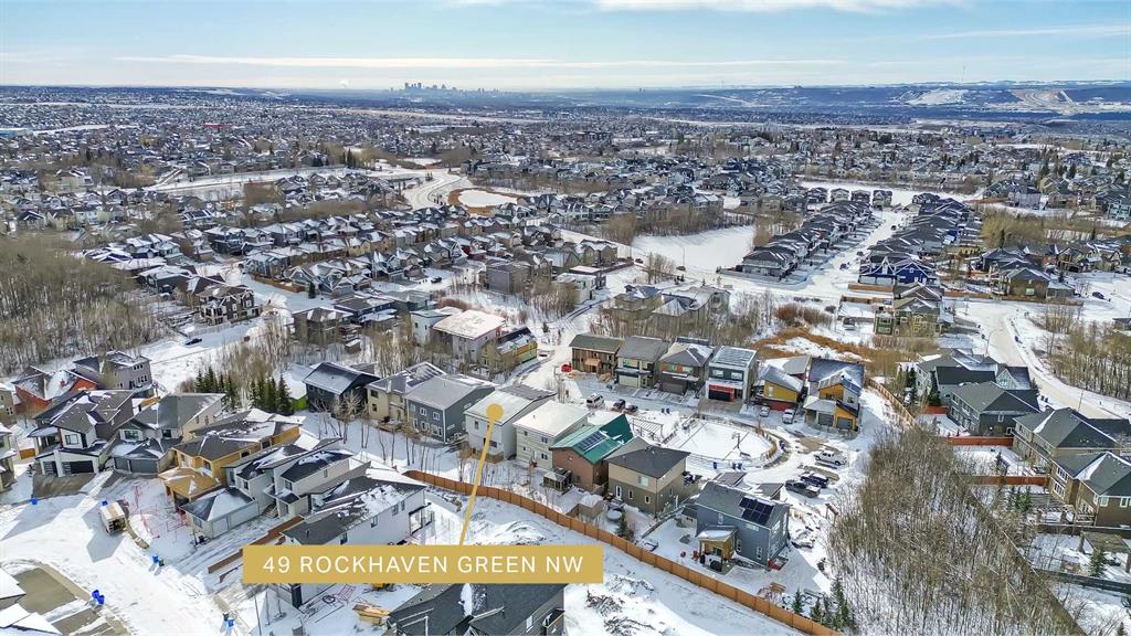 This is the kind of home that feels different from the moment you step inside. A 2024 CUSTOM ECO-BUILD set in Rocky Ridge’s exclusive ECO HAVEN ENCLAVE, it pairs true ZERO-CARBON CONSTRUCTION with refined, high-end design. Located on a quiet CUL-DE-SAC with SOUTH EXPOSURE and a unique open-corner feel, the home stands out immediately with its modern architecture, metal roofing, and black aluminum-clad Low-E windows. Inside, wide-plank hardwood, custom millwork, and expansive windows create an atmosphere of quiet luxury. Light pours in from every direction, bringing warmth to the oak accents and a sense of calm to the home’s airy, open layout. Built as a true ALL-ELECTRIC RESIDENCE WITH NO GAS LINE TO THE PROPERTY, this home is designed for long-term sustainability and year-round comfort. 28 fully registered SOLAR PANELS produce more energy annually than the home consumes, per the EnerGuide report. A MITSUBISHI ELECTRIC HEAT PUMP provides efficient heating & cooling, supported by an upgraded Lifebreath HRV system for continuous fresh air circulation. Advanced insulation, airtight construction, TRIPLE PANE LUX windows, smart LED lighting, and high-efficiency appliances work together to create a whisper-quiet interior that stays warm in winter, cool in summer, and operates at roughly half the utility cost of a comparable home! The main floor is designed for connection & function. The showpiece kitchen features a waterfall quartz island, warm oak cabinetry, induction cooktop, wall oven, French door fridge, wine fridge, and POT FILLER. A hidden PREP KITCHEN keeps the main space streamlined and clutter-free. The dining area flows seamlessly into the bright living room with a modern fireplace & access to the South-facing balcony. A designer powder room completes the level. Upstairs, a central bonus room anchors the bedrooms. The primary retreat offers an 11-ft ceiling, private balcony with DOWNTOWN VIEWS, boutique-style walk-in closet, and a spa-inspired ensuite with heated floors, dual vanities, freestanding soaker tub, and STEAM shower. Two additional bedrooms include walk-in closets and private 4-pc ensuites. A fully appointed laundry room adds practical convenience. The lower level expands the home with 9-ft ceilings and large windows that keep the space bright and welcoming. A spacious rec room with custom built-ins & wet bar creates the perfect setting for entertaining. A full bedroom and bathroom provide flexibility for guests, older children, or multigenerational living. Direct access to the FINISHED attached garage with EPOXY FLOORING & EV CHARGER enhances daily ease. Located across from a private pocket park with a picnic area and basketball court, and close to pathways, playgrounds, green space, and community gardens. Quick access to Crowchild Trail, Stoney Trail, the Rocky Ridge YMCA, and Tuscany LRT station makes commuting simple. This is modern luxury designed for the future: energy independent, architecturally refined, and built to stand apart.