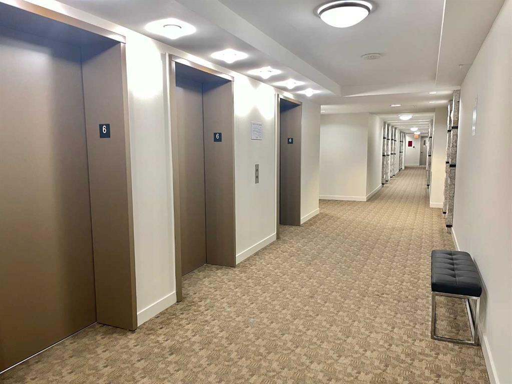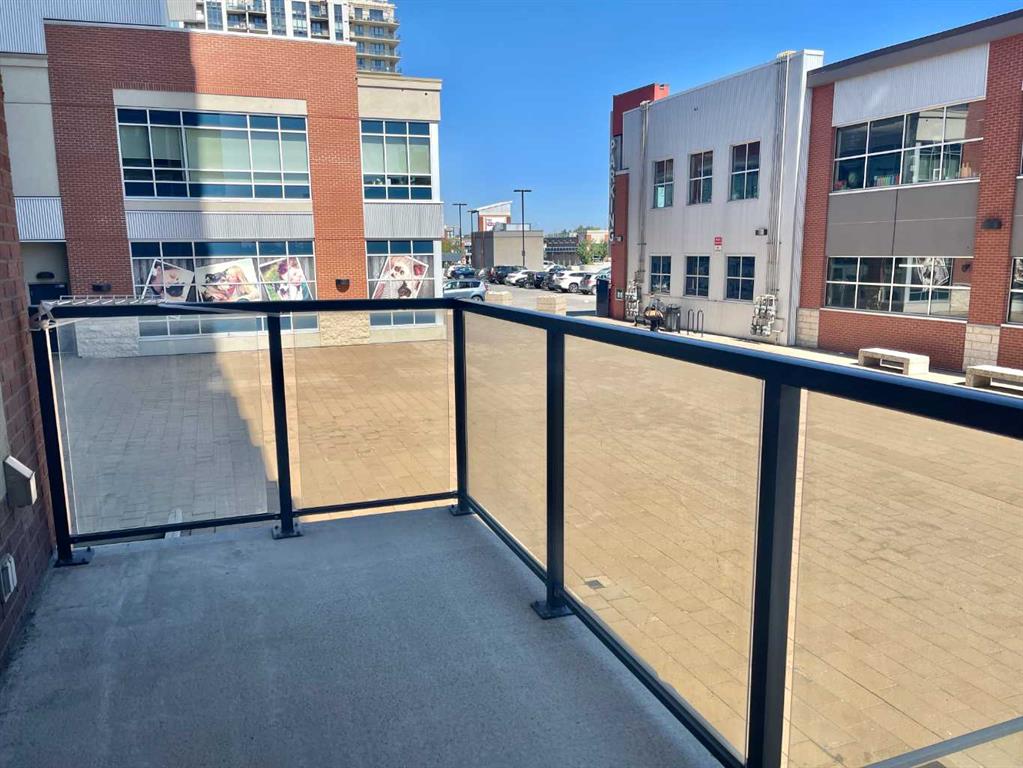 Presenting the largest corner unit in the building—an exceptional 2-bedroom, 2-bathroom residence offering 1040 square feet of thoughtfully designed living space. This upgraded residence features stylish engineered hardwood flooring and an open concept floor plan. A spacious and welcoming foyer with a double closet sets a sophisticated tone upon entry. Expansive windows throughout the unit allow for an abundance of natural light, further enhanced by the addition of elegant, customized double-layer curtains that provide both privacy and light control. The modernized kitchen is outfitted with updated cabinetry and striking black granite countertops, complemented by a suite of matching black appliances. The generous living room offers ample space for comfortable seating arrangements, with an adjacent dining area that opens to a private balcony featuring pleasant views. The primary bedroom includes a well-appointed four-piece ensuite, adding to the home's overall functionality and comfort. Residents will appreciate the building’s direct access to essential amenities, including nearby grocery stores and restaurants, all reachable without the need for elevator use. A convenient door one level below provides quick, weather-free access to Save-On-Foods via the 4th-floor parkade. Additional features include on-site security, a dedicated concierge, and ample indoor and guest parking. Situated in a highly desirable location within walking distance of numerous services and conveniences, this professionally upgraded unit with a sought-after layout represents exceptional value in today’s market.