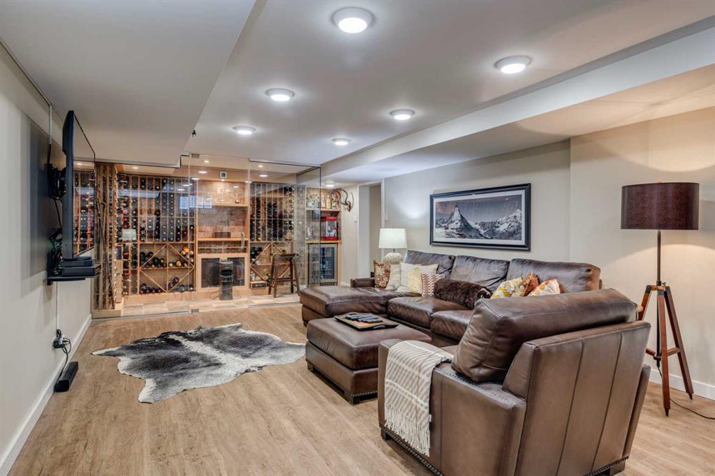 Located on a quiet, low-traffic street in the highly sought-after community of Elbow Park, this fantastic family home in Upper Elbow Park offers outstanding curb appeal with its timeless brick and wood exterior and a warm, welcoming presence. Inside, the thoughtfully designed floor plan features spacious principal rooms and excellent flow, ideal for both everyday living and entertaining. The main floor showcases newly installed engineered hardwood flooring (2024) and includes a formal living room, dining room, office or den/library, inviting family room, beautifully renovated laundry room (2018), and an eat-in kitchen with updated countertops (2016) overlooking the private backyard. Upstairs you’ll find a rare five-bedroom layout, offering exceptional flexibility for growing families, guest space, or the option of four bedrooms plus a second home office or expanded dressing room off the primary suite. The lower level provides a generous recreation room, a custom temperature-controlled wine cellar (2016), abundant storage, and convenient access to the attached double garage, which is equipped with an electric vehicle charging station (2021). Outside, the private, treed and fully fenced yard with underground sprinklers and firepit area creates a peaceful retreat. Back covered deck area is heated, as is the front covered porch/deck, such great areas to gather and enjoy year round. Numerous substantial upgrades add comfort and efficiency, including a high-efficiency boiler with Axiom feeder for the hot water heating system (2022), solar panel installation providing 8.75 kW (2021), roof replacement (2021), renovated upper-level bathrooms with in-floor heat (2016), updated carpeting (2016), and custom built-in cabinetry (2016). Perfectly positioned within walking distance to Marda Loop, River Park and its extensive pathway system, William Reid School, and the prestigious Glencoe Club, and just minutes from downtown and Western Canada High School, this is an exceptional opportunity to enjoy an established inner-city lifestyle in one of Calgary’s most desirable neighborhoods.