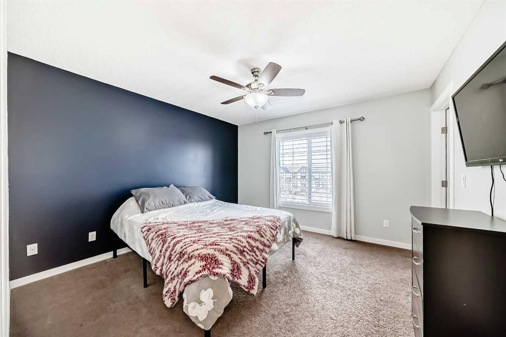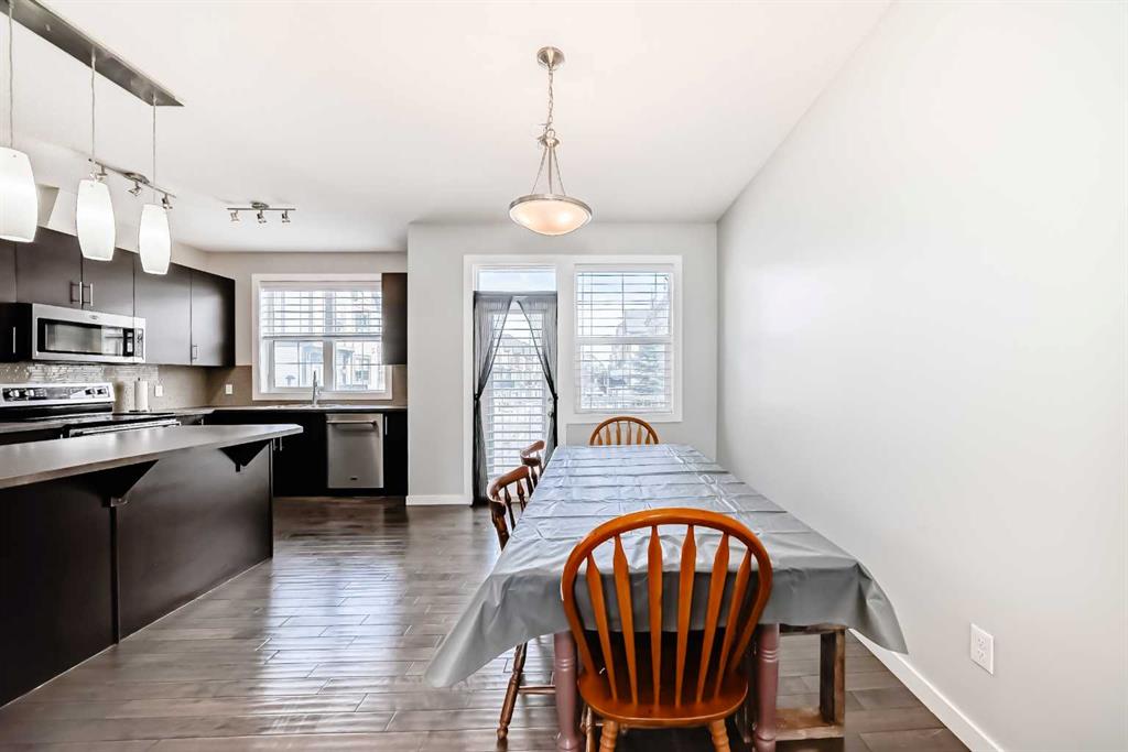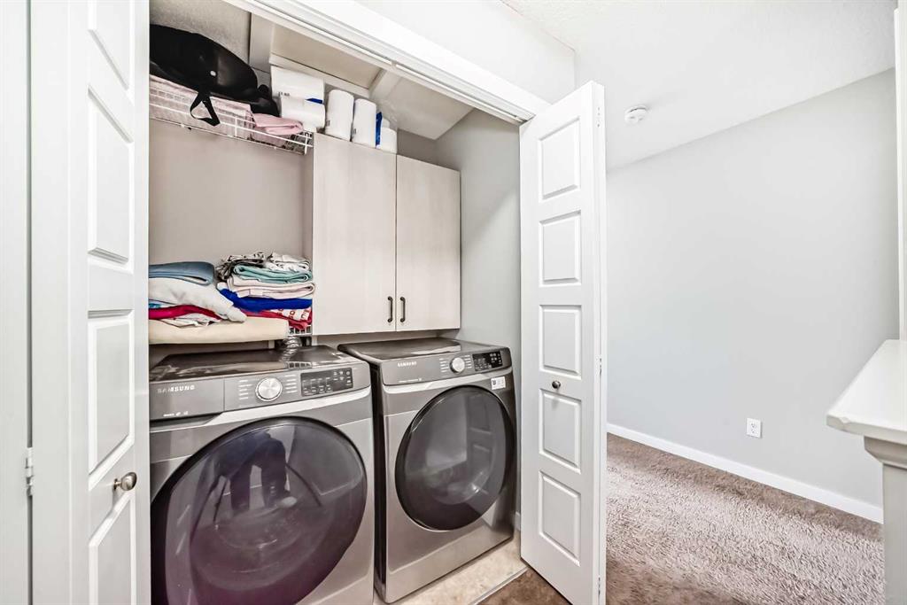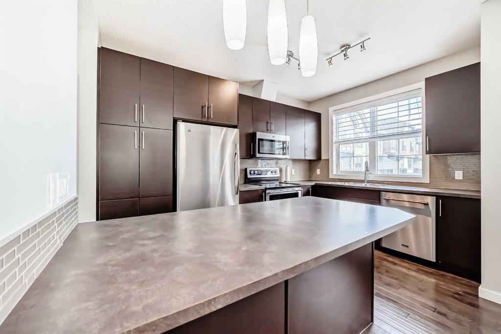 Welcome to this beautifully maintained two-storey townhome in the highly sought-after community of New Brighton. Offering over 1,500 sq ft of living space and an attached heated double garage, this home combines comfort, style, and functionality. Step inside through the spacious front entry and head up to the bright open-concept main living area, featuring hardwood flooring, and large windows that fill the space with natural light. The kitchen is a true highlight and a chef’s dream, complete with custom cabinetry, modern tile backsplash, a large island, and upgraded appliances including a Maytag refrigerator, double oven, and dishwasher. The adjacent dining area provides plenty of space for entertaining and offers access to a private balcony — perfect for summer BBQs. A conveniently located half bathroom completes the main level. Upstairs you’ll find three spacious bedrooms, all featuring large windows. The primary suite includes a walk-in closet and private ensuite, while the two additional bedrooms offer generous closet space and share a beautifully finished full bathroom with modern tile work. The upper floor also features a large laundry area with built-in cabinetry and storage, along with a Samsung washer and dryer. A tucked-away bonus storage room on the staircase landing offers the perfect place for seasonal items or a fun hideaway for kids. The lower level provides another versatile room, ideal for a home office, workout space, or flex room, along with access to the utility room and attached garage. Located in one of Calgary’s most family-friendly communities, New Brighton offers excellent schools, nearby shopping, and quick access to major roadways. Residents also enjoy access to the New Brighton Clubhouse, featuring a water park, hockey rink, tennis courts, and event facilities. Don’t miss your chance to own this exceptional home — book your private viewing today!