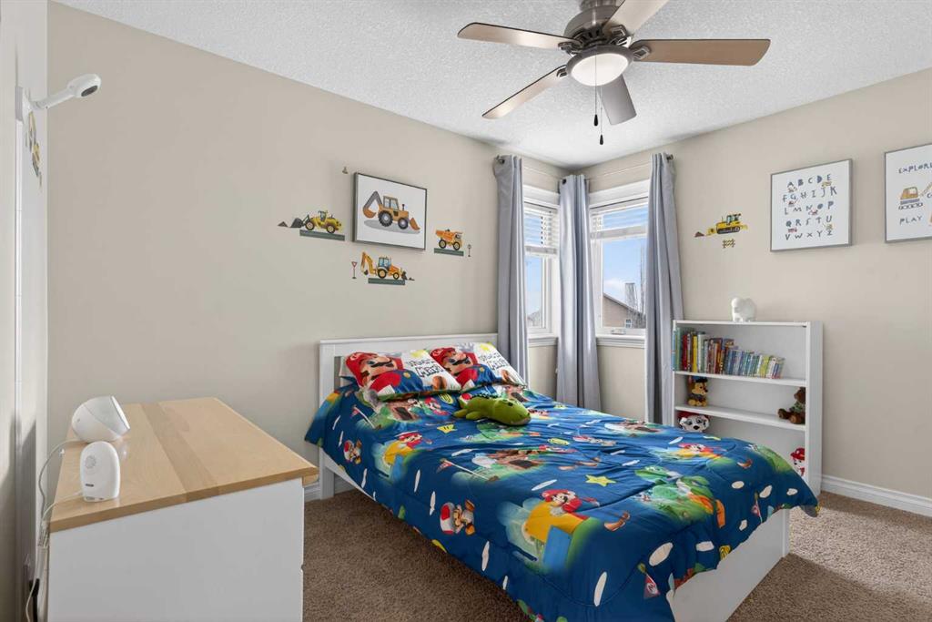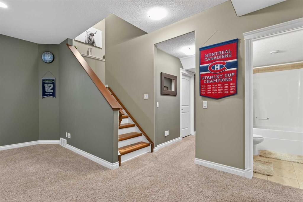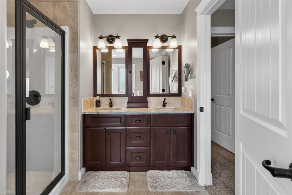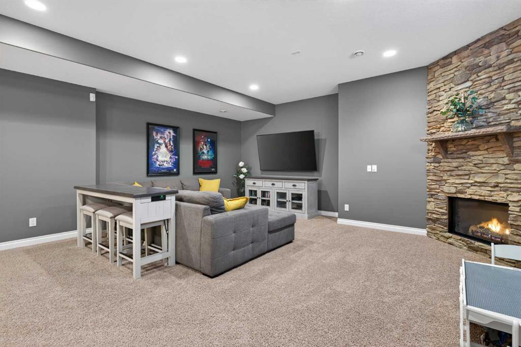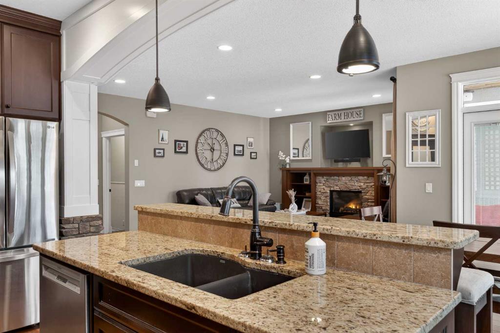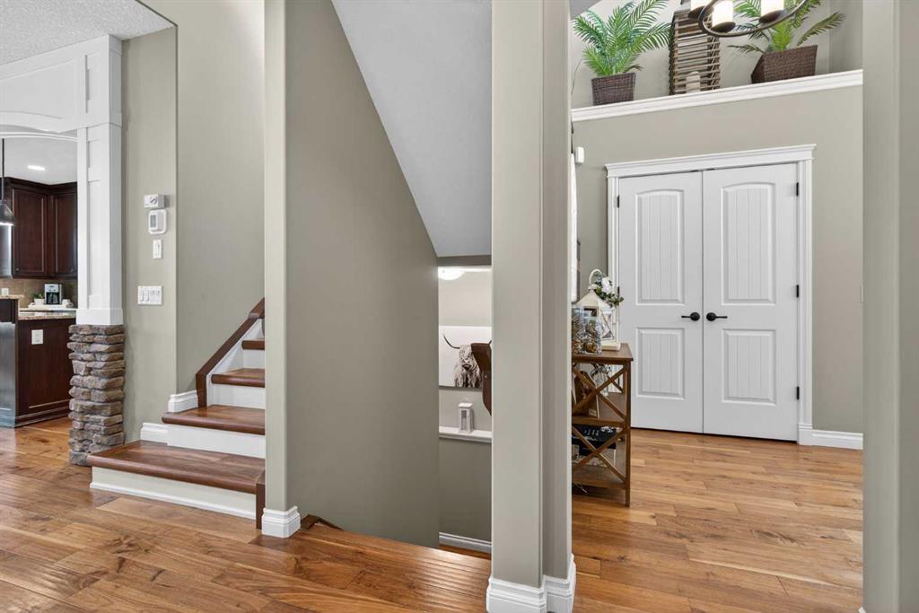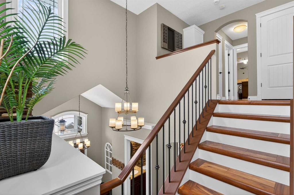 Do you know what it’s like to find the home of your dreams? Well now you’ll know when you step through the door of this custom-crafted estate home here in Cooper’s Crossing within walking distance to neighbourhood schools & leisurely stroll to Discovery Park. Built by Copper Rock Homes, this extensively upgraded two storey enjoys walnut & Acacia hardwood floors, relaxing central air, total of 4 bedrooms, heated 3 car garage & beautifully landscaped backyard with firepit, winding gardens & deck. Complemented by expansive 9ft ceilings & wide-plank walnut flooring, you will be truly impressed by the elegant feel of the main floor with its inviting living room with stone-facing fireplace accented by built-in cabinets, airy open concept dining room with picture windows looking out into the backyard & fully-loaded chefs kitchen with full-height cabinets & island with raised bar, granite countertops, walk-in pantry & sleek stainless steel appliances including Bosch dishwasher & Samsung stove/convection oven. Upstairs there are 3 fantastic bedrooms & 2 full bathrooms – highlighted by the owners’ retreat with vaulted ceilings, big walk-in closet & luxurious soaker tub ensuite with double vanities & separate shower. One of the kid’s bedrooms also has built-in shelving & walk-in closet. Completing the 2nd floor is an office alcove/loft with built-in desk & laundry with front-loading Samsung washer & dryer. The lower level – with 9ft ceilings, is beautifully finished with a 4th bedroom & another full bath, playroom, loads of storage space & wonderful rec room with stone-facing fireplace. The 3 car garage…tandem-style…is insulated, drywalled & heated, with built-in shelving & 1 bay currently set up as an awesome home gym. For your outdoor pleasure, the backyard is fully fenced & landscaped, complete with stone patio with firepit, fruit trees (including sour cherry), play structure for the kids & 300+sqft deck with gas BBQ line. Additional features include new furnace (2025) & central air (2022), main floor mudroom with built-in lockers & walk-in closet, grand foyer with soaring 18ft ceilings, upgraded lighting & fixtures, wrought-iron spindles & granite counters in all the bathrooms. Three schools are all within walking distance… Cooper’s Crossing School, St. Veronica School & St. Martin de Porres High School. And only minutes away is Cooper’s Town Promenade…featuring an open-air stage & firepit, office space, restaurants & a wide variety of shopping (anchored by Shopper’s Drug Mart & Save-On-Foods). Prime location in this highly-desirable Southwest Airdrie neighbourhood within easy reach of the Sierra Springs Shopping Centre & quick access to 40 Avenue & the QE2, Cross Iron Mills, Costco & Calgary.