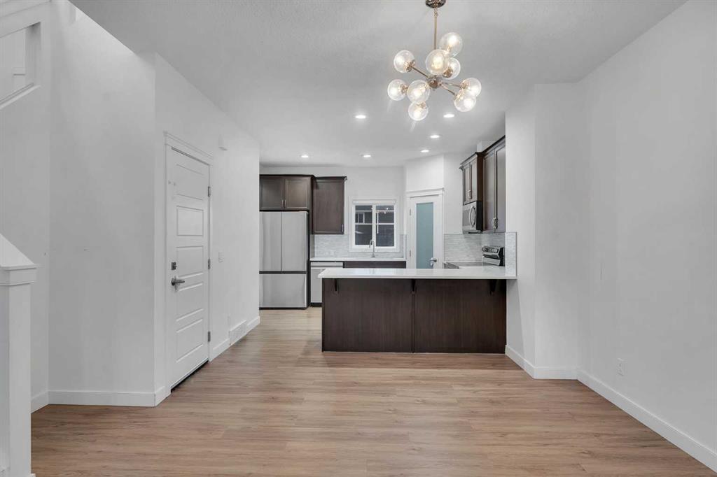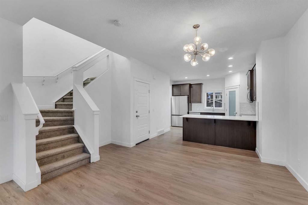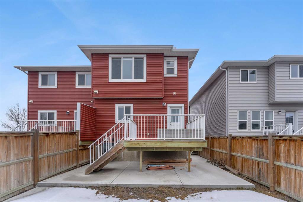 Welcome to this FORMER SHOW HOME semi-detached gem in the vibrant community of Redstone NE, Calgary! Thoughtfully upgraded and meticulously maintained, this stunning home offers a LEGAL BASEMENT SUITE, DOUBLE DETACHED GARAGE, AIR CONDITIONING, DECK, and FULLY FENCED & LANDSCAPED YARD — truly a complete package for homeowners and investors alike. Step inside to a bright and inviting open-concept main floor designed for modern living. The spacious living room flows seamlessly into the dedicated dining area and an upgraded kitchen that will impress any home chef. Featuring sleek quartz countertops, stainless steel appliances, ample cabinetry, and a large kitchen island perfect for entertaining, this space is both functional and stylish. Heading upstairs, you are welcomed by elegant glass railings along the staircase and three well-placed windows that flood the area with natural light. The upper level boasts a beautiful primary bedroom with vaulted ceilings, creating an airy and luxurious retreat. The primary ensuite includes his & her dual sinks and a standing shower. Two additional generously sized bedrooms share a full bathroom, and the strategically placed upper-level laundry adds everyday convenience. A major highlight of this property is the 1-bedroom LEGAL BASEMENT SUITE with a separate side entrance. This self-contained suite offers a bedroom, full bathroom, kitchen, and living space — ideal for rental income or extended family. Outside, enjoy a fully fenced and landscaped backyard complete with a great-sized deck — perfect for summer BBQs and gatherings. The double detached garage provides secure parking and protection from harsh Canadian winters. Located within walking distance to a future school, parks, and plaza, this home offers exceptional accessibility — just 2 minutes to Stoney Trail, 4 minutes to Deerfoot Trail, 10 minutes to Calgary International Airport, and 20 minutes to Downtown Calgary. This property truly checks all the boxes — style, functionality, location, and income potential. Don’t miss your opportunity to own this exceptional home. Book your showing today! Happy Showings!