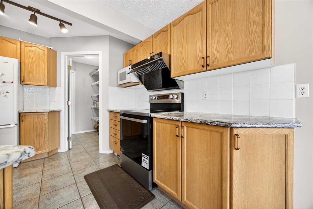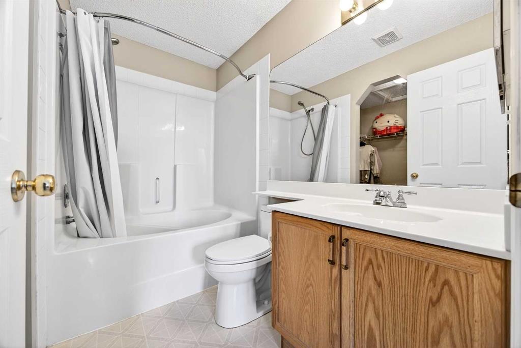 This beautiful home is well-situated on the corner lot across street from a park. Featuring on east-facing deck that wraps around the complete south and west sides of home and terminates at front porch. The floor plan is nice and open, with gorgeous hardwood and tile floors, and there is a small den great for an at-home office. The livingroom is a good size and great for entertaining family and friends. The kitchen has oak cabinets with lots of space for chef in the house, an attached island, an eating area, granite countertops. Upstairs is the large bonus room with corner fireplace, primary bedroom has walk-in closet and a 4-piece ensuite, other two bedrooms share the bathroom. The lower level is developed with a family room, the 4th bedroom and a full bath. The location is excellent, shopping is just around the corner, easy access to Deerfoot& Stoney Trail. Come and have a look, it won't last long. Upgraded recently: WASHER(2023), DRYER(2023), RANGE HOOD(2023), ROOF(2025), ONE SIDE OF SIDING(2025), STOVE(FEB 2026), DISHWASHER(FEB 2026).
