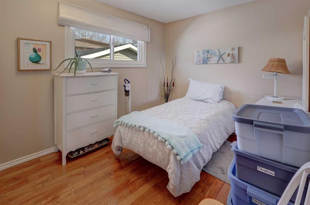Beautifully upgraded and well maintained bungalow in an exceptional location overlooking the ridge and Bow River with mountain views. This well-cared-for home has been upgraded over the years, including most windows, improved insulation, central air conditioning, beautiful hardwood floors and "knock-down" ceiling finish on the main level. The RENOVATED OPEN-CONCEPT KITCHEN features quartz countertops, a large island with an induction cooktop with convection oven, plus an overhead hood fan, and plenty of workspace and storage. All lower cabinets are pull out drawers with soft close feature. The dining room offers built-in cabinets and bookcases with a sliding patio door leading to the backyard. Ceiling fan, and LED pot lights overhead. There is a spacious pantry and an oversized linen cupboard in the hall. The bright living room enjoys west-facing mountain, city and ridge views with a cozy wood-burning fireplace with mantle and hearth. The main level includes three bedrooms, including a primary bedroom with a two-piece ensuite. The developed basement features an (illegal) one-bedroom suite, which could also serve as additional living space for a larger family. Including a decorative vintage wood stove and being sold furnished with household dishes and supplies, this is a “sweet” living space! Laundry and utility are shared, and there is a separate basement entrance. The basement could easily be modified for a second bedroom with windows with legal size egress. The beautifully landscaped yard features landscape stonework, trees, shrubs, and garden beds, along with a patio perfect for enjoying morning coffee in the sun or relaxing in the shade on warm summer days, and a firepit for your family marshmallow roasts on summer evenings. An incredible location with direct access to the Bow River pathway system and stunning views. Walking distance to schools, shops, bus routes, dog parks, community outdoor pool, arena, community garden, community hall, Ogden 50+ club, and minutes to regional shopping plus easy access in all directions with Stoney and Deerfoot Trails. Close to downtown and Foothills Industrial Area. Future Greenline LRT is underway. This property is a gem to be enjoyed for years to come! Welcome Home! Please come and see and bring an offer!