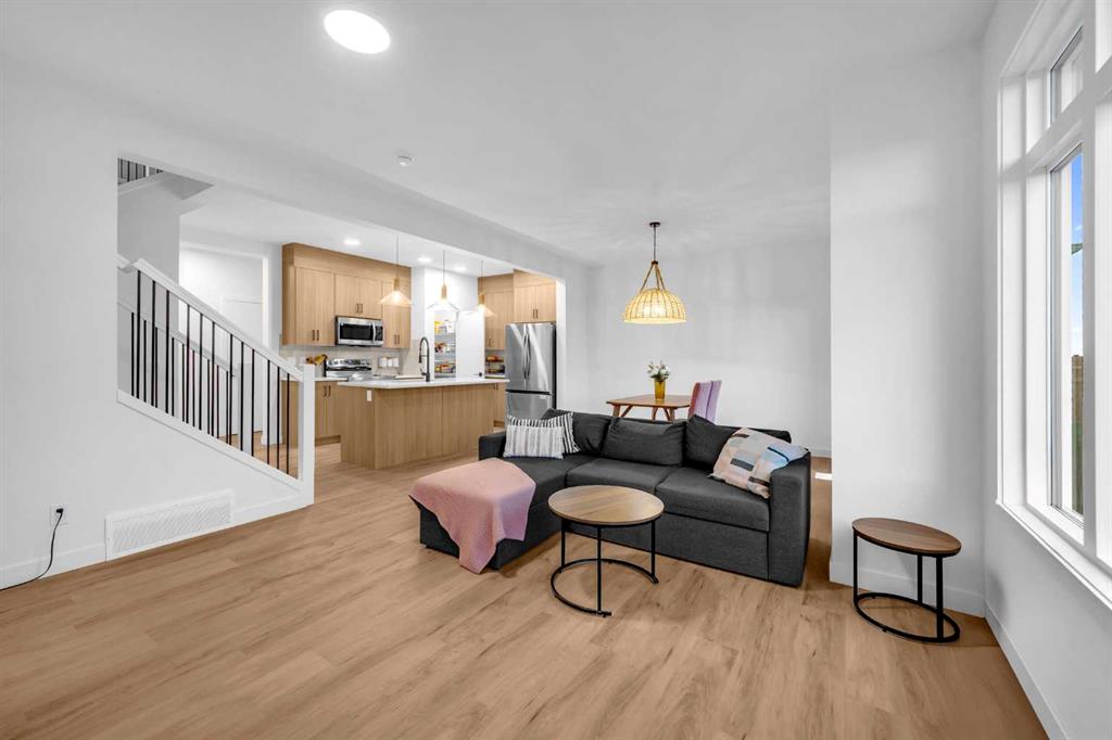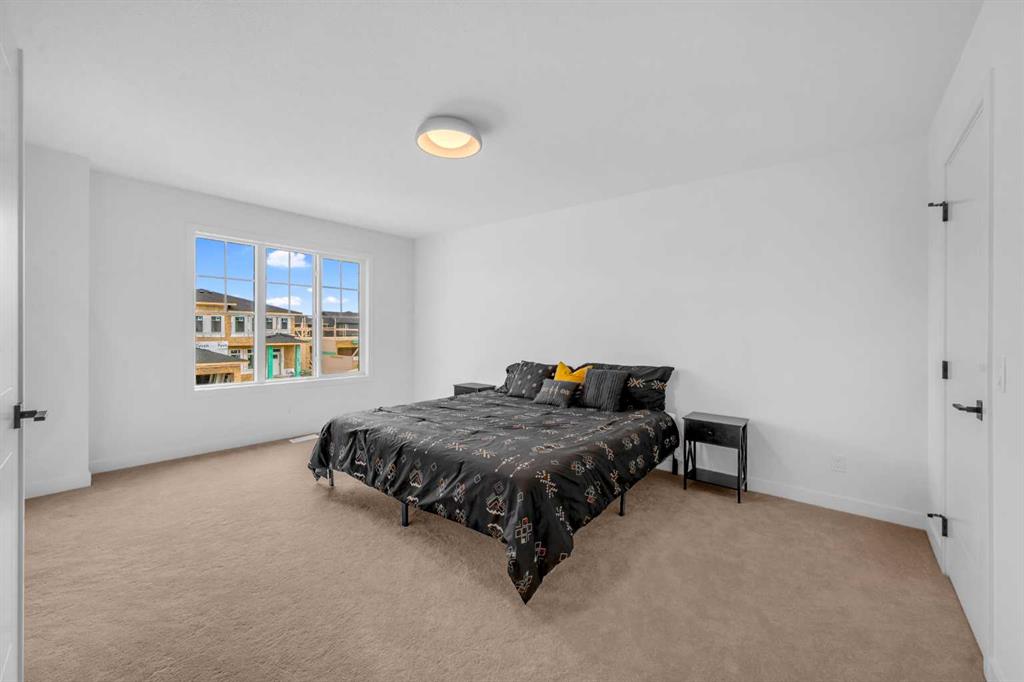 SEPARATE ENTRANCE | DOUBLE ATTACHED GARAGE | BONUS ROOM | 1,743 SQ FT | 3 BED + 2.5 BATH Welcome to this stunning brand new home in Sora at Hotchkiss, a community celebrated for its natural beauty and welcoming atmosphere. Highlights & Upgrades: quartz countertops throughout, 42” upper kitchen cabinets, stainless steel appliances, walk-through pantry, open floor plan, and a private separate entrance to the basement. Inside, the spacious chef’s kitchen is the heart of the home, featuring a large island with seating, quartz counters, ceiling-height cabinetry, and a convenient pantry that connects directly to the garage. The bright dining area and inviting living space are enhanced by high ceilings and expansive rear windows, creating a warm and open atmosphere. Upstairs offers three generously sized bedrooms, including a luxurious primary retreat with a walk-in closet and spa-inspired ensuite. A central bonus room, full bath, and laundry complete the upper level—designed for both comfort and functionality. Additional features include a separate entrance to the basement (ideal for future development) and a front attached double garage—perfect for Calgary winters. Situated just outside the ring road, east of Stoney Trail, this location offers quick access to major highways, shopping, and all the amenities of southeast Calgary. This home blends thoughtful design, modern finishes, and convenience—making it an excellent choice for your next move.