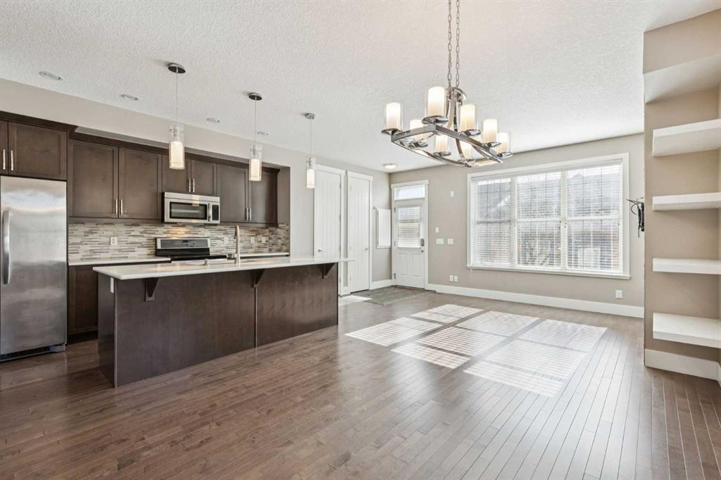 Defined by striking two-story ceilings and expansive windows, this beautifully appointed executive townhome in the vibrant, amenity-rich community of Quarry Park offers over 2,400 sq ft of thoughtfully designed living space. As an end-unit, the home benefits from additional windows that bring in natural light and enhance the sense of openness throughout the main living areas. The front entry opens to a dramatic formal living room where the open-to-above design creates an immediate sense of height and light. Large windows fill the space with natural brightness, setting the tone for the home’s airy and welcoming feel. Further into the home, the layout unfolds into the open-concept kitchen, dining area, and family room. The kitchen sits at the center of it all, finished with quartz countertops, stainless steel appliances, extensive cabinetry, and an oversized central island offering both prep space and casual seating. The island naturally becomes the heart of the home, perfect for morning coffee, casual meals, or conversation while preparing dinner. The dining area sits just beyond, providing an inviting setting for everyday meals or entertaining. The adjoining family room is anchored by a gas fireplace with built-in shelving, creating a warm gathering space for relaxed evenings at home. At the back of the home, convenient access leads to the yard and double detached garage. Upstairs, a spacious bonus room at the top of the stairs offers a flexible second living area ideal for a media space, reading nook, or home office. The primary bedroom is generously sized and designed as a quiet retreat, complete with an ensuite featuring dual vanities, a soaker tub, and separate shower. The second bedroom features a distinctive architectural detail with French doors opening to a Juliet balcony, allowing fresh air and natural light to flow into the room. Upper-level laundry adds everyday convenience just steps from the bedrooms. The fully developed basement adds valuable living space with a third bedroom, 4pc bath and a large recreation area that easily adapts to your needs, whether as a media room, home gym, guest retreat, or additional family space. Outside, the yard offers functional outdoor space with room for seating and easy access to the double detached garage. Buyer is advised that the property has recently undergone remedial work to address building envelope and balcony issues. At the time of listing, some interior and exterior repairs (including drywall, carpet, and exterior stonework) may still be in progress or visible. Quarry Park offers walkable amenities, scenic river pathways, parks, restaurants, cafés, and shops minutes from home. The Remington YMCA is also within walking distance, offering fitness and recreation. With quick access to major roadways and downtown Calgary, the community blends urban convenience with outdoor living. With its thoughtful design, generous living space, and exceptional Quarry Park location, this home offers a refined place to call home.