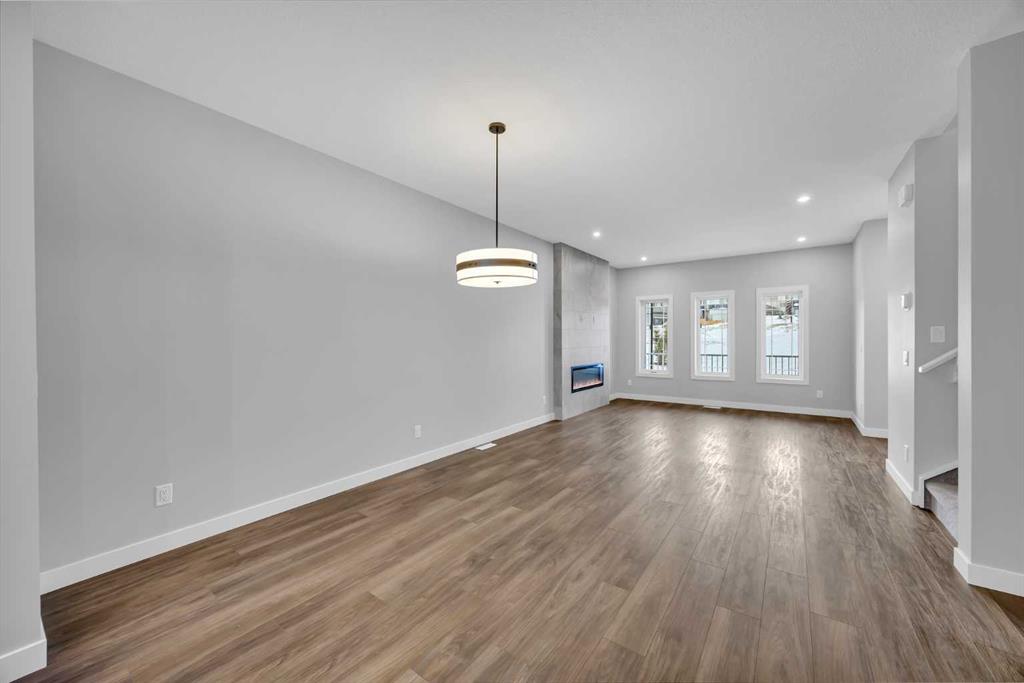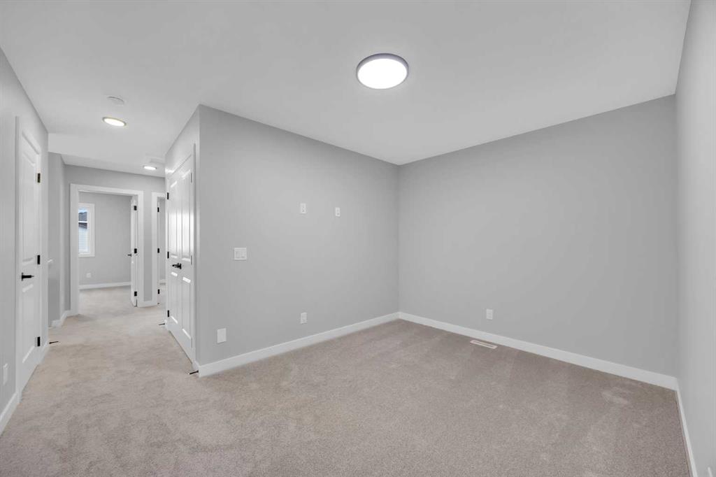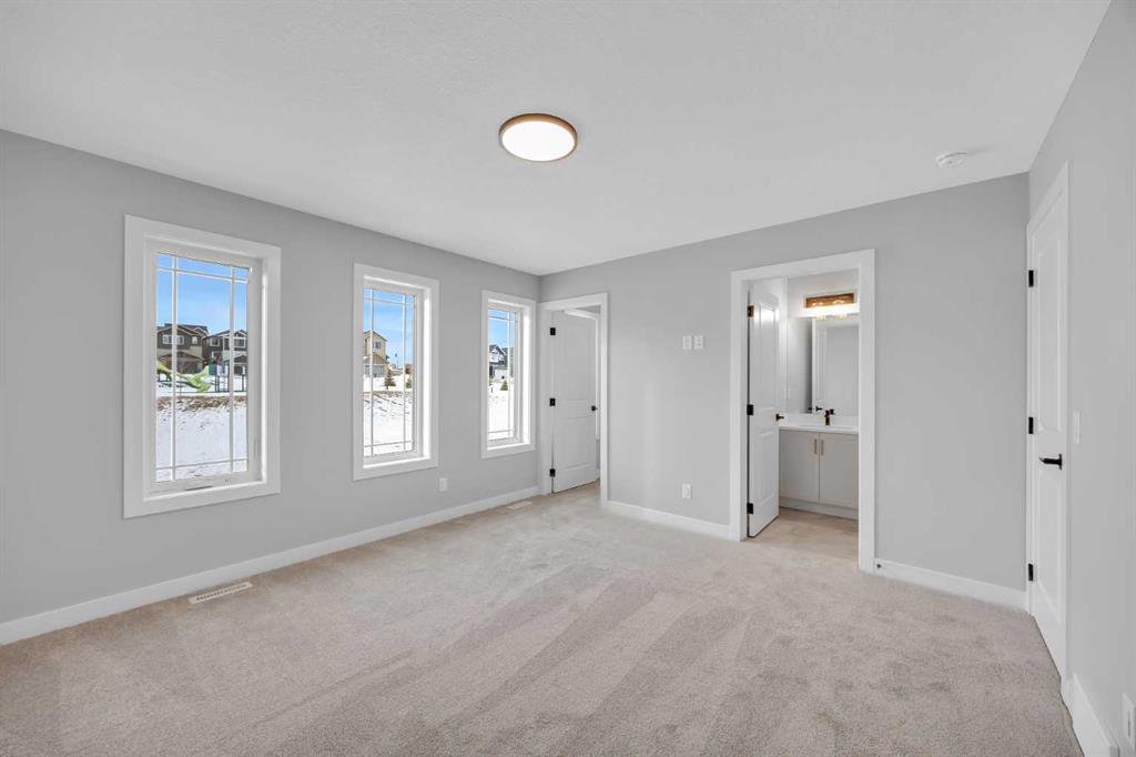 Welcome to the Newport III by Broadview Homes, a brand new 1,680 sq ft home in Vermilion Hill, uniquely positioned fronting directly onto park space. This rare location offers immediate access to green space in one of Southwest Calgary’s most nature focused new communities. Featuring 3 bedrooms, 2.5 bathrooms, a central upper loft, a separate side entrance, detached double garage, rear deck, and an oversized concrete patio, this home delivers thoughtful design and everyday functionality in an exceptional setting. The main floor is designed around a bright open concept layout that supports both daily living and entertaining. At the rear of the home, the kitchen features a central island and a spacious pantry, providing excellent storage and workspace while maintaining clear sightlines to the dining area and great room. The great room is anchored by an electric fireplace with floor to ceiling tile detail, creating a striking focal point within the living space. Large windows allow natural light to fill the home while the rear layout connects seamlessly to the outdoor deck and patio area. Upstairs, the primary suite offers a walk in closet and a private ensuite with dual vanities and a fully tiled walk in shower. Two additional bedrooms, a full 4 piece bathroom, and a centrally located loft provide flexible living space that can function as a second lounge, workspace, or family room. The basement includes rough ins for future development and benefits from the separate side entrance, offering flexibility to expand the living space over time. Located in Vermilion Hill, residents enjoy convenient access to nearby pathways, parks, and natural areas including Fish Creek Park, the Glenmore Reservoir, and Weaselhead Flats. With quick access to the Tsuut’ina Trail and the growing southwest amenities corridor, Vermilion Hill offers a unique balance of outdoor lifestyle and city convenience.