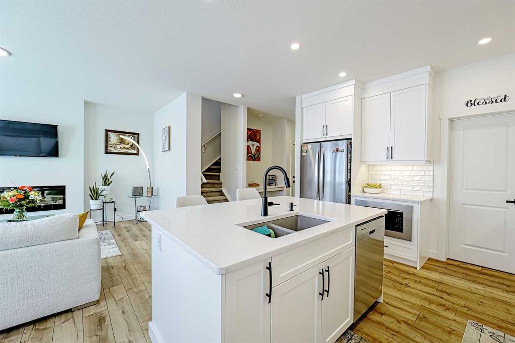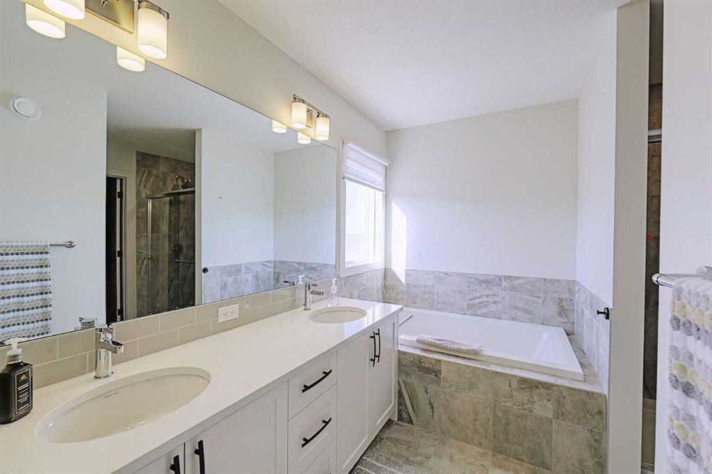 Two bedroom legal basement suite ideal for additional rental income or a mortgage helper! Situated in the highly desirable community of Belmont, this beautifully upgraded home offers nearly 2,900 square feet of refined living space designed for both comfort and style. The bright open concept layout is filled with natural light from large windows and features five spacious bedrooms, four well appointed bathrooms, and a double attached garage, providing plenty of room for growing families. The elegant chef inspired kitchen is the centerpiece of the home, showcasing expansive quartz countertops, timeless white cabinetry, a stylish chimney style hood fan, a spacious pantry, and stainless steel appliances. Durable luxury vinyl plank flooring flows throughout the main living areas while a modern electric fireplace creates a warm and inviting atmosphere. The premium backyard is perfect for relaxing or entertaining and features a deck, a newly installed fence, and a gas line ready for your BBQ. The insulated garage is also equipped with an electric vehicle charger for added convenience. The fully legal basement suite offers a private side entrance along with two comfortable bedrooms, a full bathroom, and separate laundry, making it an excellent opportunity for extended family living or additional rental income. The front yard is beautifully finished with decorative stone landscaping, creating an attractive low maintenance exterior with no lawn to maintain. Unlike many newly built homes, this property already includes completed fencing and a striking modern exterior that is fully finished and ready to enjoy. Protected by both the builder’s warranty and the Alberta New Home Warranty, this home offers peace of mind for years to come. Ideally located just minutes from shopping, public transit, the Somerset C Train station, restaurants, and everyday amenities.