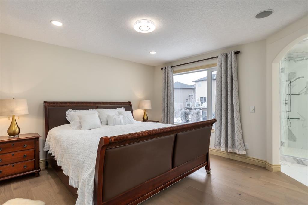 *OPEN HOUSE SAT MARCH 28 11:00-1:00* HUGE PRICE ADJUSTMENT! ONE OF A KIND PROPERTY! Endless feature and updates, so let's get straight to it... Former Landmark Showhome that has been meticulously maintained by the ORIGINAL OWNERS. Attractive curb appeal with stucco siding and superb location, situated DIRECTLY ACROSS THE STREET FROM THE LAKE! You will be immediately impressed upon entering by the grand entrance with vaulted ceiling. The main level features a formal dining room with heated tile flooring, renovated 2-pc washroom, custom staircase and spacious laundry room. The kitchen is set up perfectly for cooking and entertaining, with ample cabinet space, GRANITE COUNTERTOPS, GAS RANGE and corner pantry. Nearly every appliance has been replaced within the last 3 years! Head upstairs to find a massive bonus room with built in desk and 4 spacious bedrooms. Primary bedroom boasts a newly RENOVATED 5 pc ensuite with dual vanities, luxurious soaker tub and beautiful walk in shower. Another updated bathroom with heated floors completes the upper level. The basement is the perfect place to hang, featuring a wet bar, electric fireplace, large family room, 5th bedroom and another renovated washroom. Sunny WEST FACING BACKYARD is equipped with fruit trees, fragrant lilac bushes and a composite deck with retractable awning. Stay comfortable all year with CENTRAL AC and GAS FIREPLACE. HEATED double car garage with an extended driveway that fits 3 vehicles! Please note that there is NO CARPET throughout the home. Upgraded to hardwood/engineered hardwood on every level! Other bonuses include: CUSTOM MILLWORK, ZEBRA BLINDS, NEW WATER TANK, water softener & distiller, ceiling speakers and central vacuum. The only thing better than the home itself, is perhaps the location. Walking distance to the lake, boat launch, shopping, 2 schools and dog park. You are mere steps from Chestermere Lake, where you can enjoy boating, swimming, skating, fishing and fireworks. You will love living here! Check out the 3D tour!