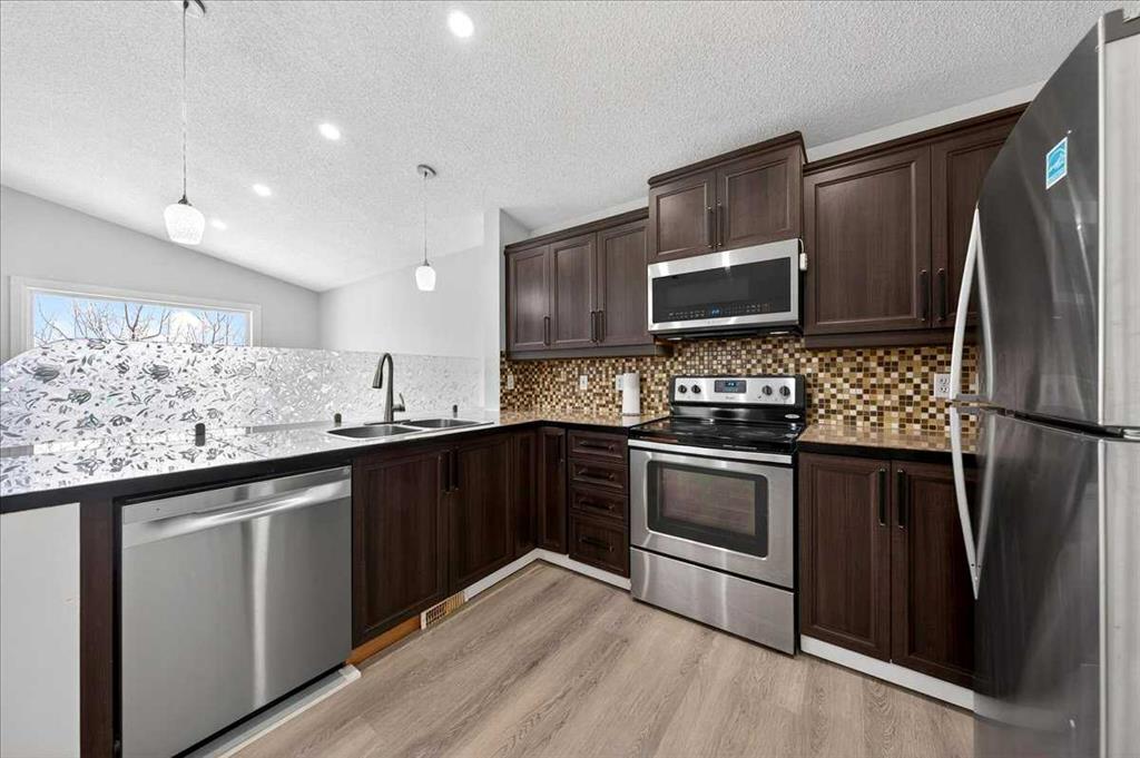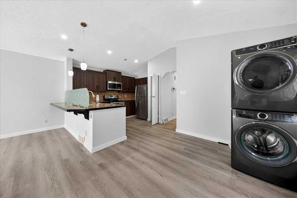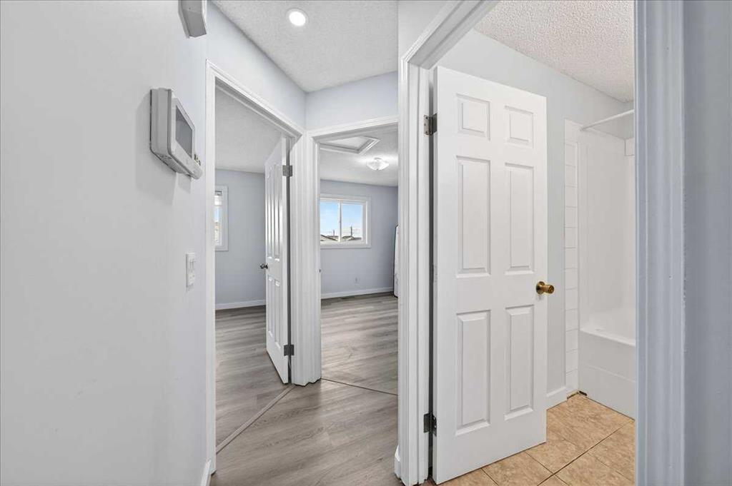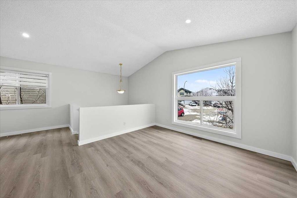 2-minute walk to Saddletowne C-Train Station and shopping. Beautifully fully renovated bi-level home on a large corner lot in a quiet cul-de-sac, directly across from the Genesis Centre, public library, and high school. Main floor with vaulted ceilings and large upgraded energy efficient windows replaced in 2023. Features a spacious living and dining area and fresh paint throughout with new flooring. Each level includes a full bathroom. Separate laundry for upper floor and basement. The basement features an illegal suite with a separate walk-up entrance and is currently rented, offering excellent mortgage helper or investment potential. Enjoy a private fenced backyard, double car detached garage. Ideal for families, first-time buyers, or investors, with C-Train, schools, recreation, and shopping all within walking distance. Book Your showing today!!