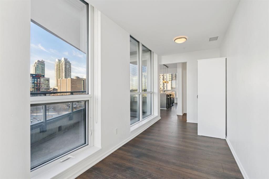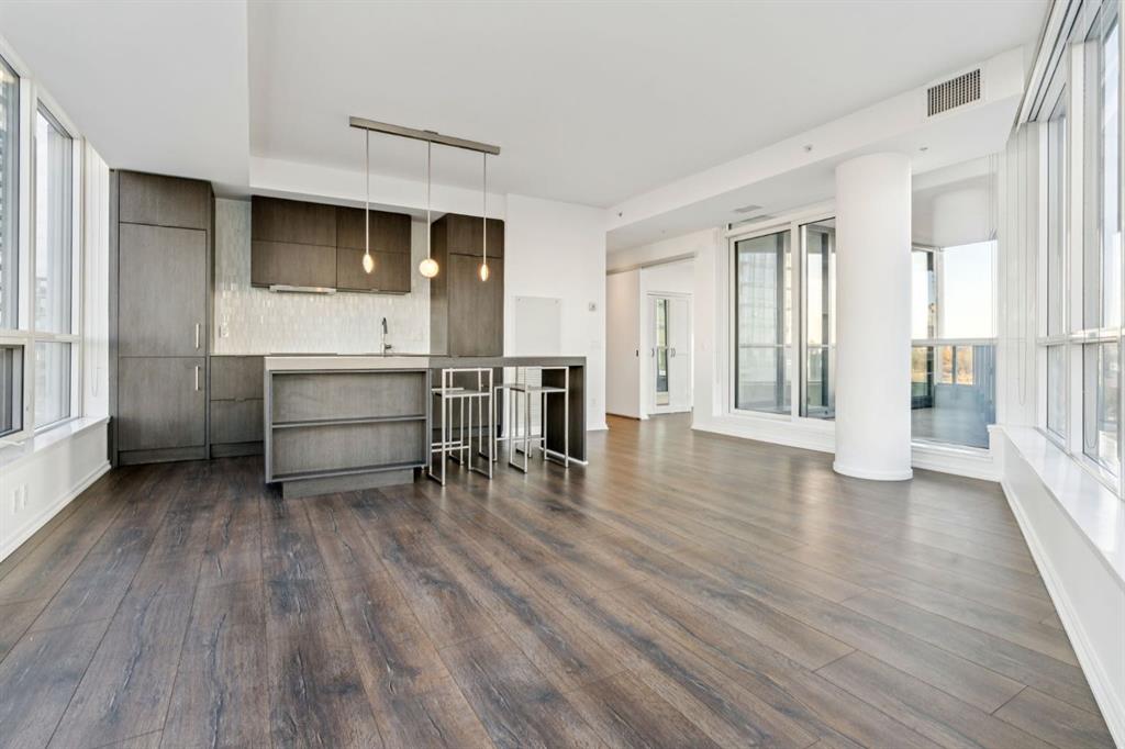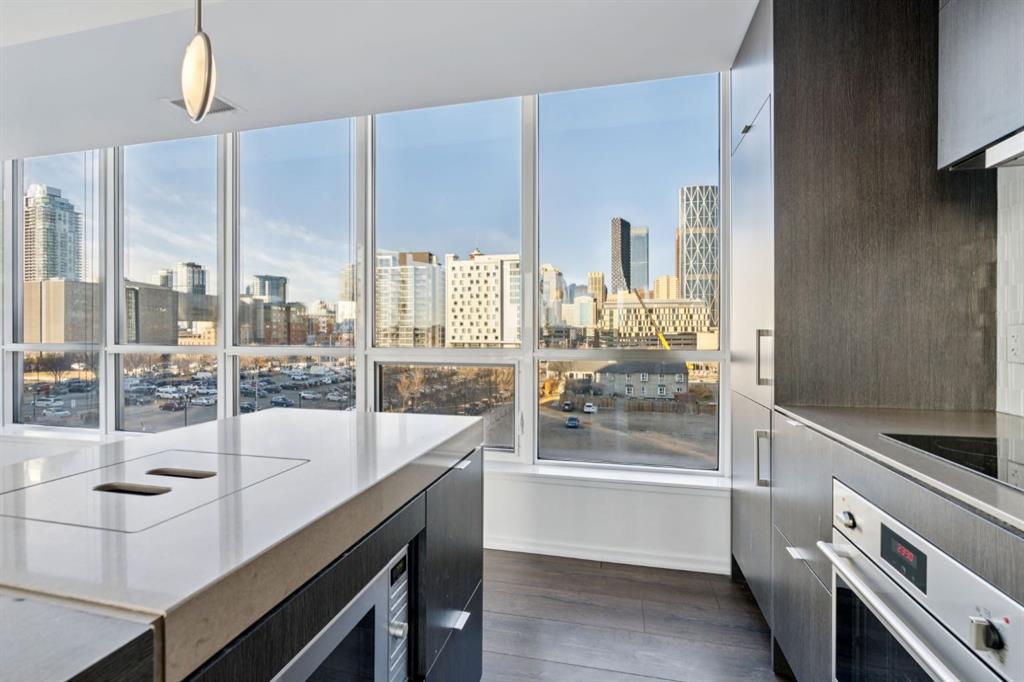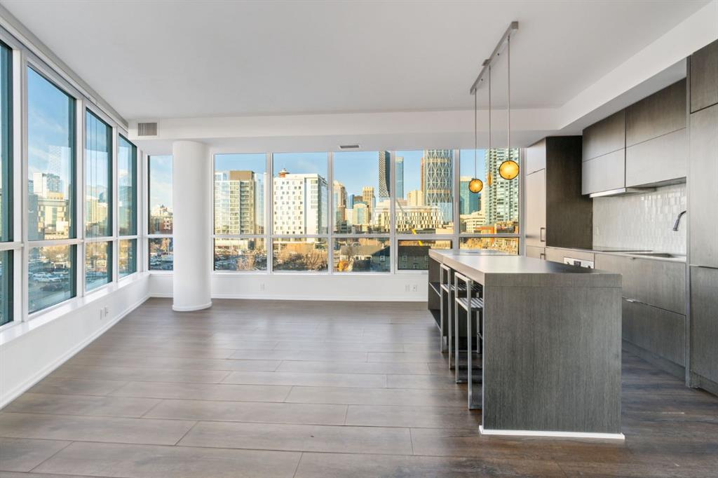 Welcome to Verve in East Village, one of Calgary’s most sought-after addresses combining modern design, urban energy, and incredible views. This 2-bedroom, 1-bath home offers 180° panoramic views of downtown and the Confluence Historic Site, where the Bow and Elbow Rivers meet. Floor-to-ceiling windows fill the space with natural light, and the open-concept layout connects the kitchen, dining, and living areas seamlessly, making it perfect for both relaxing and entertaining. The modern kitchen features sleek cabinetry, quartz countertops, and built-in appliances, while the home also includes central A/C, in-suite laundry, and a private balcony to take in sunrise and sunset views over the city. Adding even more value, this rare unit comes with 5 titled underground parking stalls ALL RENTED INSTANT CASH FLOW. Verve offers premium amenities including a rooftop lounge and terrace, fitness center, guest suites, and concierge service, all just steps from the RiverWalk, Central Library, cafes, and the CTrain. It’s downtown living with a riverside vibe — and a truly unique opportunity to own one of the most distinctive homes in the building. All stalls are rented out and returning big cashflow returns, property also includes a storage locker.