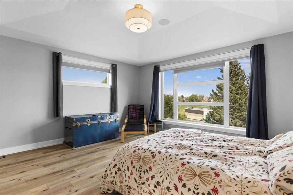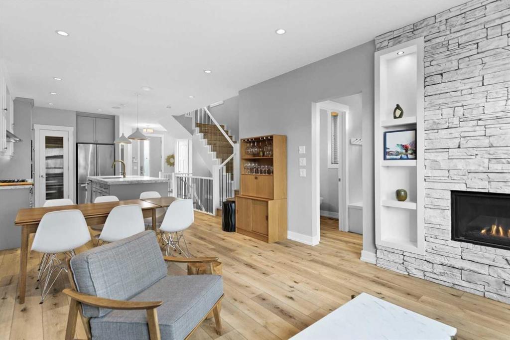 Rarely does a home in an established inner-city neighbourhood deliver this level of space, finish, and thoughtful design. Located in the sought-after community of Banff Trail, this stunning 3-storey semi-detached offers 3,380 square feet of meticulously maintained living space across four levels and designed to impress from the moment you arrive. Exceptional curb appeal and quiet sophistication set the stage for everything waiting inside. The main floor sets the tone immediately. Wide-plank luxury vinyl plank flooring flows through a bright, open layout where natural light pours through oversized windows. A dedicated front office with custom built-ins and tall windows is perfect for remote work, quiet reading, or creative pursuits. The chef's kitchen is the true heart of the home, featuring an expansive quartz island, professional 6-burner gas range, built-in wall oven, premium stainless appliance package, and a generous walk-in pantry ready to elevate every meal from busy weekday mornings to elegant weekend dinner parties. The kitchen flows seamlessly into the family room, where a stone-surround gas fireplace creates a warm and inviting backdrop for relaxed evenings and easy casual gatherings. The second level offers two generously sized bedrooms, each with a walk-in closet and private ensuite. One features a serene 4-piece bath, while the other includes a beautifully appointed 5-piece ensuite with dual vanities and a private water closet. Laundry is conveniently located on this level & sits beside the bedroom with the 5-piece ensuite for added everyday ease. A central flex room completes the floor & works perfectly as a media space, playroom, or cozy reading nook for the whole family. Ascend to the third-floor primary loft, the true showpiece of the home. This expansive retreat features a spacious bedroom with its own lounge area, and a boutique-style walk-in closet with custom built-ins. The luxurious ensuite impresses with heated floors, dual vanities, a steam shower, and a deep soaker tub. Begin your mornings bathed in natural sunlight and end your evenings in total calm, peacefully elevated above the neighbourhood. The fully finished basement is thoughtfully designed for entertaining and everyday flexibility. A large recreation room anchored by a sleek wet bar sets the stage for game nights and lively gatherings, while an additional bedroom with walk-in closet and a full bathroom makes this level ideal for guests or older teens who need their own space and privacy. Throughout the home, built-in speakers elevate every occasion and central air conditioning ensures year-round comfort. Outside, a private backyard patio is perfect for summer barbecues and unwinding after a long day, complemented by low-maintenance landscaping that offers a peaceful green escape without extra weekend work. A double detached garage at the rear provides secure parking and valuable additional storage for all seasons. Just steps to LRT, top-rated schools, Crowchild Trail, and 16 Avenue.