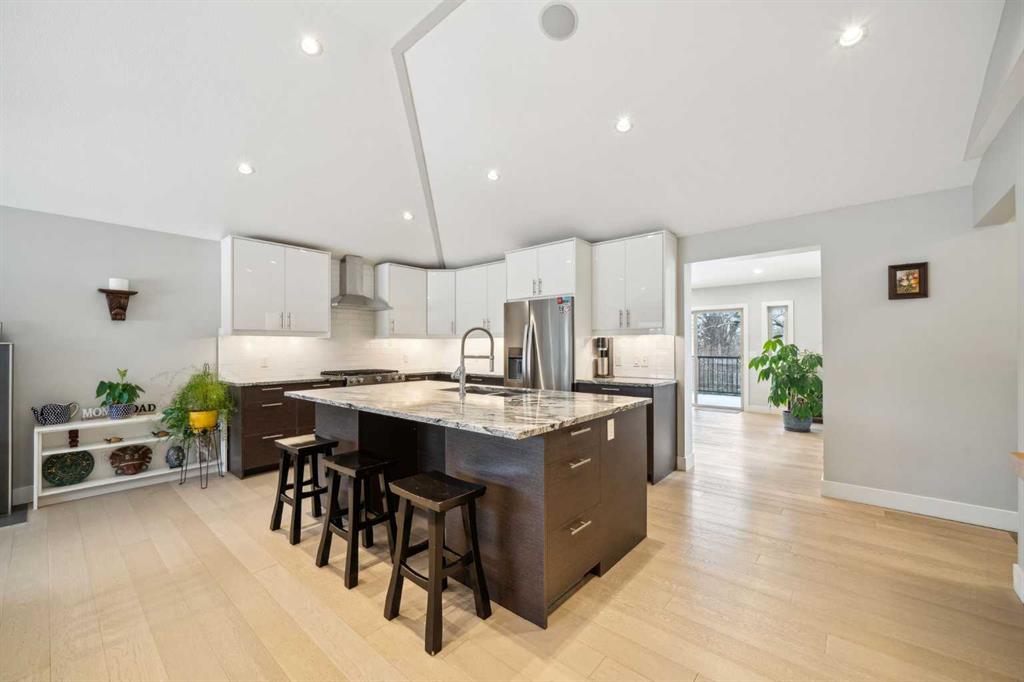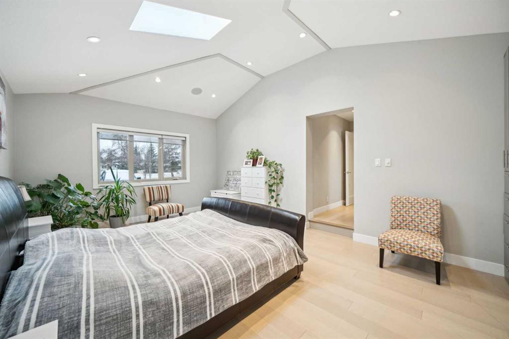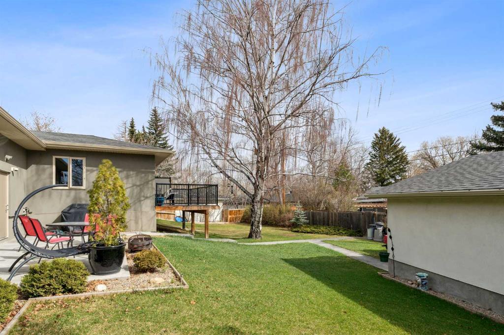 OPPORTUNITY KNOCKS in a fabulous location!! Stunning Meadowlark Park home directly across from the Park!! Welcome to this beautifully renovated home perfectly positioned on one of the community’s largest pie lots. Offering a functional designed layout this 3+1 bedroom offers 2,660 SF of total living space with a blend of modern upgrades and timeless charm. Completely renovated in 2015, the home was further enhanced with a back extension and large deck (2019) and a custom front entry with a closet extension (2020). Inside, you are welcomed to a main level that is warm and inviting. The bright, open kitchen boasts stone countertops, stainless steel appliances, and a built-in breakfast nook all with seamless transition to the dining area that impresses with soaring 10’8” ceilings and wood burning fireplace. Deeper in to the home is the cozy family room perfect for hanging out with easy access to the large deck. Follow the hardwood throughout the main floor and you will find the primary suite featuring an 11’ ceiling, 5-piece ensuite with a steam shower, and large built-in closet. 2 additional bedrooms and 4 pc bathroom complete this floor. Downstairs, you’ll find a 4th bedroom, bathroom and large Rec-Room with another wood burning fireplace. A flex room is perfect for an office, home theatre or added storage. Do not overlook the central AC for those hot summer days, huge yard with lane access and an oversized TRIPLE Garage. With an unbeatable inner-city location, rare lot size, and upgrades throughout, this is a unique opportunity in Meadowlark Park. Book your showing today!