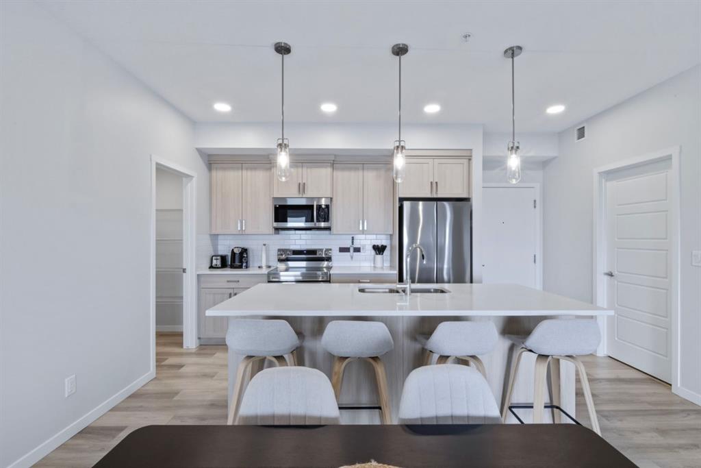 FULLY FURNISHED! Welcome to the building of Seton Summit in the heart of a thriving southeast community. Located minutes from all the amenities you could need, transit right out the front door and minutes from major freeways to get downtown or out of the city! This Unit is located on the top floor and comes fully furnished with what you see in the photos. The unit has never been permanently lived in since purchased, and all of the furniture is like a brand new. The unit is equipped a two bedrooms with the master having a walk-in closet and four piece en suite. A great full kitchen with island and walk-in pantry. The unit also has a second four piece bathroom just outside the second bedroom and is also equipped with its own laundry room. Outside on the east facing balcony you’ll find patio furniture, a BBQ and also the unit for the air-conditioning in the home. This Condo also has a titled parking spot in the underground heated parkade and also has an assigned storage unit. This unit has been extremely cared for and is like a brand new. Hope you enjoy.