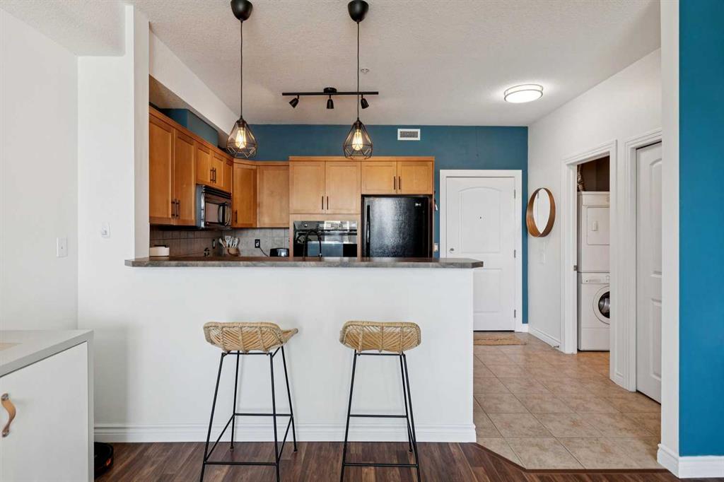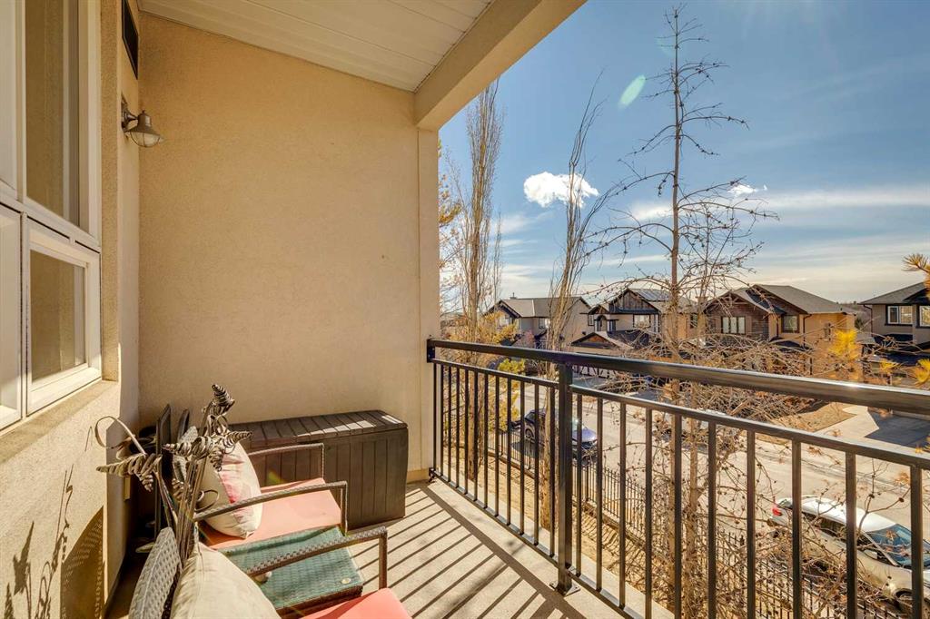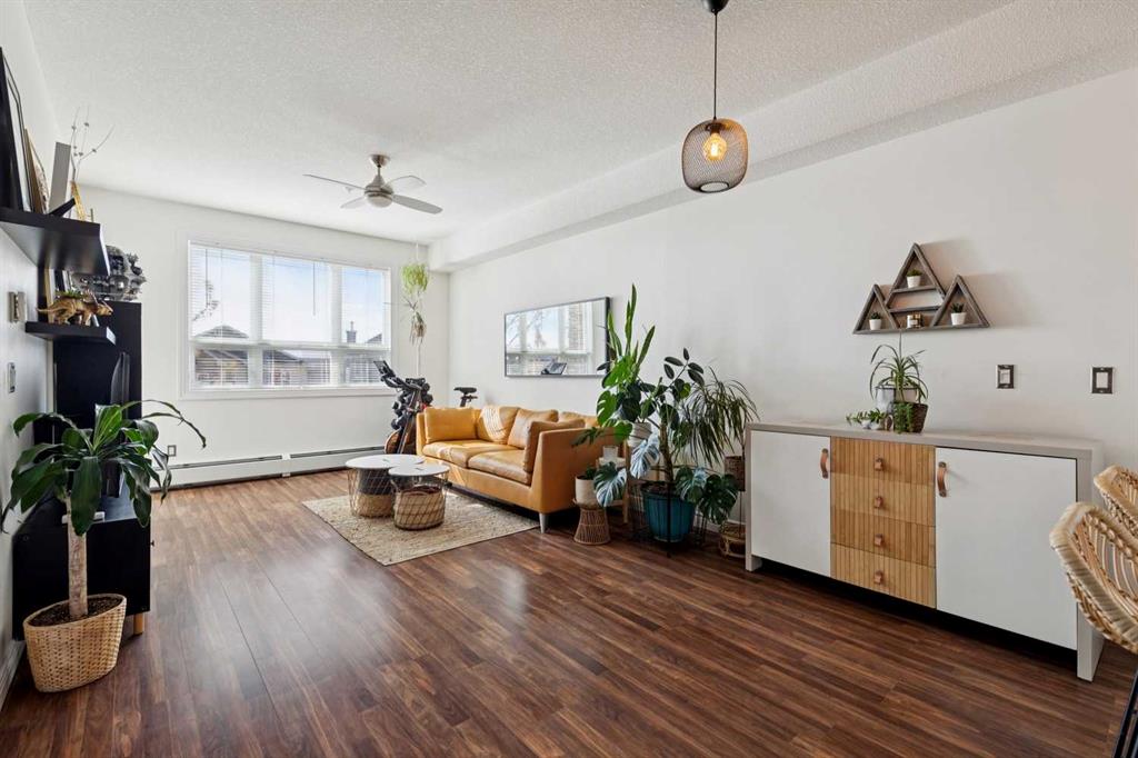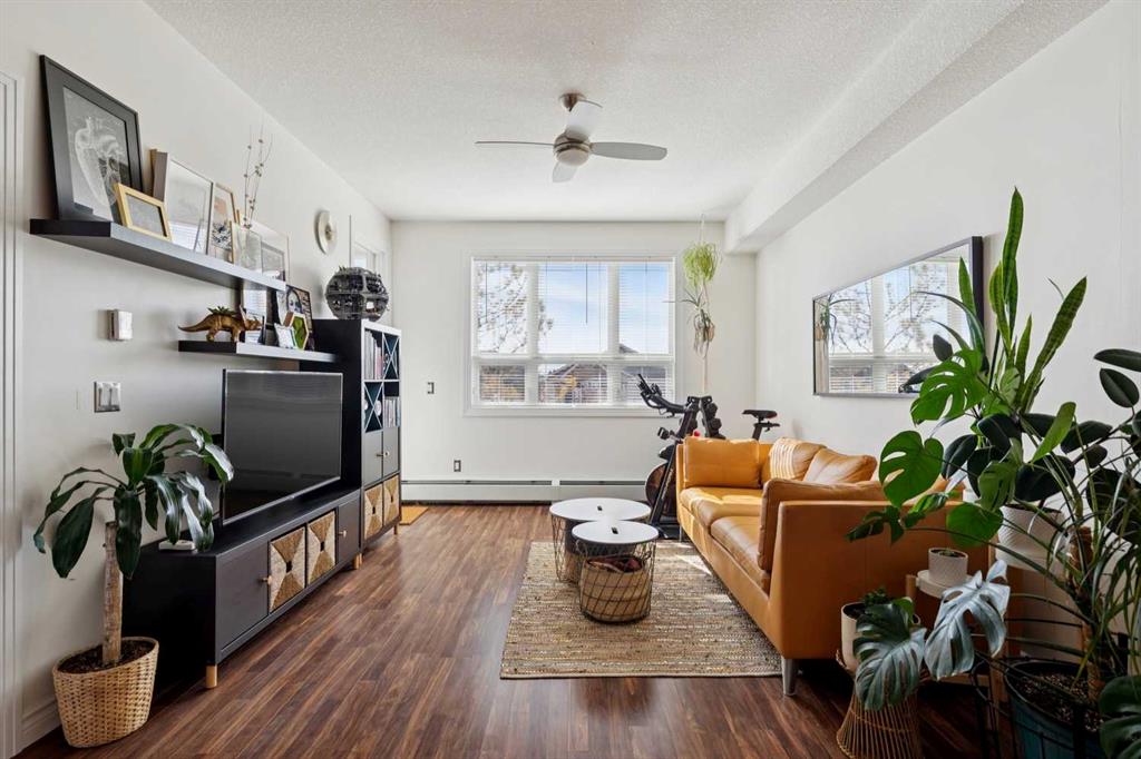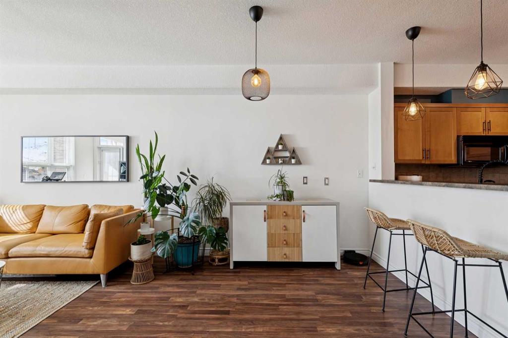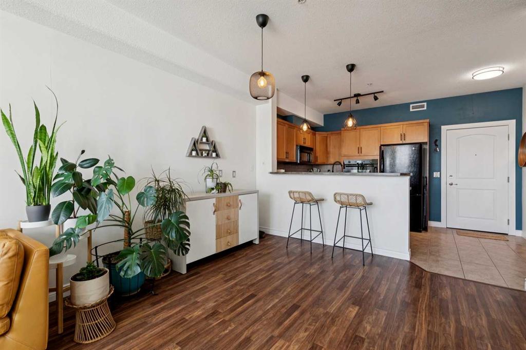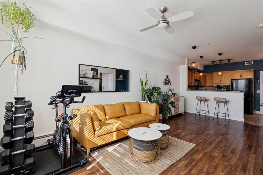 Welcome to effortless condo living in the highly sought-after community of Springbank Hill. This bright and beautifully maintained one-bedroom, one-bathroom home features a thoughtfully designed open-concept layout that blends comfort and functionality. The kitchen offers ample cabinetry, generous counter space, and a raised breakfast bar—perfect for casual dining or entertaining. It flows seamlessly into the dining and living areas, where large windows fill the space with natural light, creating a warm and inviting atmosphere. Step outside to your private southwest-facing balcony—an ideal space to relax and enjoy sunny afternoons. The spacious primary bedroom includes a walk-through closet with direct access to a well-appointed 4-piece bathroom, offering both privacy and convenience. In-suite laundry adds to the ease of everyday living. Additional highlights include titled underground parking and titled storage. Residents enjoy a well-managed building with a fitness centre, secure entry, and visitor parking, all within a beautifully landscaped complex. Ideally located just minutes from Aspen Landing Shopping Centre and Westhills Towne Centre, with easy access to parks, pathways, transit, 17th Avenue, and Stoney Trail. The mountains are just a short drive away, making weekend getaways effortless. Perfect for first-time buyers, downsizers, or investors—this is an exceptional opportunity to own in one of Calgary’s most desirable communities.