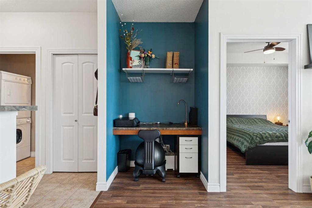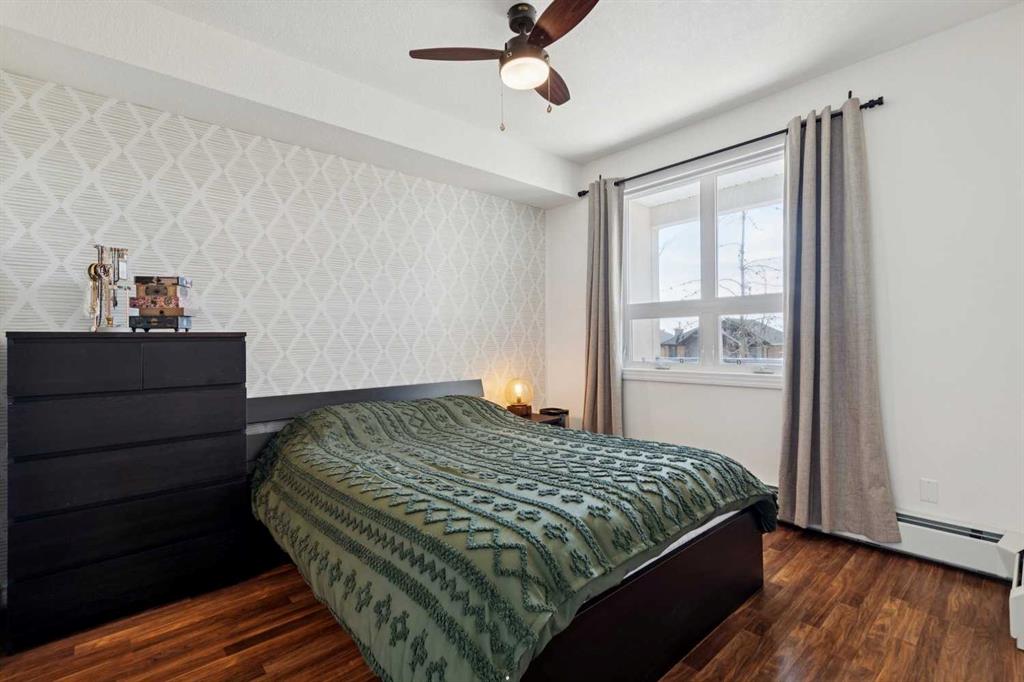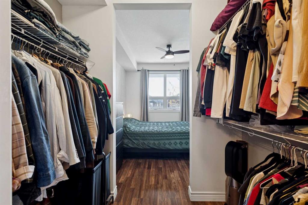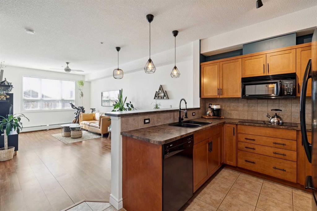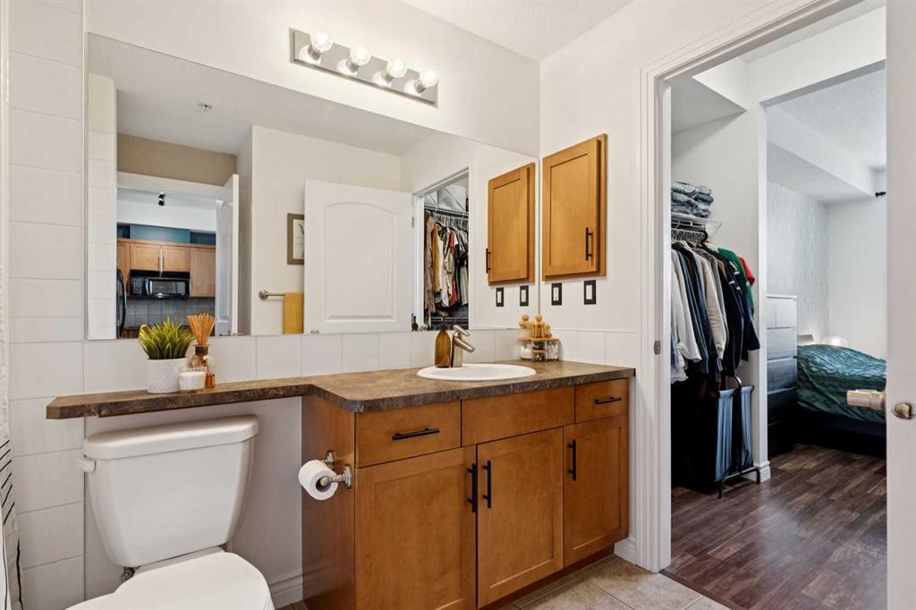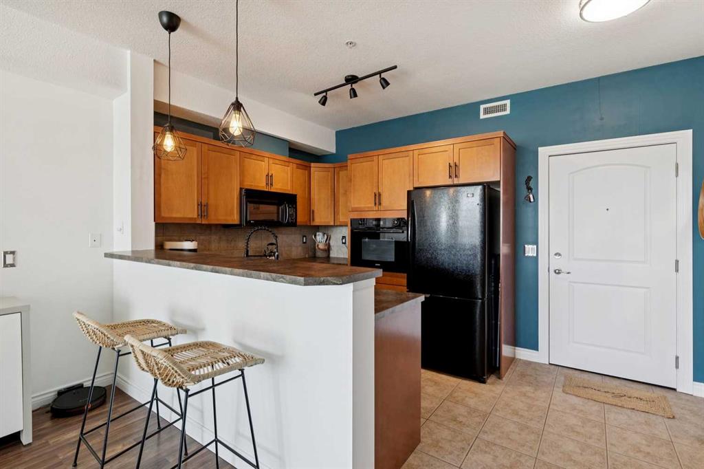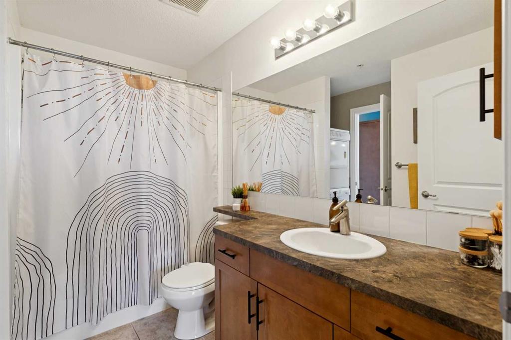 Welcome to effortless condo living in the highly sought-after community of Springbank Hill. This bright and beautifully maintained one-bedroom, one-bathroom home features a thoughtfully designed open-concept layout that blends comfort and functionality. The kitchen offers ample cabinetry, generous counter space, and a raised breakfast bar—perfect for casual dining or entertaining. It flows seamlessly into the dining and living areas, where large windows fill the space with natural light, creating a warm and inviting atmosphere. Step outside to your private southwest-facing balcony—an ideal space to relax and enjoy sunny afternoons. The spacious primary bedroom includes a walk-through closet with direct access to a well-appointed 4-piece bathroom, offering both privacy and convenience. In-suite laundry adds to the ease of everyday living. Additional highlights include titled underground parking and titled storage. Residents enjoy a well-managed building with a fitness centre, secure entry, and visitor parking, all within a beautifully landscaped complex. Ideally located just minutes from Aspen Landing Shopping Centre and Westhills Towne Centre, with easy access to parks, pathways, transit, 17th Avenue, and Stoney Trail. The mountains are just a short drive away, making weekend getaways effortless. Perfect for first-time buyers, downsizers, or investors—this is an exceptional opportunity to own in one of Calgary’s most desirable communities.