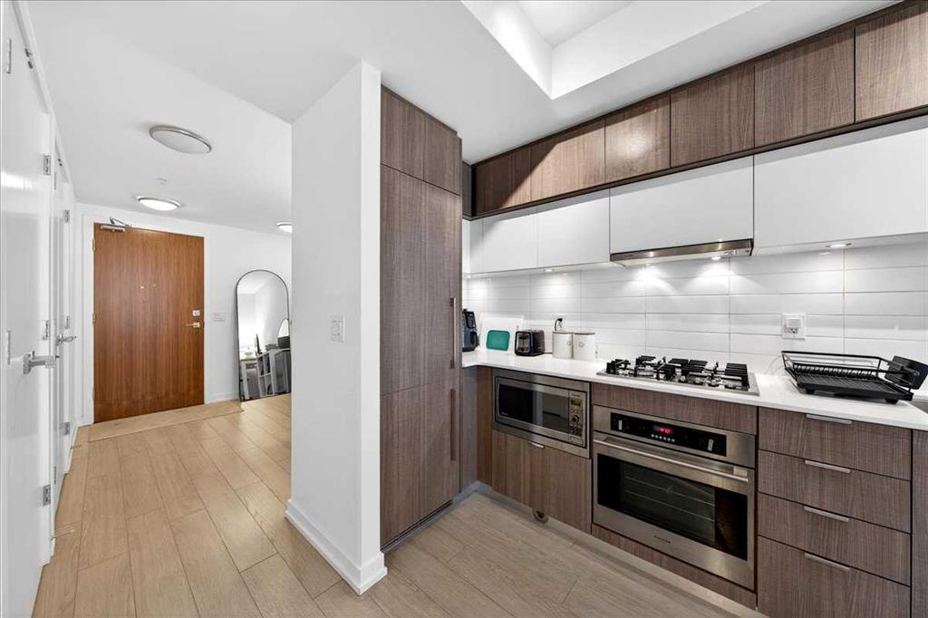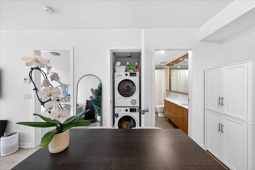 Experience refined urban living in this stylish riverfront residence offering approximately 601 sqft of thoughtfully designed living space in one of Calgary’s most desirable waterfront communities. This elegant 1-bedroom, 1-bathroom condo features a bright open-concept layout where the contemporary kitchen flows seamlessly into the inviting living area, creating an ideal space for both relaxing and entertaining. The spacious bedroom provides a comfortable retreat, while the well-appointed 4-piece bathroom and convenient in-suite laundry add everyday practicality. Step outside to your private balcony to enjoy fresh air and the vibrant urban surroundings. This exceptional home also includes underground heated parking and assigned storage, offering comfort and convenience year-round. Residents enjoy premium building amenities including a fitness center, hot tub, and party room, all while being just steps from scenic river pathways, parks, restaurants, cafes, and downtown amenities—perfectly blending luxury, lifestyle, and location.