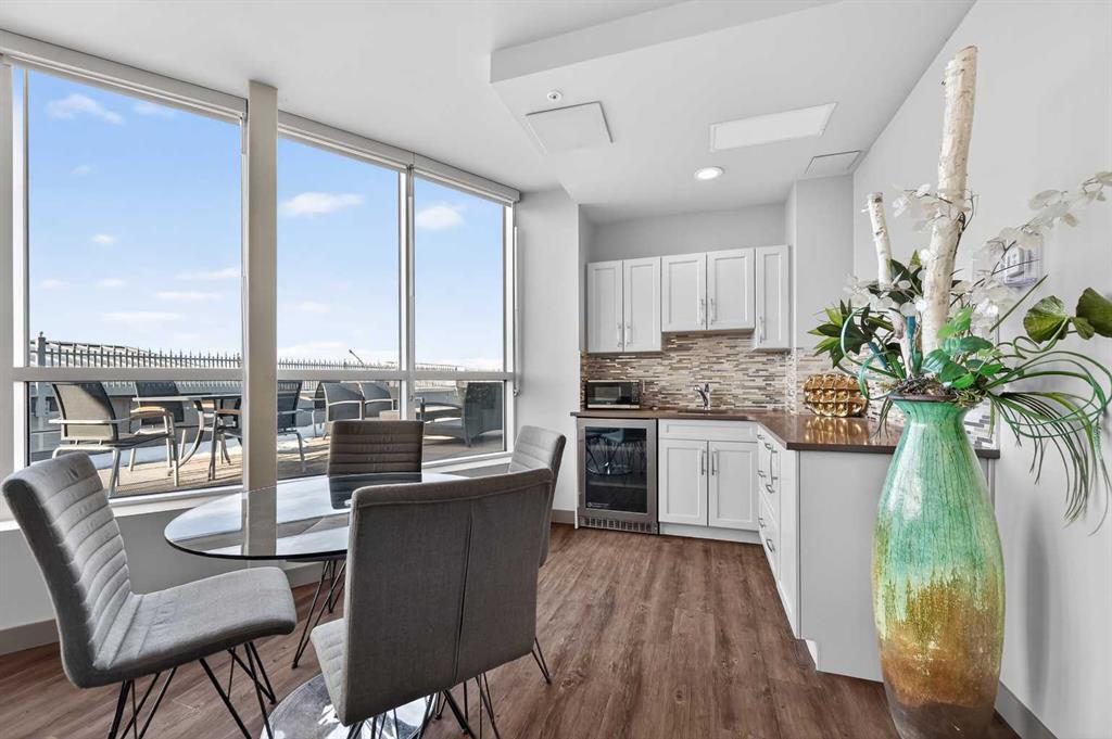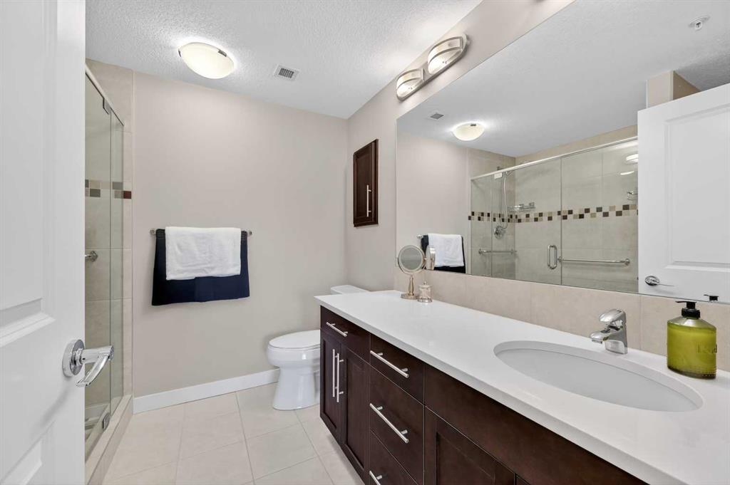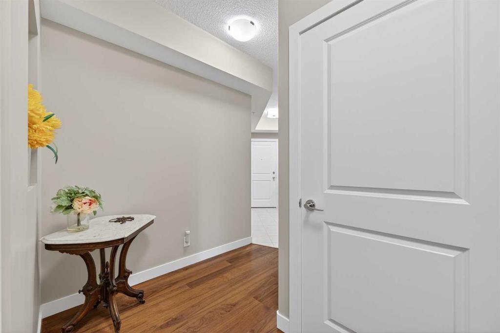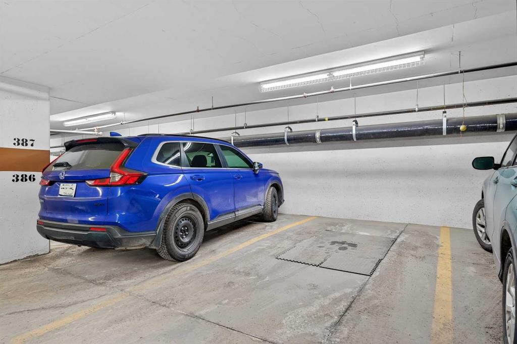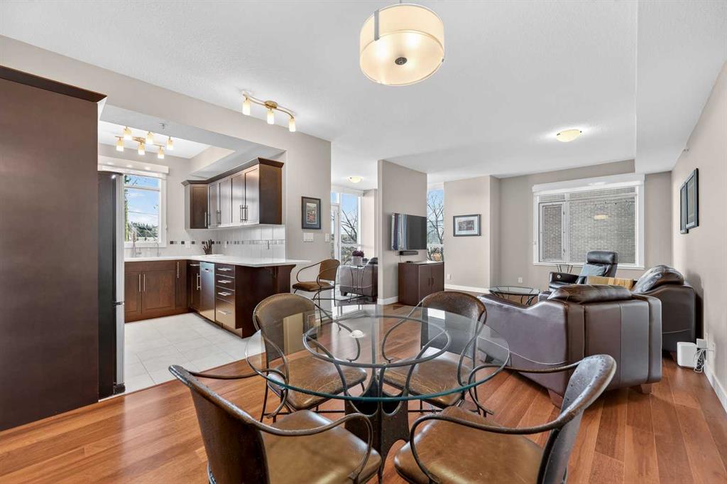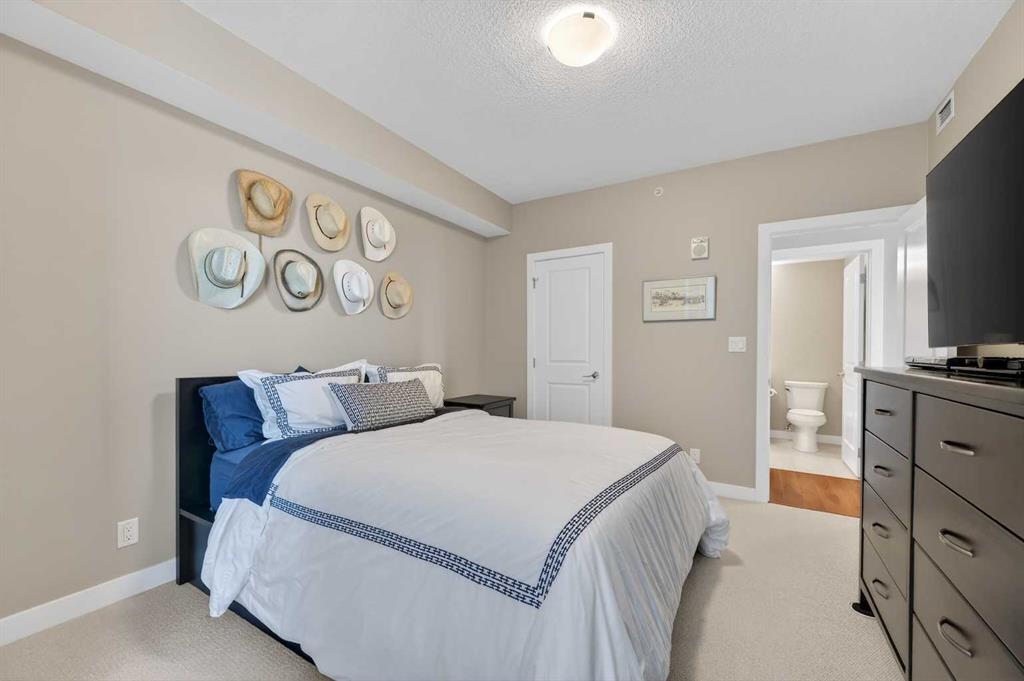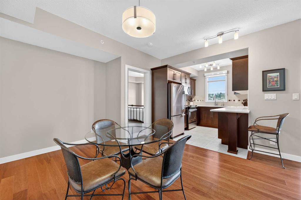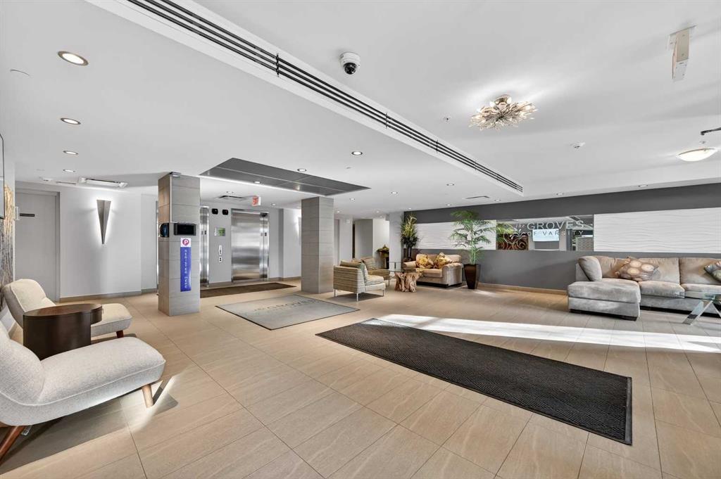 Welcome to The Groves of Varsity, a highly sought-after condominium complex in the heart of Varsity - one of Calgary’s most desirable and established northwest communities. Known for its tree-lined streets, proximity to parks and pathways, excellent schools, shopping, transit access, and close connection to major routes, Varsity offers a lifestyle that balances urban convenience with residential charm. This spacious corner unit offers almost 1,300 sqft of bright, open living space enhanced by 9-foot ceilings and an abundance of large windows that fill the home with natural light throughout the day. The thoughtful layout provides exceptional flow between the kitchen, dining, and living areas - ideal for both everyday living and entertaining. The well-appointed kitchen features stainless steel appliances, including a new microwave/hoodfan combination and new dishwasher, quartz counters, ample cabinetry, and functional workspace. Durable laminate flooring runs through the main living areas, complemented by tile flooring in the entry, kitchen, and bathrooms, and comfortable carpet in both bedrooms. The unit includes two generously sized bedrooms and two full bathrooms, offering flexibility for guests, roommates, or a dedicated home office. In-suite washer and dryer add daily convenience. Additional value features include a separately titled underground parking stall and a separate assigned storage locker, providing secure parking and extra space for seasonal items. Residents of The Groves of Varsity enjoy access to premium building amenities including a fully equipped fitness center, steam room, fully equipped social room, and a rooftop terrace with BBQ area offering impressive views. With nearby shopping, dining, transit, U of C, and green space just steps away, this location supports both an active and connected lifestyle. Whether you are downsizing, investing, or seeking a low-maintenance home in a mature, high-demand community, this bright corner unit offers space, comfort, and long-term value in one of northwest Calgary’s premier condominium developments.
