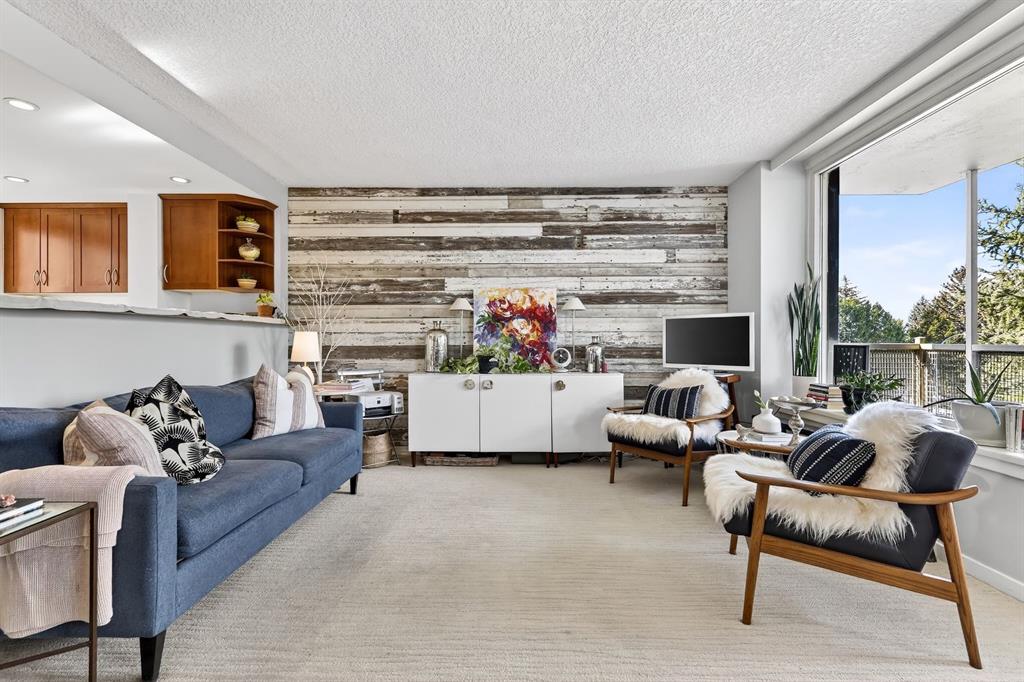 Welcome to Rideau Towers! Introducing this one-bedroom, one-bathroom corner unit perched on the 4th floor, with natural privacy guarded by trees. Thoughtful and unique open layout between the kitchen and living room featuring stainless steel appliances, ample cabinet space, tile flooring and easy flow for everyday living and entertaining. Generously sized bedroom and a well-appointed bathroom complete the comfortable interior. The unique corner unit allows SW light exposure to flow through the kitchen window giving it a brighter feel than most north facing units. An oversized balcony is yours to enjoy as is custom when you reside at Rideau Towers. Includes an outside parking stall and a storage locker. Situated on the Elbow River walking and biking pathway, just a 10-minute stroll down the hill to trendy Mission’s shops and restaurants; 15 minutes to the Stampede Grounds and the new Calgary Event Center. Easy access to Macleod Trail and Elbow Drive. Summer access to the building pool adds a perfect recreational bonus. Have you been dreaming of living on the hill looking over downtown Calgary? Have you been waiting to call this iconic building home? Call your favourite Realtor today to schedule your showing!