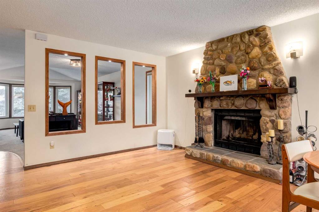 76 Sunmount Rd SE – Beautiful Bungalow in the Private Lake Community of Sundance. Welcome to this warm and inviting home located in the private lake community of Sundance, one of Calgary’s most sought-after family neighbourhoods. Offering year-round lake access, excellent schools, parks, and convenient amenities, this is a wonderful place to call home. Step inside to a large tiled foyer featuring a convenient storage bench, which can easily be converted back to its original planter feature. Just a few steps up, you are welcomed into the bright living and dining room, a perfect space for entertaining family and friends. The living room is highlighted by a cozy wood-burning fireplace, creating a welcoming focal point. The heart of the home is the beautifully designed kitchen and family area. Light hardwood flooring flows throughout this space, complemented by a second wood-burning fireplace located in the kitchen sitting area that creates a warm and inviting atmosphere. The kitchen is a chef’s dream, featuring a butcher block island, quartz countertops, stainless steel appliances with microwave hood fan, and ample cabinetry for storage. Just off the kitchen is the large breakfast nook, surrounded by windows and leading to the private backyard, providing a bright and cheerful place to enjoy your morning coffee or casual meals. The spacious primary retreat offers a peaceful place to unwind, complete with a walk-in closet and private ensuite. Conveniently located nearby is the laundry area, adding everyday convenience. The fully finished basement offers incredible additional living space with two bedrooms, a den that could easily be converted into another bedroom with the addition of a wardrobe, a 4-piece bathroom, and a massive games and recreation room with wet bar, perfect for entertaining or family movie nights. There is also plenty of storage space. Living in Sundance means enjoying year-round lake activities including swimming, skating, fishing, paddleboarding, and community events, making this one of Calgary’s most desirable lake communities. Don’t miss your opportunity to own this fantastic home in Sundance.