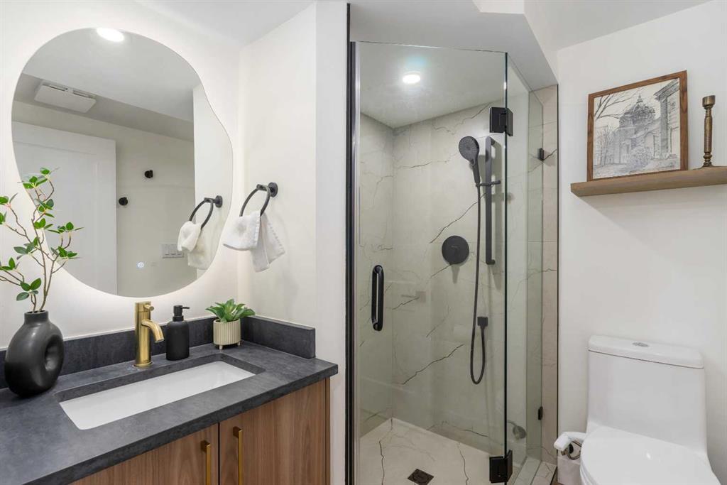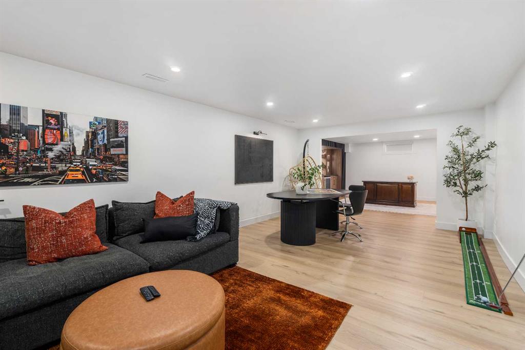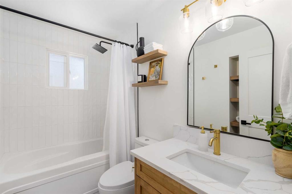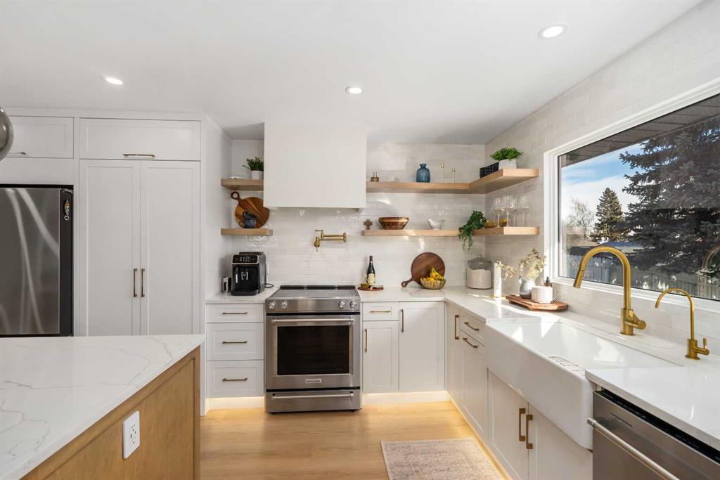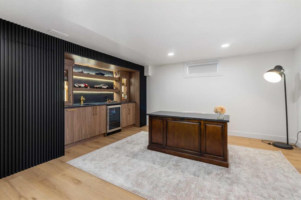 Experience a refreshing new twist on the renovated home—one that honours the original character and thoughtful space planning while introducing a modern design with carefully curated materials and a warm, inviting colour palette. Unlike the typical all-white renovations, this home offers a balanced and sophisticated aesthetic from the moment you step through the front door. The main floor welcomes you with an open and airy layout that seamlessly connects the kitchen, dining area, and living room. At the heart of the home is a beautifully designed kitchen featuring a large centre island—intentionally uninterrupted by sinks or cooktops—allowing the premium quartz surface to shine as both a functional workspace and gathering place. Natural wood grain cabinetry on the island adds warmth and contrast to the elegant off-white upper cabinets. A farmhouse sink provides both style and practicality for handling larger pots and pans, while the window above offers a peaceful view of the spacious backyard. Ample cabinetry ensures plenty of storage, with room to expand if desired. The dining area comfortably accommodates gatherings of eight and flows effortlessly into the living room, where a sleek electric fireplace creates a welcoming focal point. Above the fireplace, a perfectly framed niche offers space for artwork or a mounted television, complemented by wood shelving with integrated lighting. The living room provides a backdrop of large windows that fill the space with natural light. The main level has three bedrooms, including a primary retreat with a convenient 2-piece ensuite and walk-in closet, along with two additional bedrooms located near the stylish 4-piece bathroom. The fully developed basement expands the living space with a large family room and an impressive games and entertainment area complete with a modern wet bar that could rival any downtown lounge. A generous fourth bedroom comfortably fits a king-sized bed with nightstands, and a contemporary 3-piece bathroom completes this level. Outside, the large backyard offers mature trees and a welcoming outdoor space featuring a concrete patio and Rundle rock firepit area—perfect for relaxing evenings or entertaining. Additional features include Central A/C, and an extra-wide double detached garage adds convenience and functionality. Situated in the established community of Canyon Meadows, this home offers excellent access to nearby schools including Canyon Meadows Elementary, St. Catherine Elementary, Robert Warren School, and Dr. E.P. Scarlett High School. Residents enjoy exceptional amenities such as Fish Creek Provincial Park, Canyon Meadows Golf & Country Club, the Canyon Meadows Aquatic & Fitness Centre, Trico Centre for Family Wellness, Southcentre Mall, and Willow Park Village. Commuting is effortless with convenient access to Macleod Trail, Anderson Road, and Stoney Trail, along with a short walk to the Canyon Meadows LRT Station.