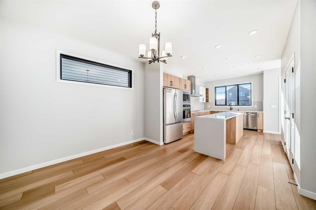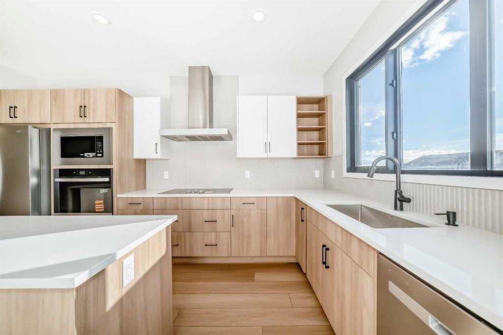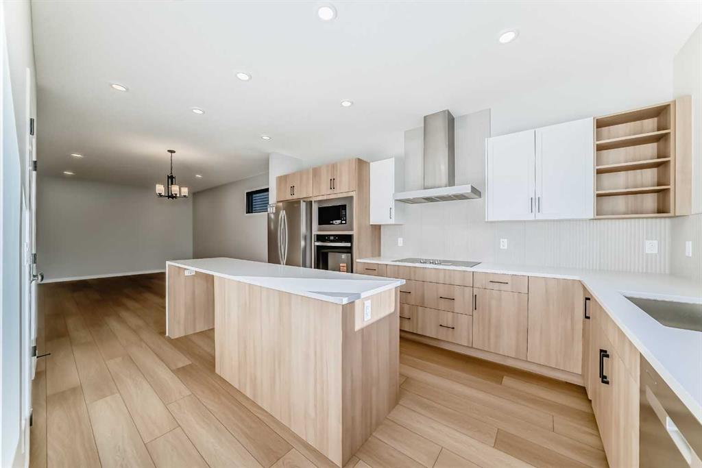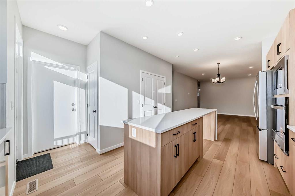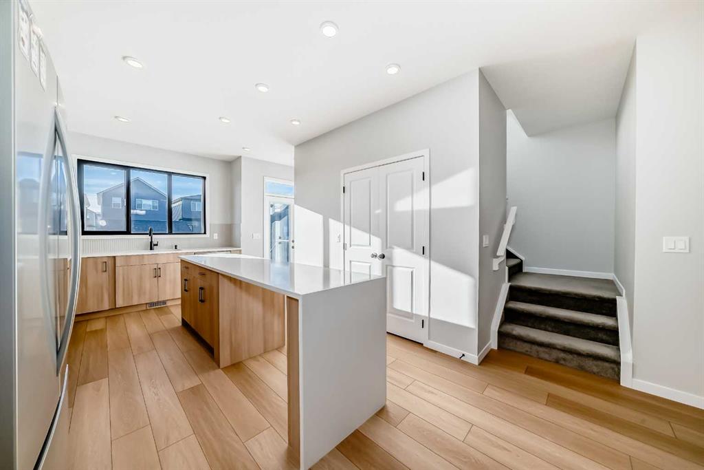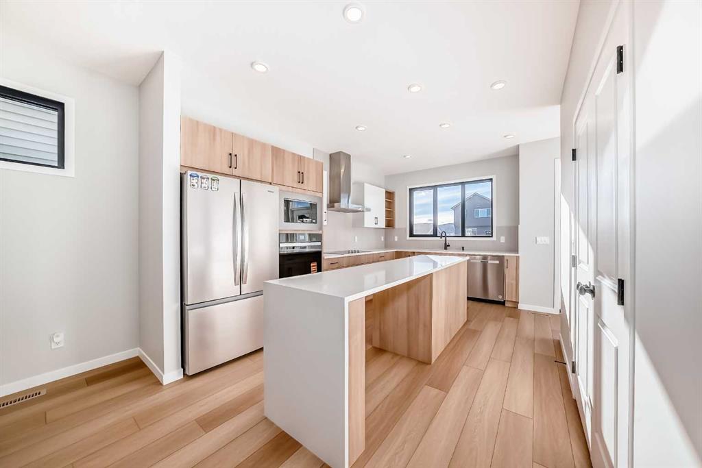Open House March 14-15 from 1-3pm. Welcome to this brand new, upgraded home in the vibrant community of Pine Creek! Known for blending nature, family living, and modern homes, Pine Creek offers scenic pathways, nearby parks, and easy access to city conveniences. This beautifully designed property features extensive upgrades throughout and is perfect for homeowners looking for a mortgage helper opportunity with its thoughtfully designed basement living space. The main floor showcases luxury vinyl plank flooring throughout the entire main and second floor, a spacious layout, and a gorgeous extended kitchen with two-tone cabinetry, waterfall island with additional cabinet storage, upgraded backsplash tiles, built-in appliances, and a modern upgraded hood fan. A larger walk-in pantry adds both convenience and storage. The home also features upgraded black window frames, adding a striking modern exterior and interior aesthetic. A versatile additional room on the main floor is complemented by a full bathroom with an upgraded standing shower and full wall tile finish, perfect for guests or multi-generational living. Upstairs, you’ll find spacious bedrooms and an upgraded ensuite featuring a beautifully finished standing shower with full wall tiles. The extended basement bedroom enhances the lower level’s functionality, making it ideal for extended family or rental potential. Both the main floor and basement kitchens feature stylish two-tone cabinetry, creating a cohesive and upscale look throughout. Additional highlights include: Upgraded washer and dryer sets for both main floor and basement, Upgraded stair carpet, Pressure-treated backyard deck with sleek black railings, Upgraded exterior stone detailing, Doorbell camera system for both the main entrance and basement entrance. This move in ready home combines style, functionality, and income potential in one of Calgary’s growing communities.