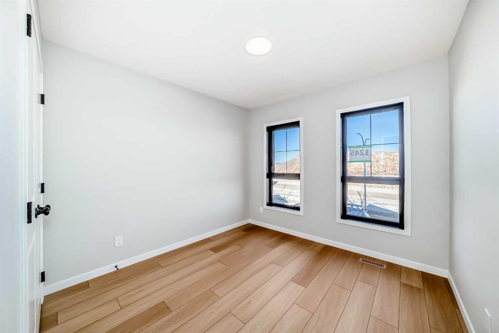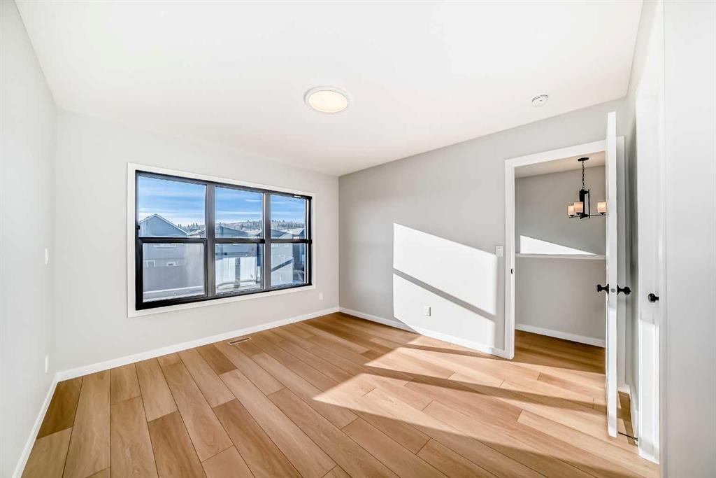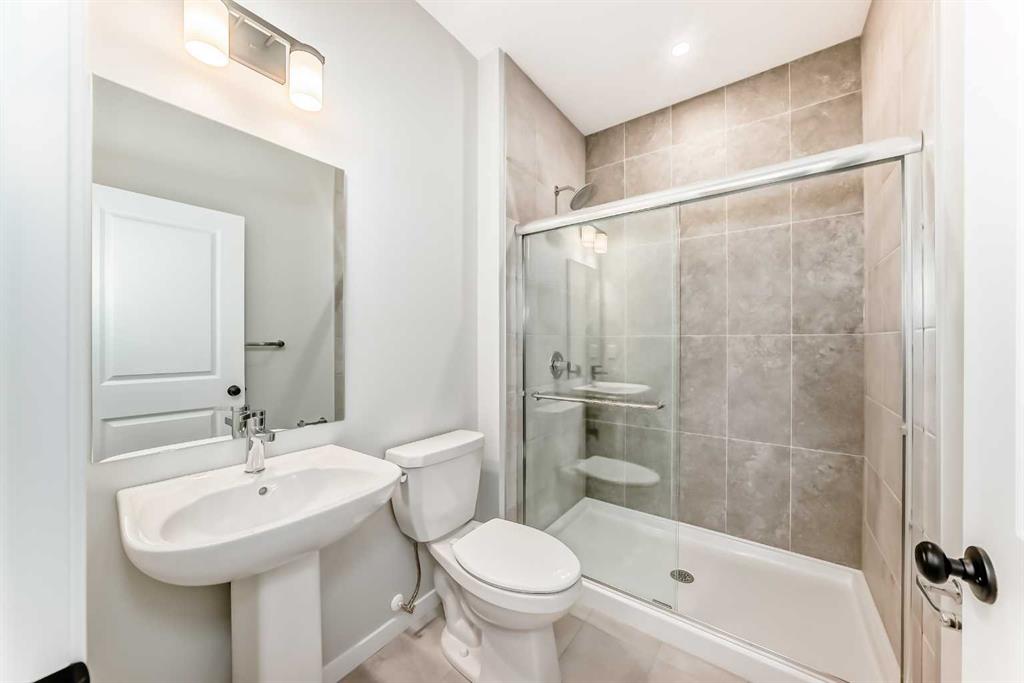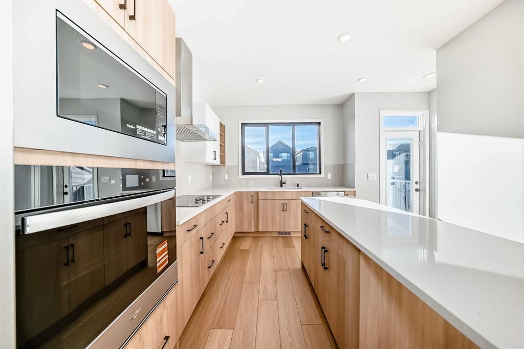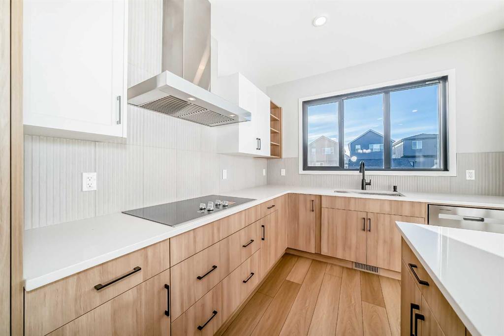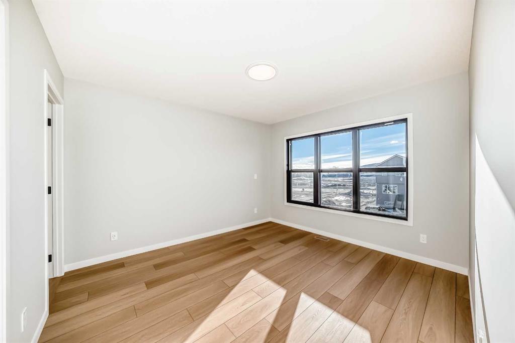 Open House March 14-15 from 1-3pm. Welcome to this brand new, upgraded home in the vibrant community of Pine Creek! Known for blending nature, family living, and modern homes, Pine Creek offers scenic pathways, nearby parks, and easy access to city conveniences. This beautifully designed property features extensive upgrades throughout and is perfect for homeowners looking for a mortgage helper opportunity with its thoughtfully designed basement living space. The main floor showcases luxury vinyl plank flooring throughout the entire main and second floor, a spacious layout, and a gorgeous extended kitchen with two-tone cabinetry, waterfall island with additional cabinet storage, upgraded backsplash tiles, built-in appliances, and a modern upgraded hood fan. A larger walk-in pantry adds both convenience and storage. The home also features upgraded black window frames, adding a striking modern exterior and interior aesthetic. A versatile additional room on the main floor is complemented by a full bathroom with an upgraded standing shower and full wall tile finish, perfect for guests or multi-generational living. Upstairs, you’ll find spacious bedrooms and an upgraded ensuite featuring a beautifully finished standing shower with full wall tiles. The extended basement bedroom enhances the lower level’s functionality, making it ideal for extended family or rental potential. Both the main floor and basement kitchens feature stylish two-tone cabinetry, creating a cohesive and upscale look throughout. Additional highlights include: Upgraded washer and dryer sets for both main floor and basement, Upgraded stair carpet, Pressure-treated backyard deck with sleek black railings, Upgraded exterior stone detailing, Doorbell camera system for both the main entrance and basement entrance. This move in ready home combines style, functionality, and income potential in one of Calgary’s growing communities.