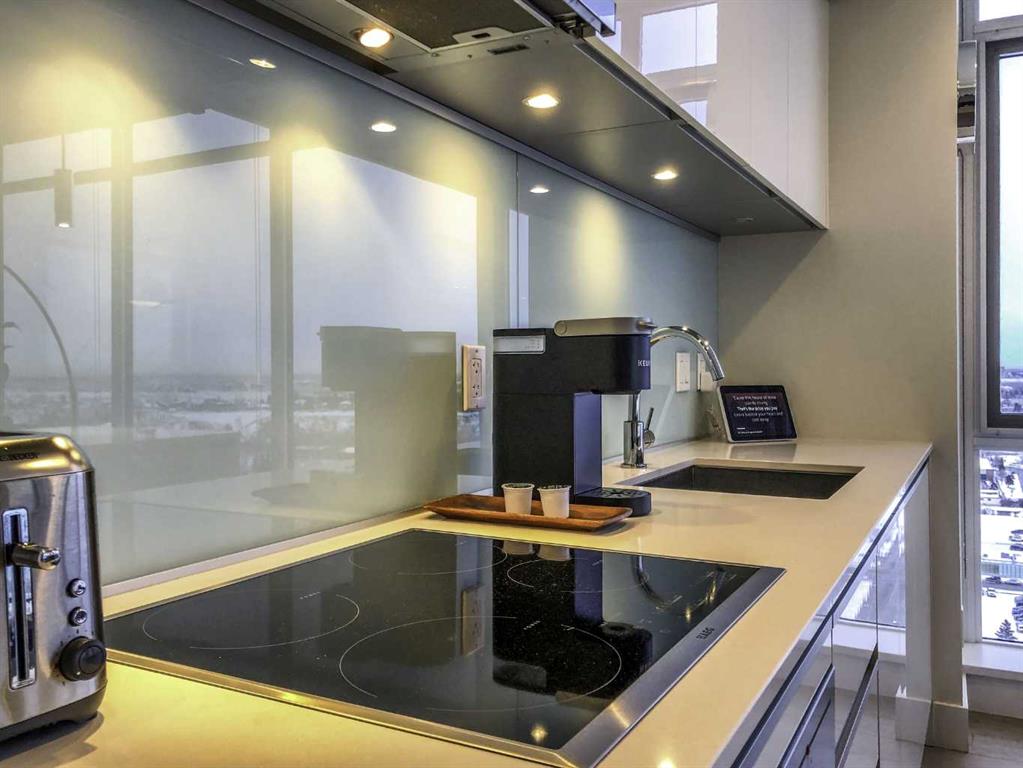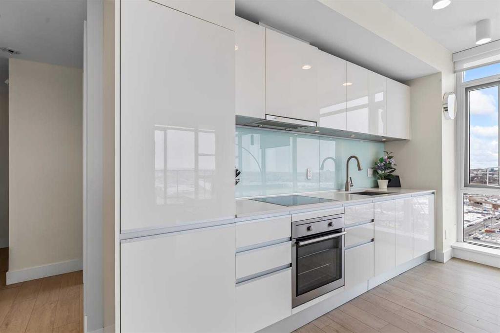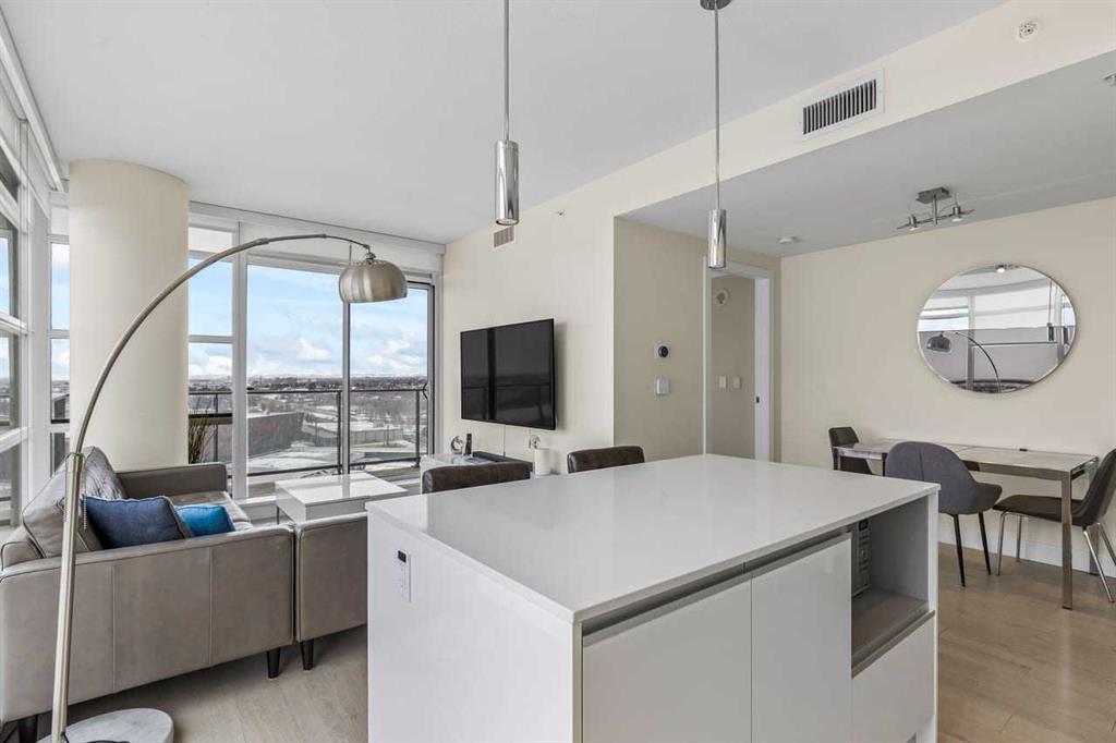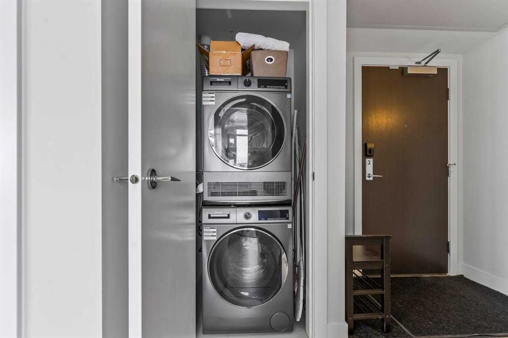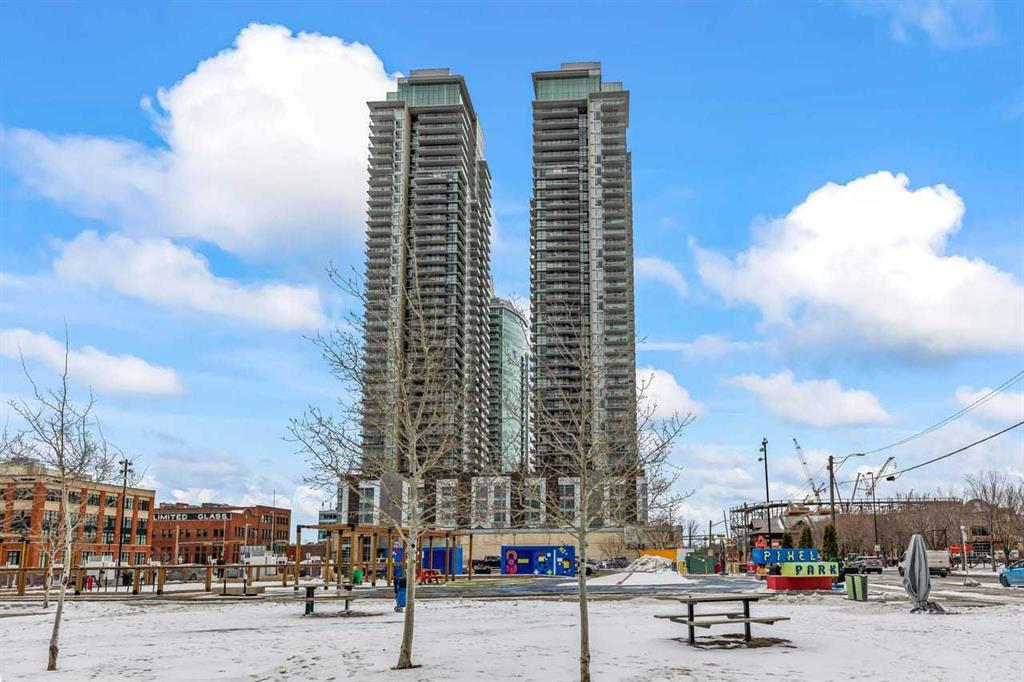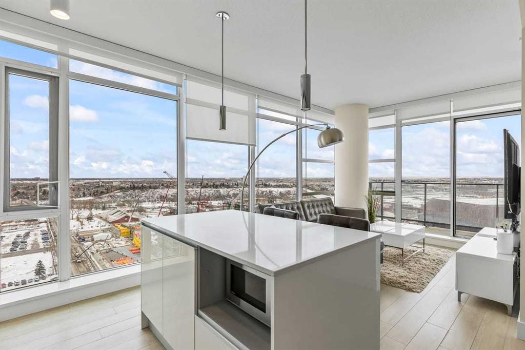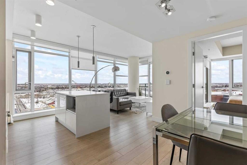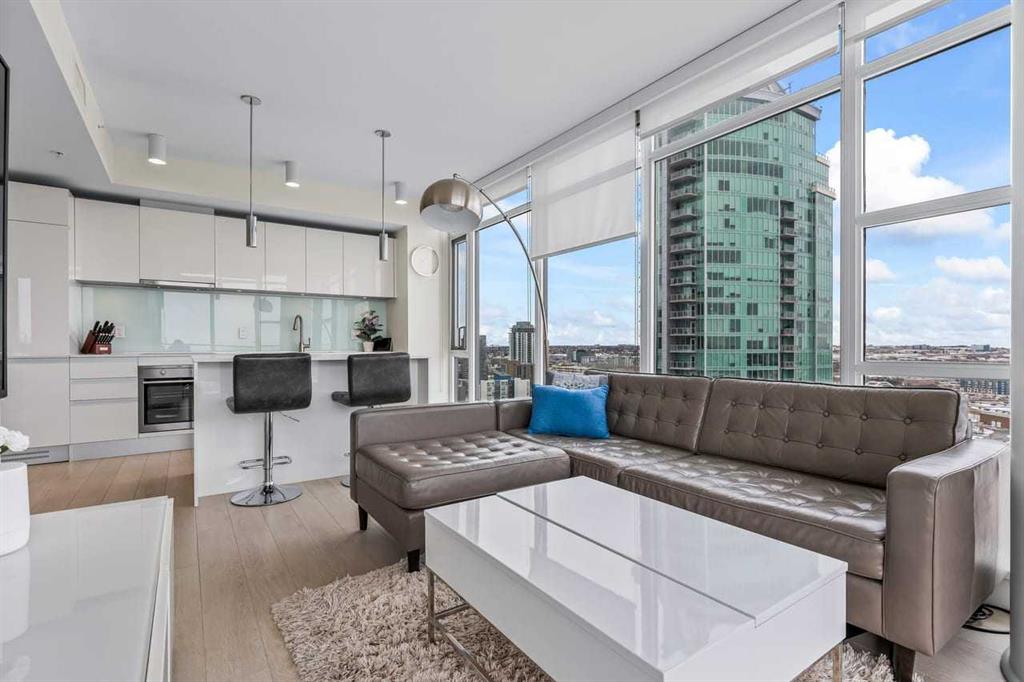 Experience LIMITLESS SKY-HIGH VIEWS in this SUN-DRENCHED CORNER 2 BEDROOM, 2 BATHROOM residence perched on the 21st floor of The GUARDIAN SOUTH. This sophisticated home is defined by its PRIME ELEVATION and a private balcony that offers a front-row seat to the city below. The well-proportioned open-concept living area showcases two full walls of floor-to-ceiling windows, framing breathtaking sunsets over the Rocky Mountains, the glittering Calgary skyline, and incredible views of the Stampede fireworks. The modern interior features a sleek kitchen with high-end integrated appliances and premium finishes, complemented by the convenience of a newer washer and dryer. Both bedrooms are generously sized and supported by two full bathrooms, titled underground parking, and a dedicated storage unit. Residents benefit from an exceptional suite of building amenities, including a state-of-the-art fitness centre, a creative workshop, a social lounge with a garden terrace, and 24-hour concierge services. Ideally situated in the heart of Calgary’s vibrant Beltline, this property is steps away from Downtown, the Stampede grounds, the Central Library, and the scenic Riverwalk. Every urban convenience is at your doorstep, with a popular brunch and coffee spot located in the building, a brand-new dog park and Tesla Supercharger across the street, and a supermarket just one block away. With its premium upgrades and prime location in one of the city’s fastest-growing communities, this home represents an exceptional lifestyle and investment opportunity.