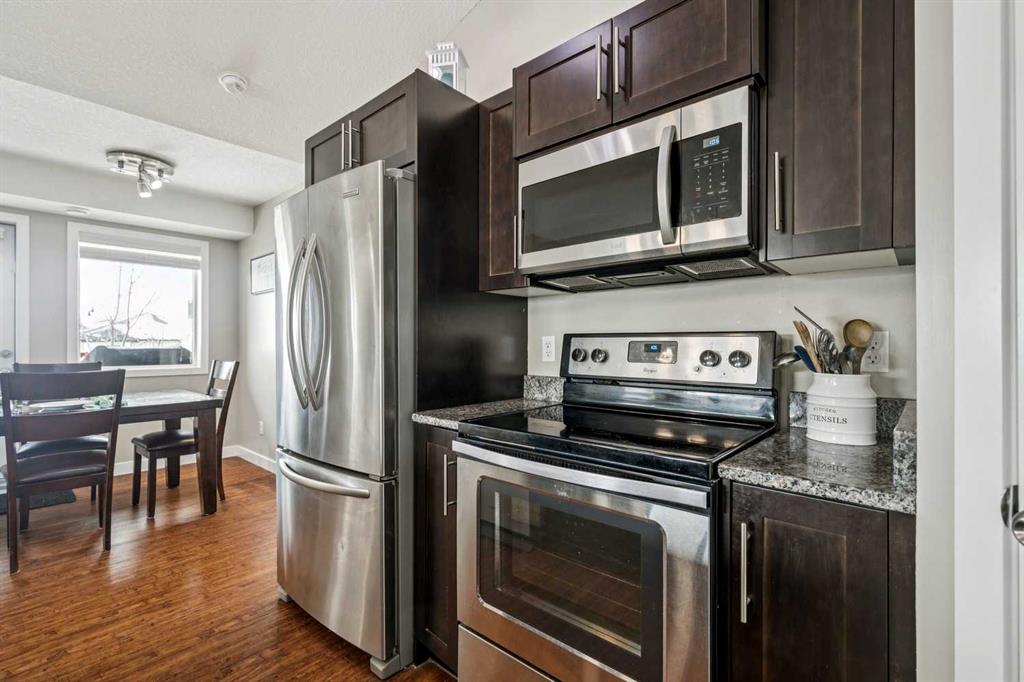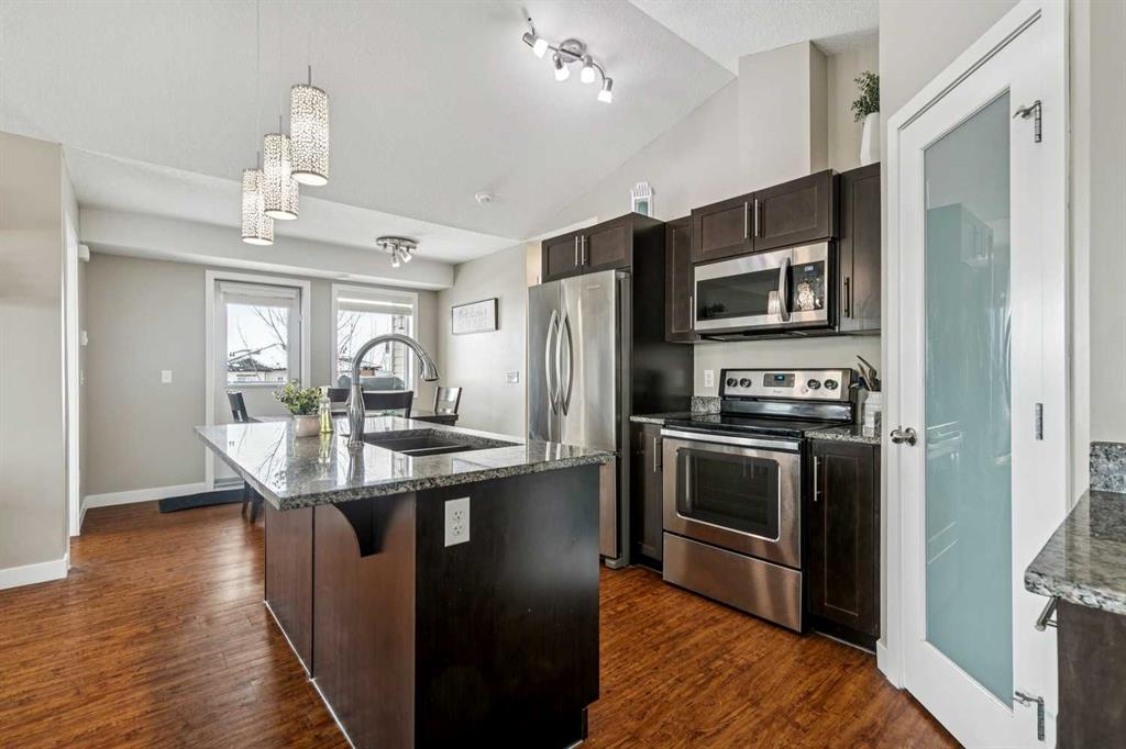 Welcome to this bright and well-maintained bungalow-style 2 BR and 2 bath townhouse located in the sought-after community of Prairie Springs, just steps from the incredible amenities of Chinook Winds Regional Park. This unit is in one of the best locations in the complex and offers an open-concept layout and vaulted ceilings, the home features spacious living and dining areas that flow seamlessly into the kitchen complete with granite countertops newer stainless steel appliances, a large pantry, and plenty of cabinet space—perfect for both everyday living and entertaining. The thoughtfully designed floorplan with over 1000 square feet includes two well-sized bedrooms, including a comfortable primary retreat with a generous walk-in closet and ensuite, along with convenient in-suite laundry and additional storage. Large windows fill the home with natural light while the private balcony provides the perfect spot to enjoy your morning coffee or unwind in the evening. Both the building and interior have been freshly painted. Enjoy the convenience of THREE dedicated parking spots and low-maintenance living in a professionally managed complex. Located within walking distance to parks, pathways, playgrounds, schools, nearby shopping and dining, with quick access to major routes for an easy commute. This is an excellent opportunity to own an affordable, move-in-ready home in one of Airdrie’s most amenity-rich locations.