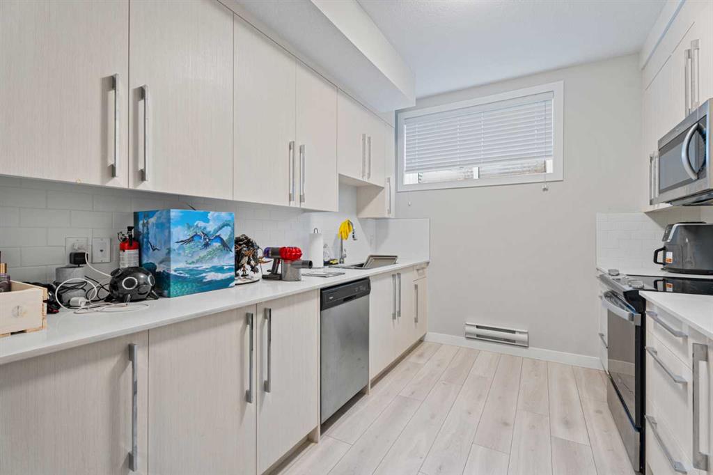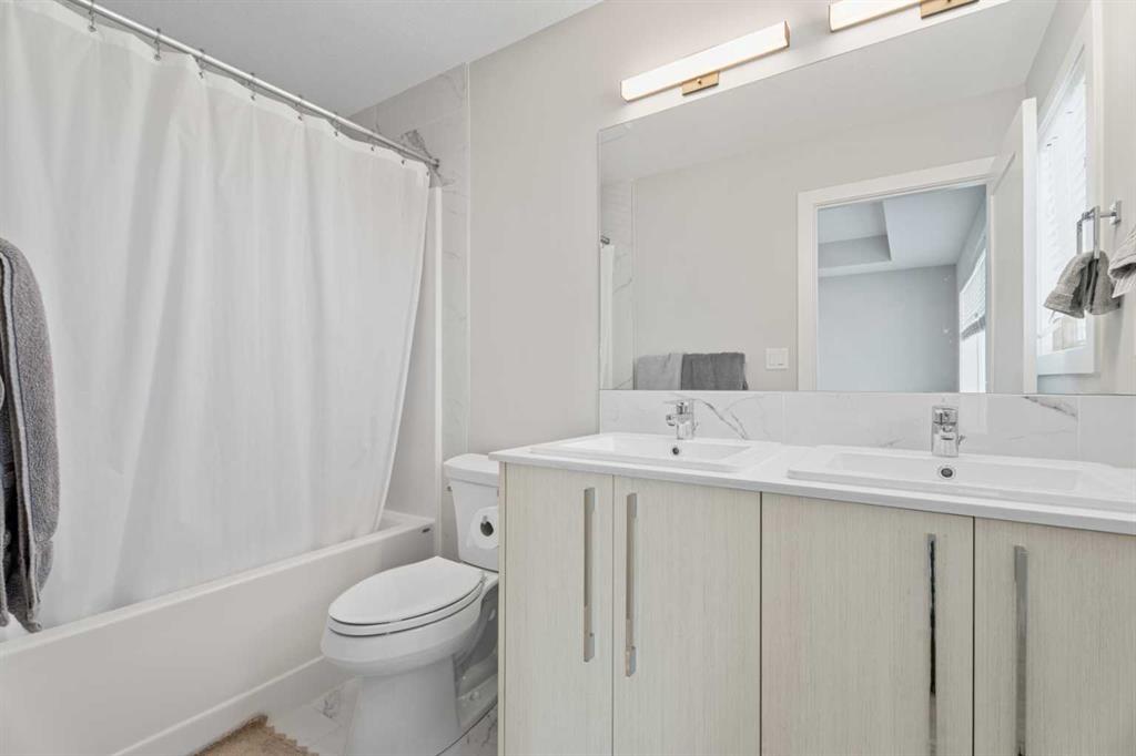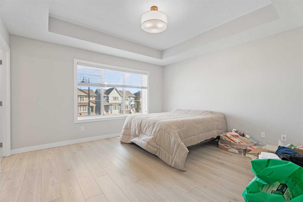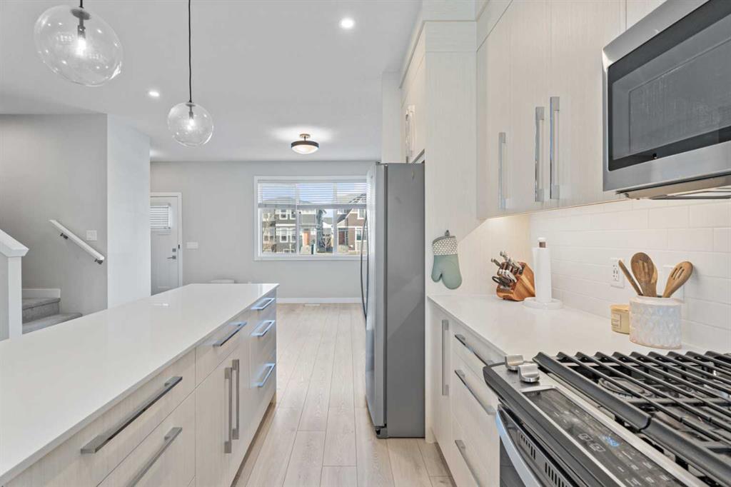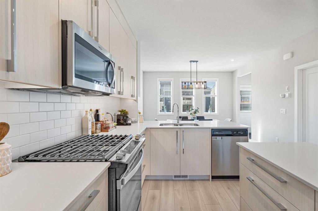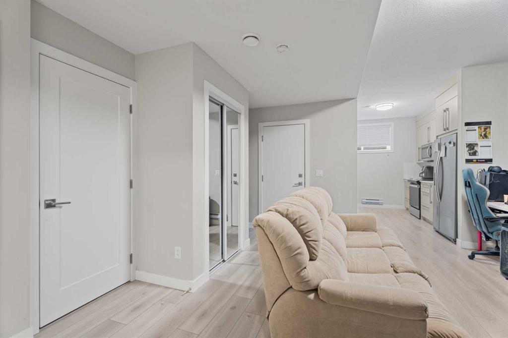 Spacious, bright, and beautifully finished—this half duplex with a legal basement suite in Creekstone is a fantastic turnkey investment opportunity. Fully leased and ready for its next investor. The main floor offers an open and functional layout with 9’ ceilings. The kitchen features full-height cabinetry, soft-close doors and drawers, quartz countertops, and a stainless steel appliance package including a gas stove. Durable Luxury Vinyl Plank flooring runs throughout the main level. Upstairs, the primary bedroom features a tray ceiling, walk-in closet, and a spacious 5-piece ensuite. A central bonus room with tray ceiling separates the primary suite from the two additional bedrooms, creating privacy and flexible living space. The upper level also includes convenient laundry with washer and dryer and a 4-piece bathroom. The fully legal 1-bedroom basement suite includes a separate side entrance, high ceilings, kitchen with stainless steel appliances, comfortable living area, and in-suite laundry. Located in the growing community of Creekstone, residents enjoy easy access to parks, walking paths, and natural green spaces, perfect for outdoor living. Shopping, amenities, and daily conveniences are just minutes away, while the location also offers a quick escape to the mountains for weekend adventures. The property is complete with a detached double garage in a paved alley, plenty of street parking and transit access.