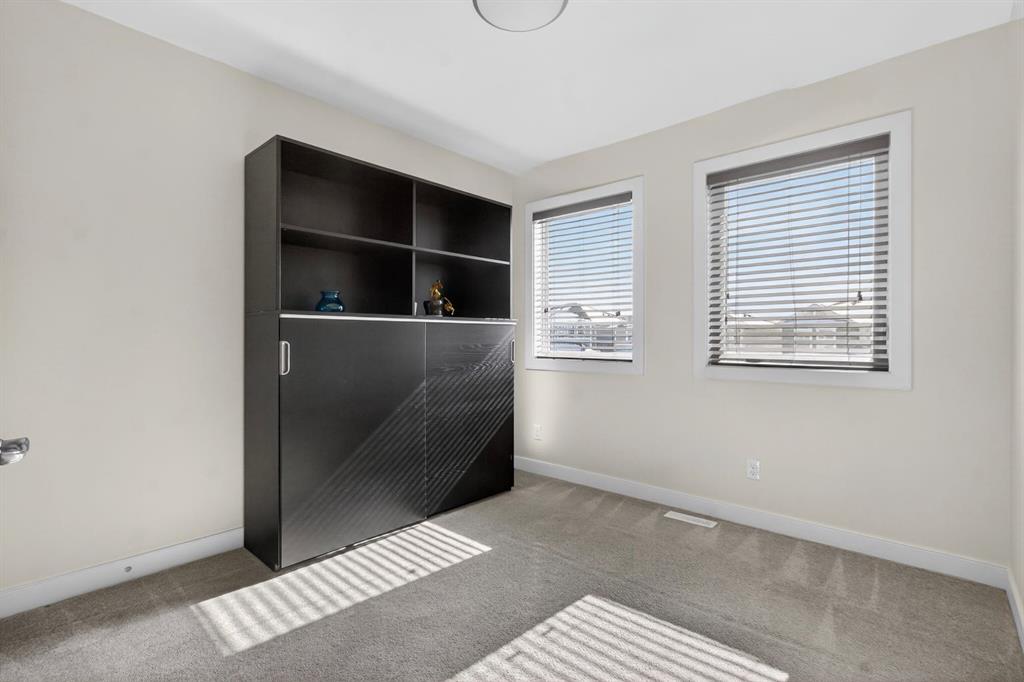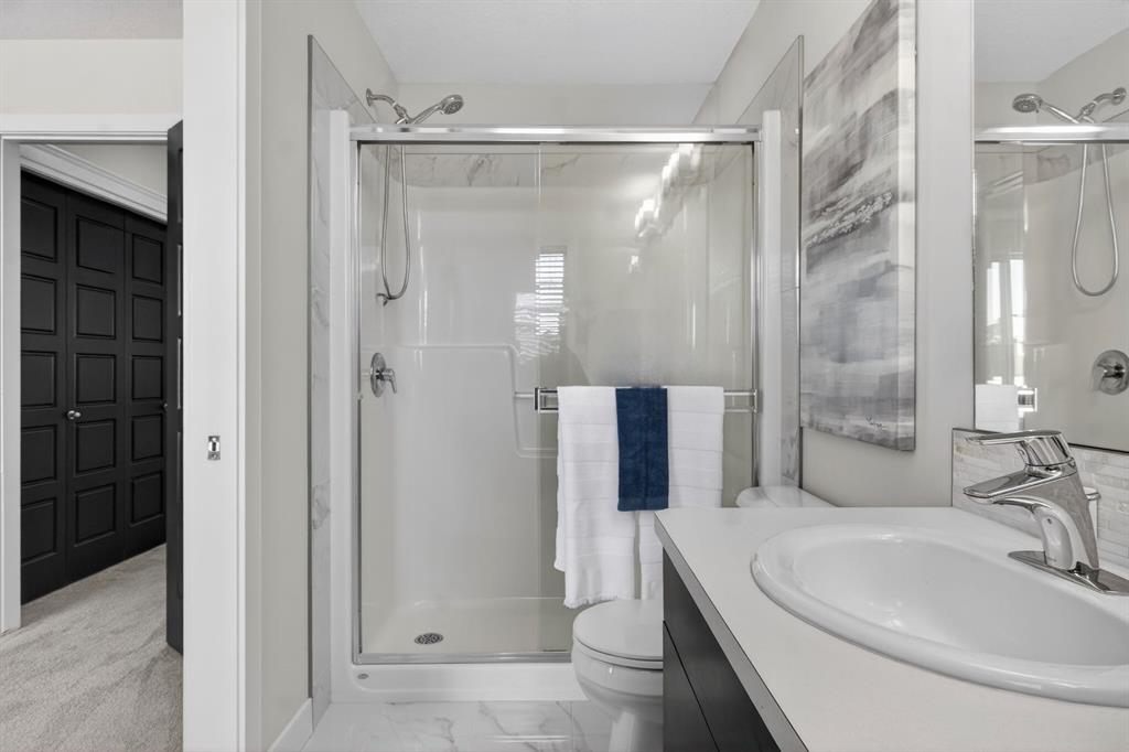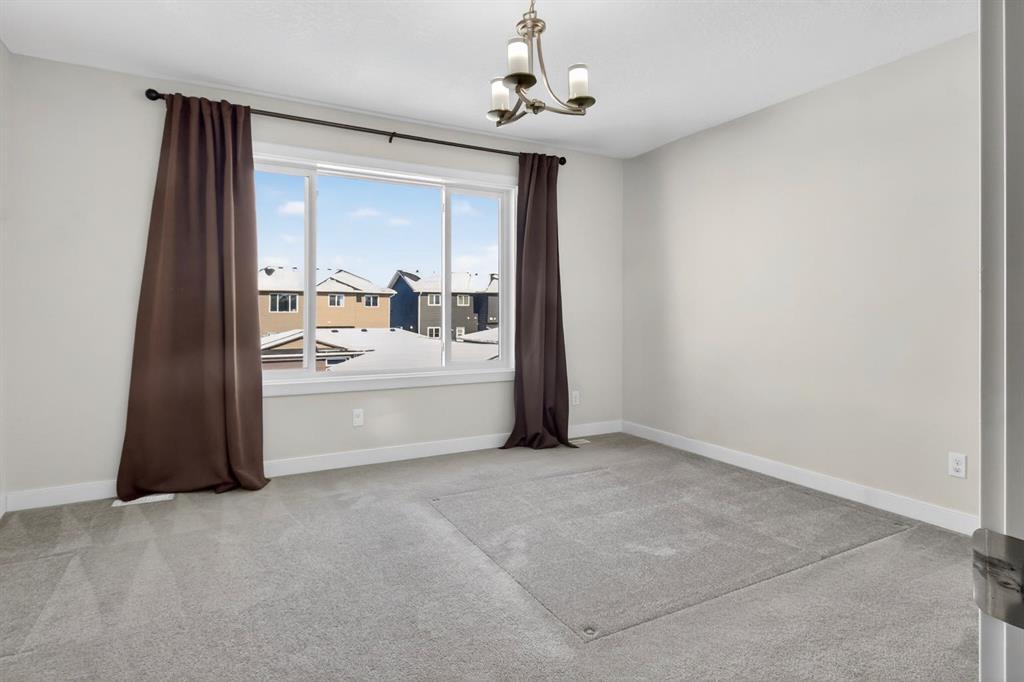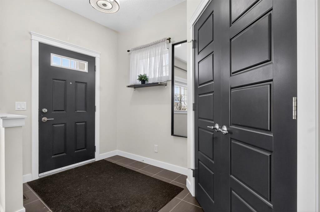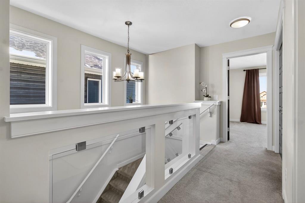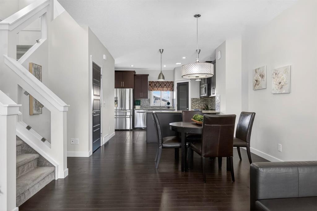 Welcome to this beautifully maintained duplex in the vibrant community of Redstone, the perfect place to call home. From the moment you step inside, you are greeted by a welcoming entryway that opens into a bright and airy open-concept main floor, where the living room, dining area, and kitchen come together seamlessly. Hardwood floors and large windows fill the space with natural light, creating a warm and inviting atmosphere ideal for both everyday living and entertaining. The heart of the home is the stylish kitchen, featuring a breakfast bar island, granite countertops, stainless steel appliances, and plenty of cabinetry for all your storage needs. Just off the kitchen is a convenient 2-piece bathroom, additional storage space, and access to the backyard. Step outside to your private back deck, the perfect spot to enjoy afternoon sunshine, summer barbecues, or a quiet morning coffee. The backyard also leads to a double detached garage, offering both convenience and extra storage. The home also features central air conditioning, keeping you cool and comfortable during warm Calgary summers. Upstairs, you’ll find a spacious primary retreat complete with a walk-in closet and a luxurious 4-piece ensuite featuring double vanities. Two additional well-sized bedrooms and another 4-piece bathroom provide plenty of space for family, guests, or a home office. The undeveloped basement is a blank canvas, ready for your personal vision, whether that’s a rec room, gym, or additional living space. The laundry area is also conveniently located in the basement. This home also offers peace of mind with several recent updates, including a new roof, new siding, some new windows, a new back door, and new downspouts and eavestroughs. Located just steps from a large park and open green space, this home is perfect for families, dog owners, or anyone who loves the outdoors. With nearby parks, pathways, shopping, and quick access to major routes, Redstone offers the perfect blend of community, convenience, and lifestyle.